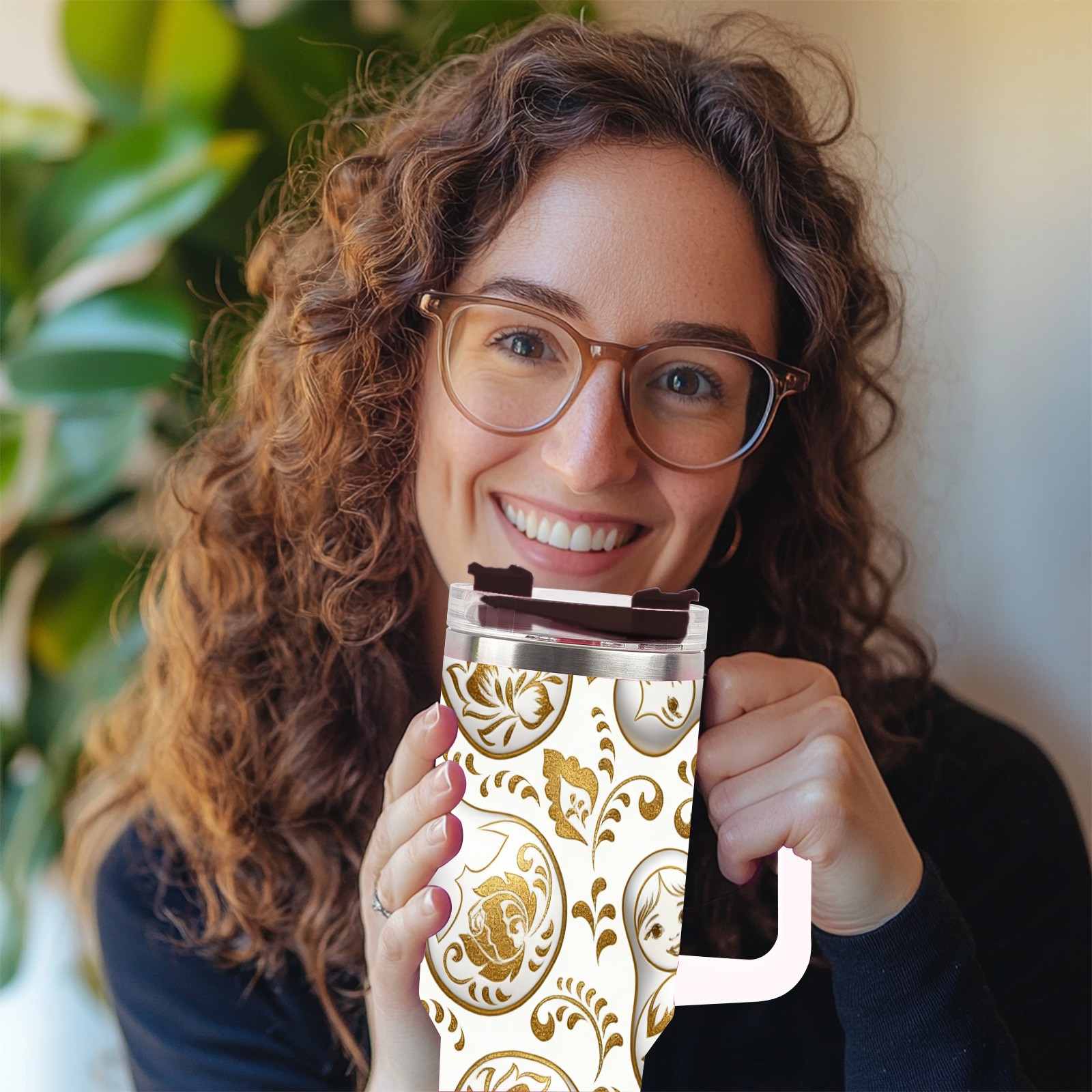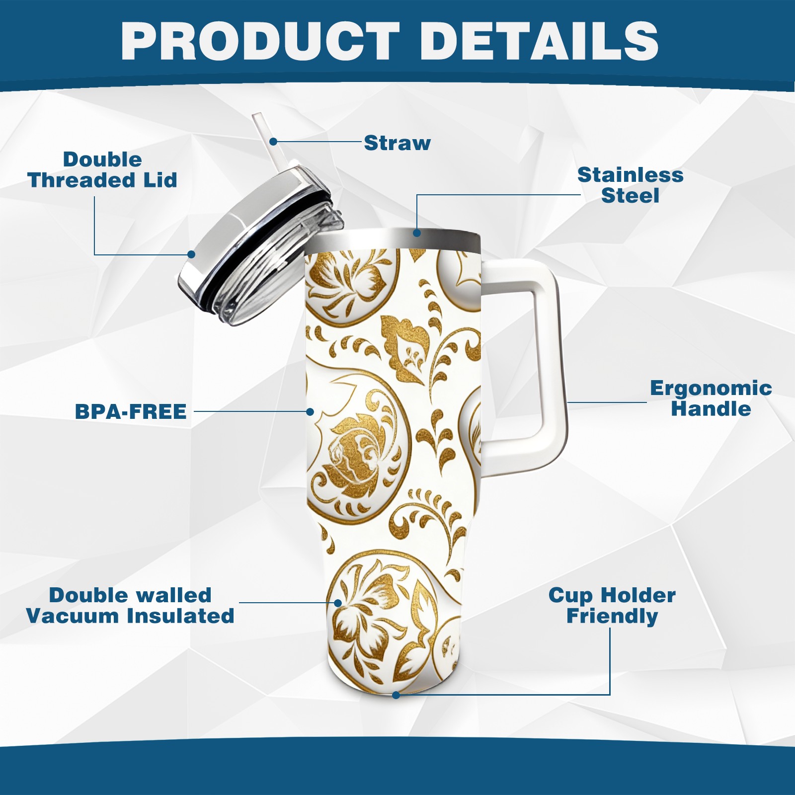 40 унций полностью напечатанный автомобильный стакан Luxe Patterns Silver