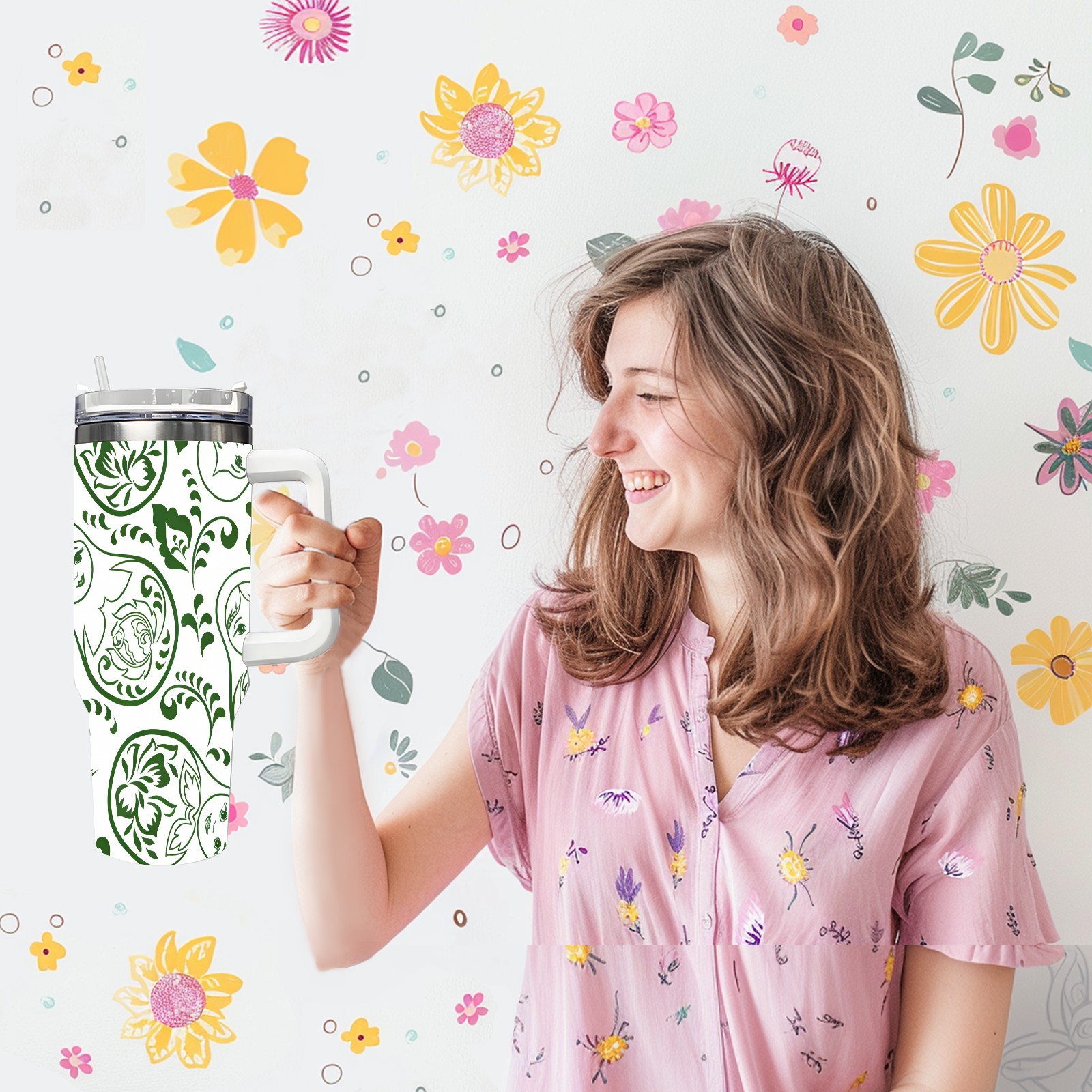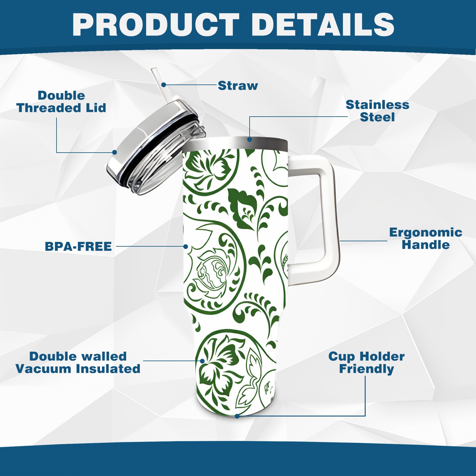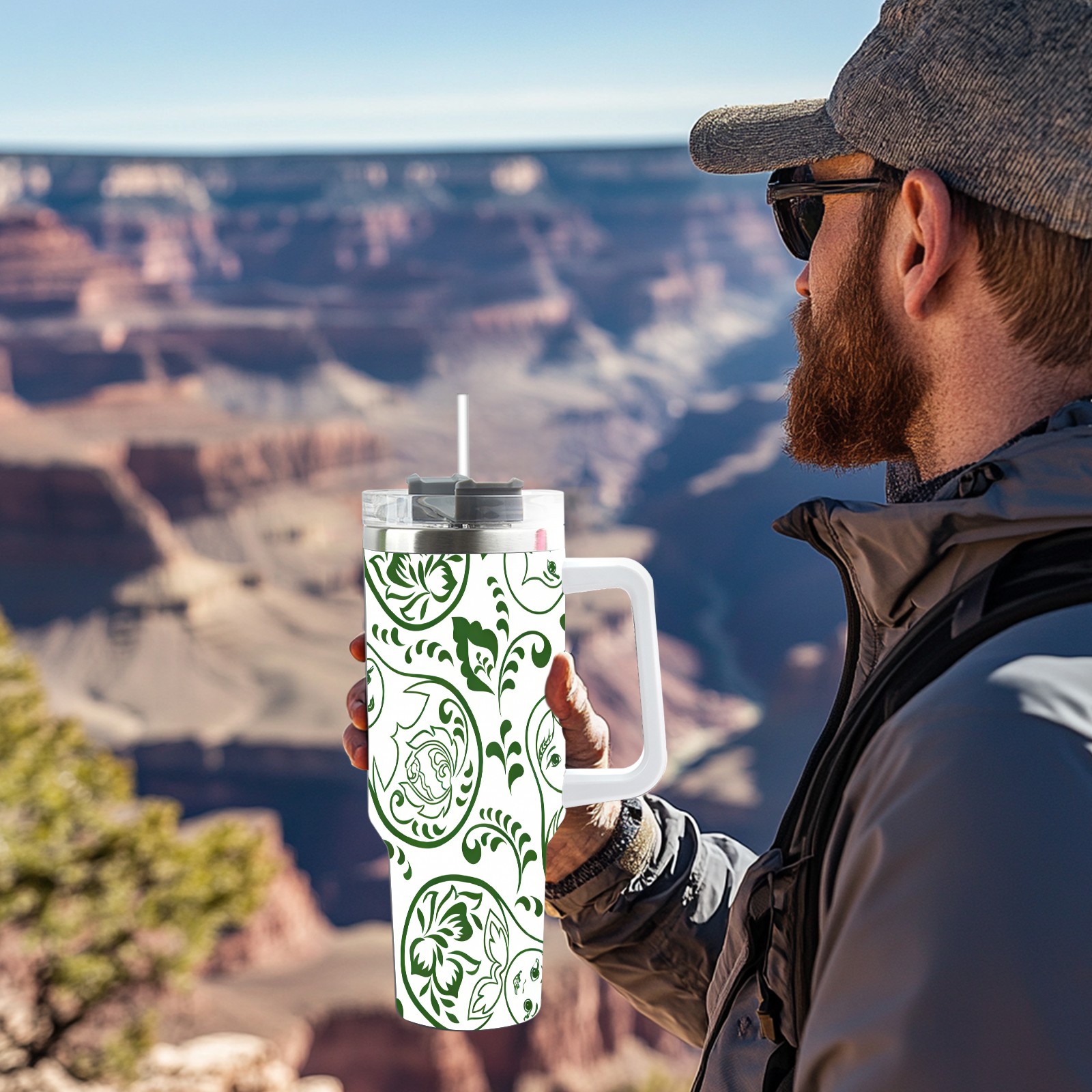40 унций полностью напечатанный автомобильный стакан Fresh Patterns Green