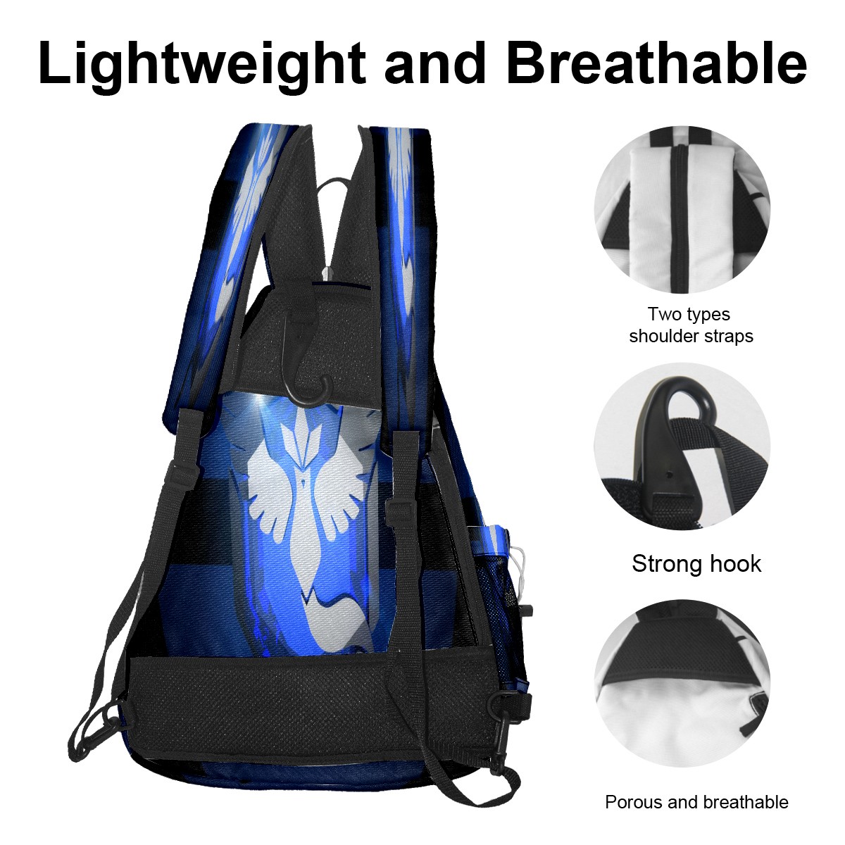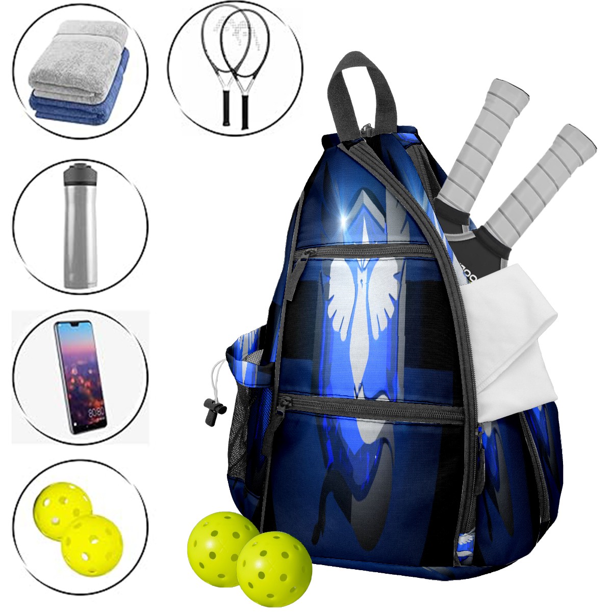 Multifunctional Pickleball Bag,Large Capacity Sports Pickleball Racket Bag, Water Bottle Holder and Fence Hook,Suitable for Both Men Women -横图B (404)