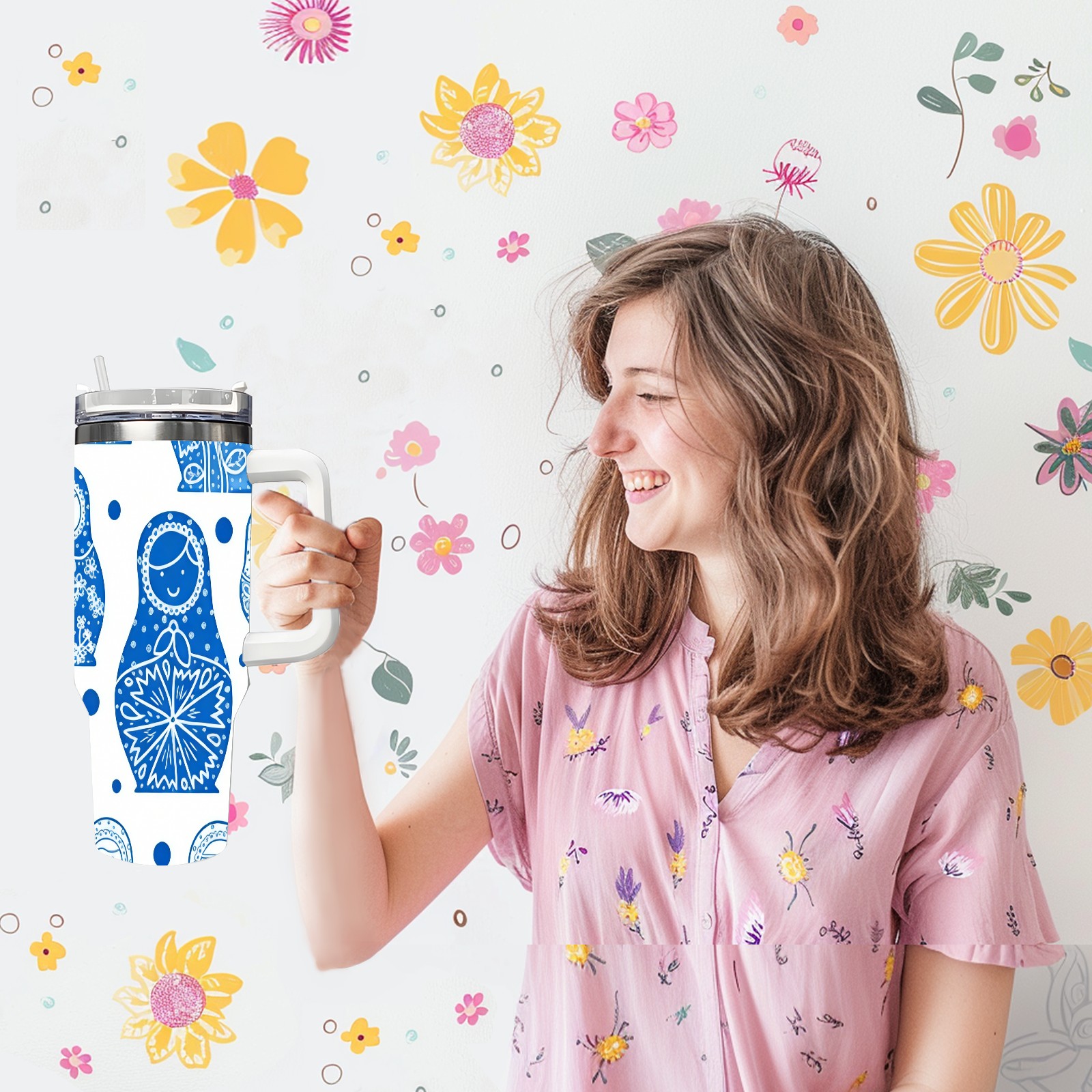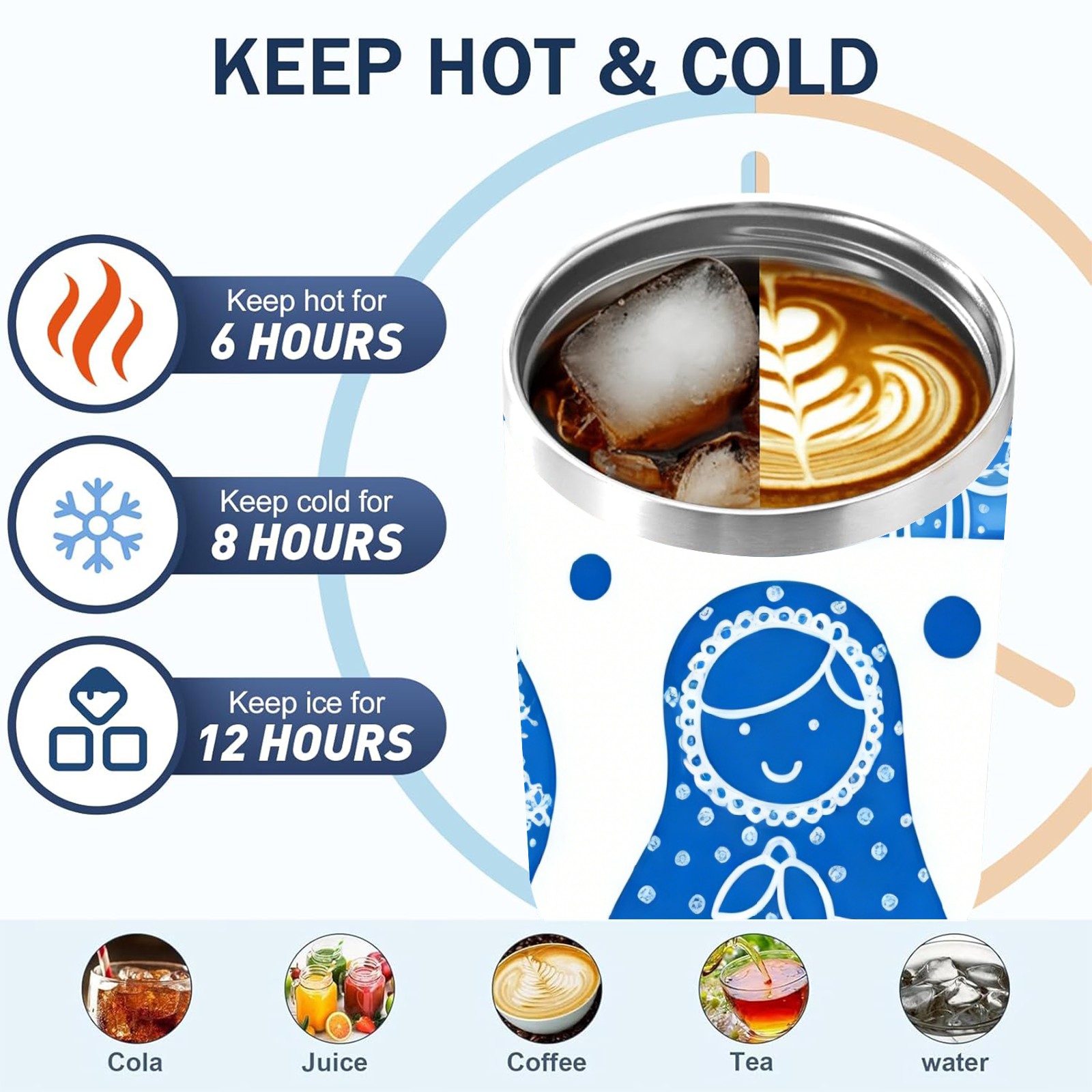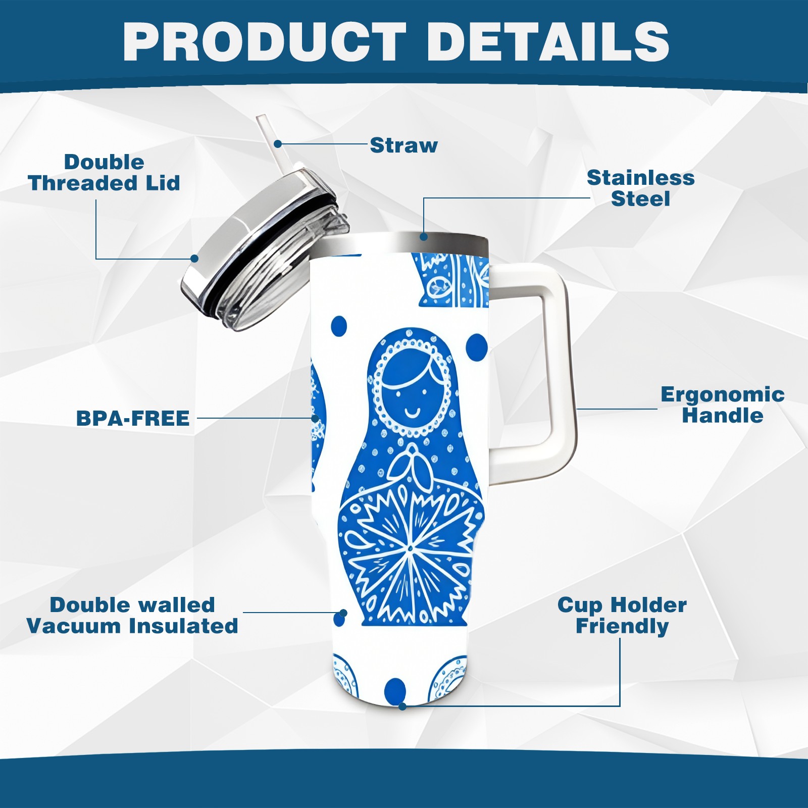 40 унций полностью напечатанный автомобильный стакан Charming Dolls Blue