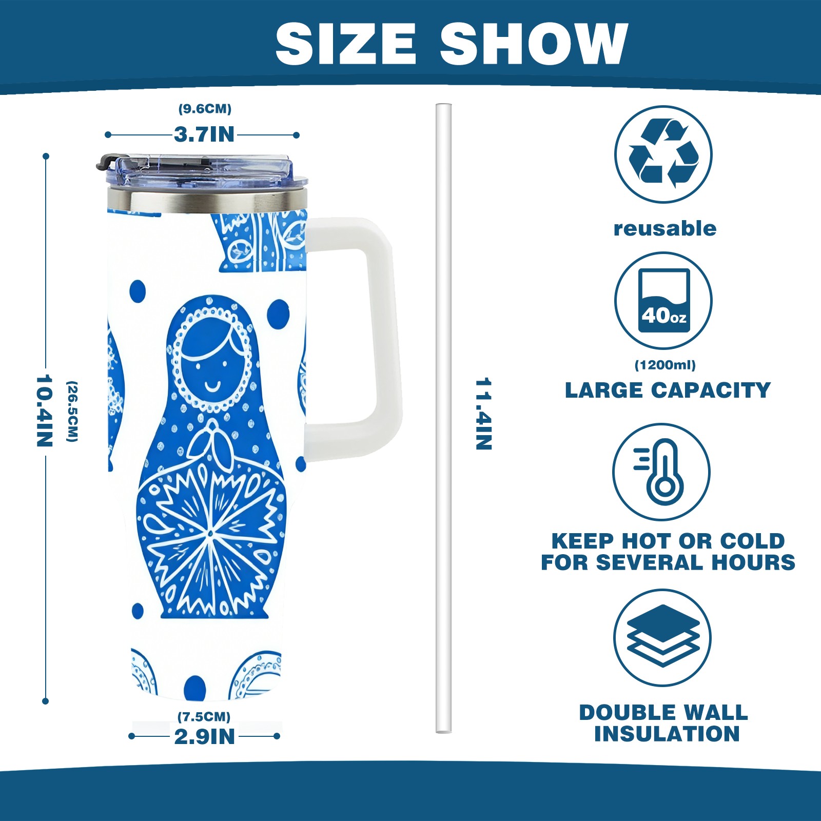 • С большой емкостью 40 унций, он обеспечивает вас гидратацией в течение всего дня, идеально подходит для воды, кофе, сока или других напитков. Эргономичный дизайн идеально вписывается в автомобильные держатели для бутылок, а прочный, герметичный колпачок предотвращает утечки во время передвижения. Путешествие. Антискользящее основание обеспечивает устойчивость, а гладкие поверхности делают уборку легкой — просто мойте вручную или кладите в посудомоечную машину (рекомендуется верхний поддон).
