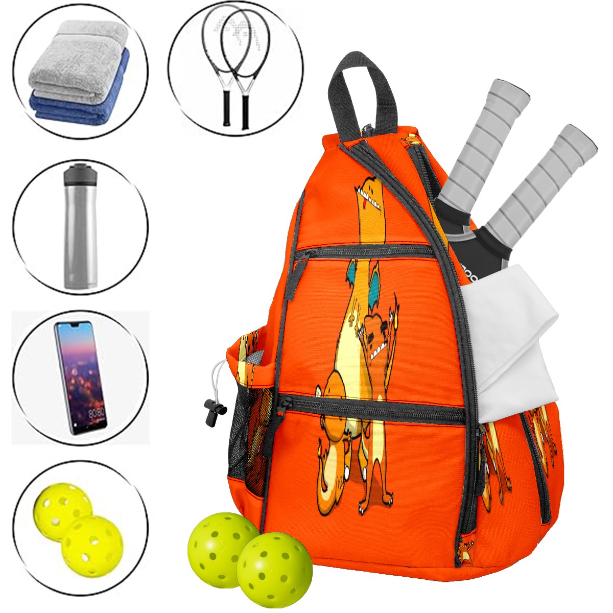 Multifunctional Pickleball Bag,Large Capacity Sports Pickleball Racket Bag, Water Bottle Holder and Fence Hook,Suitable for Both Men Women -横图B (390)