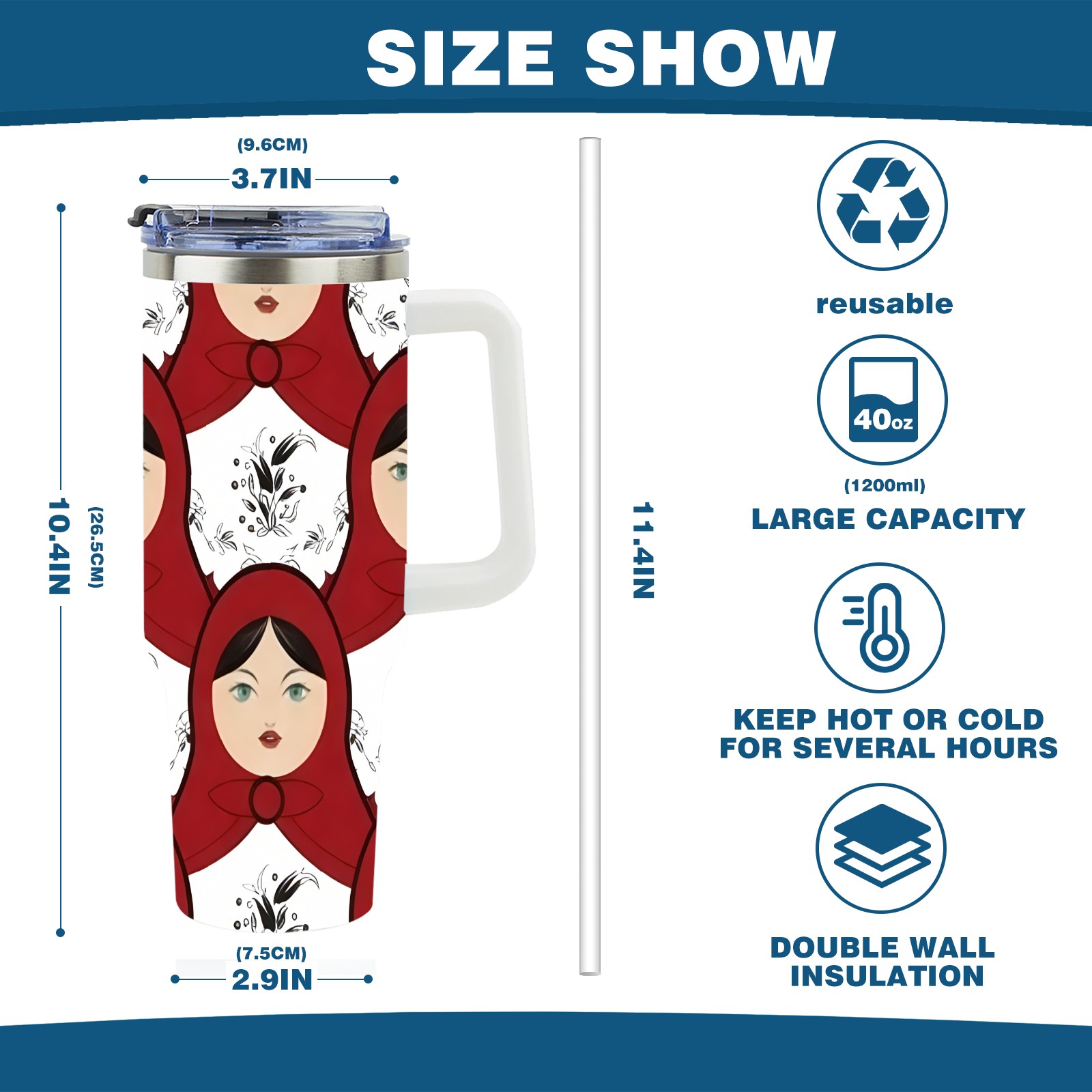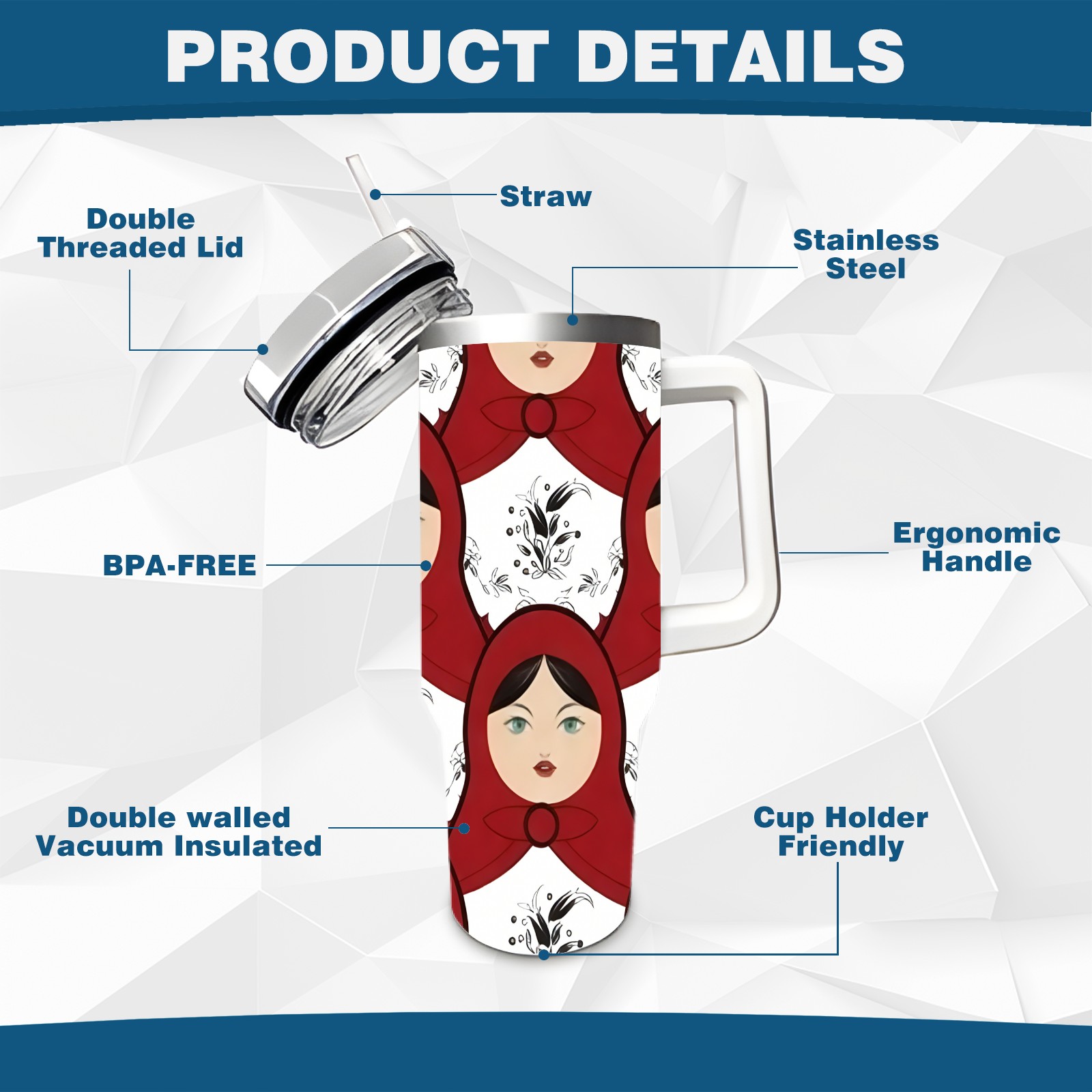 40 унций полностью напечатанный автомобильный стакан Bold Dolls Red