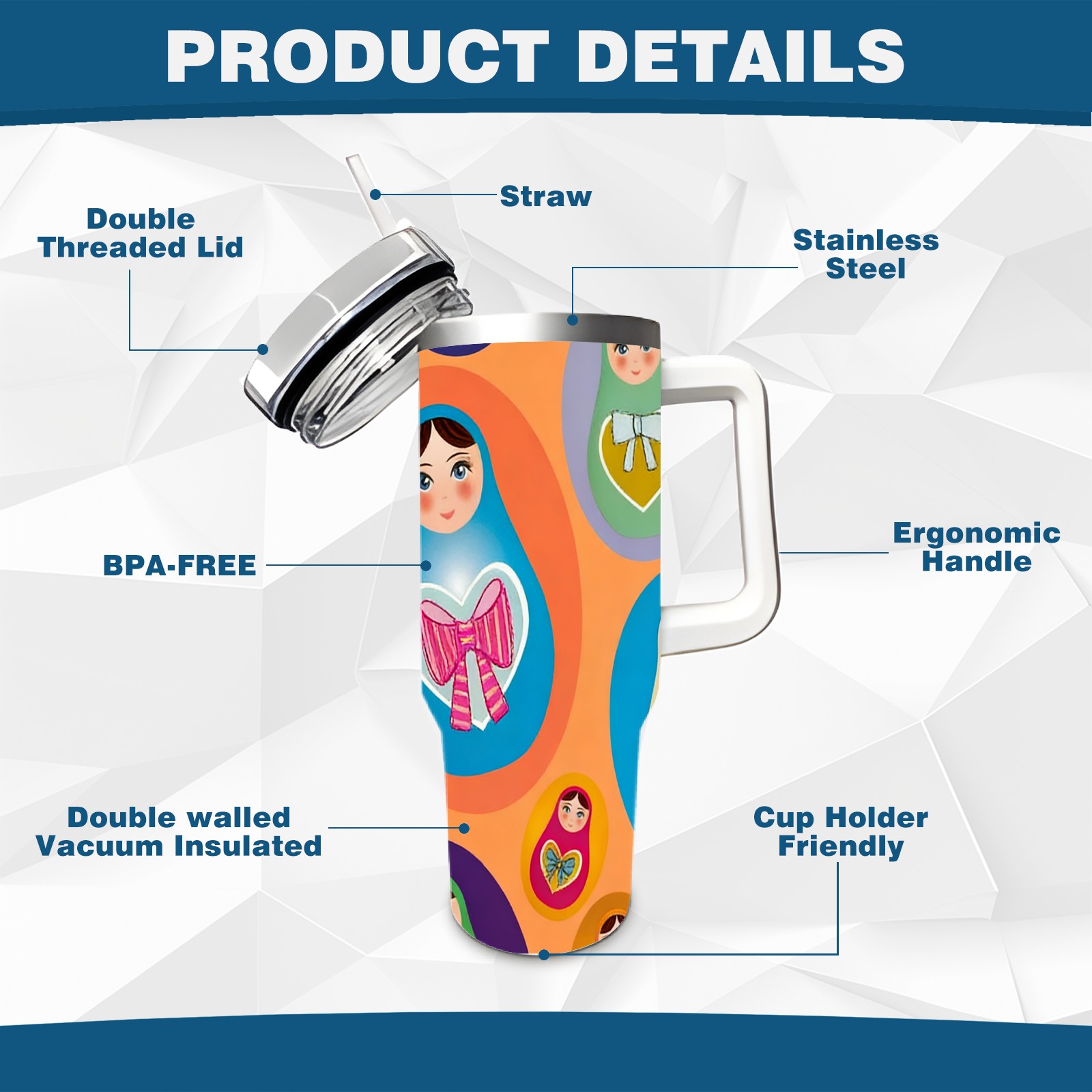 40 унций полностью напечатанный автомобильный стакан Vibrant Dolls Orange