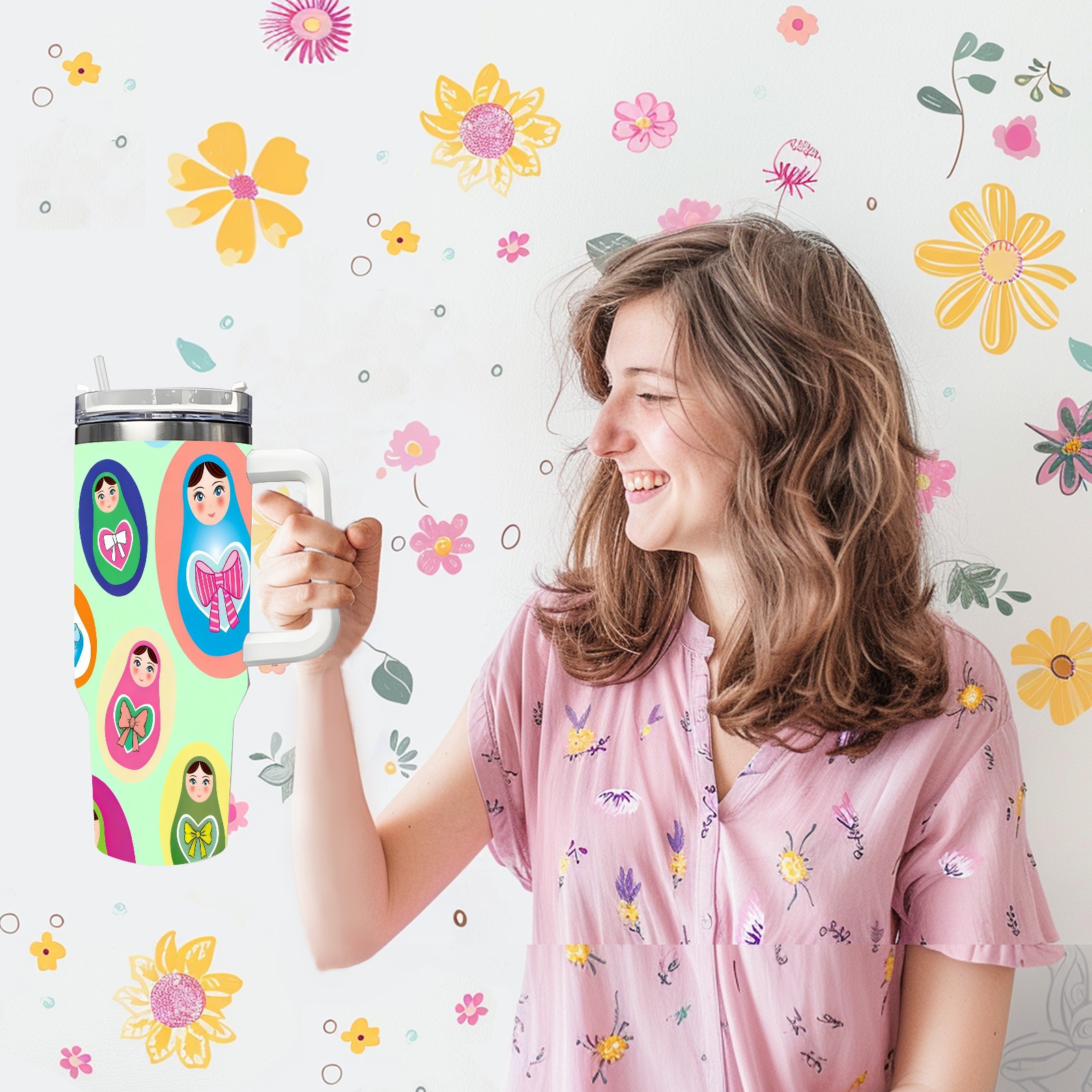 40 унций полностью напечатанный автомобильный стакан Bright Dolls Green