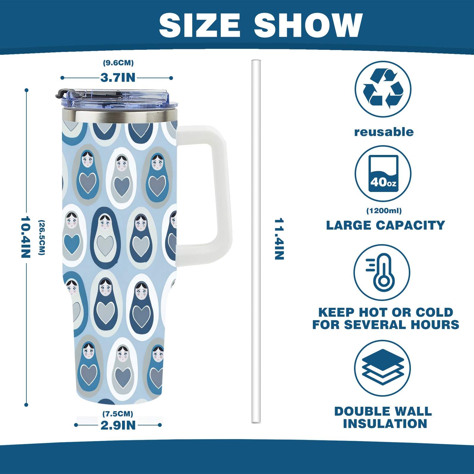 40 унций полностью напечатанный автомобильный стакан Minimalist Dolls Gray
