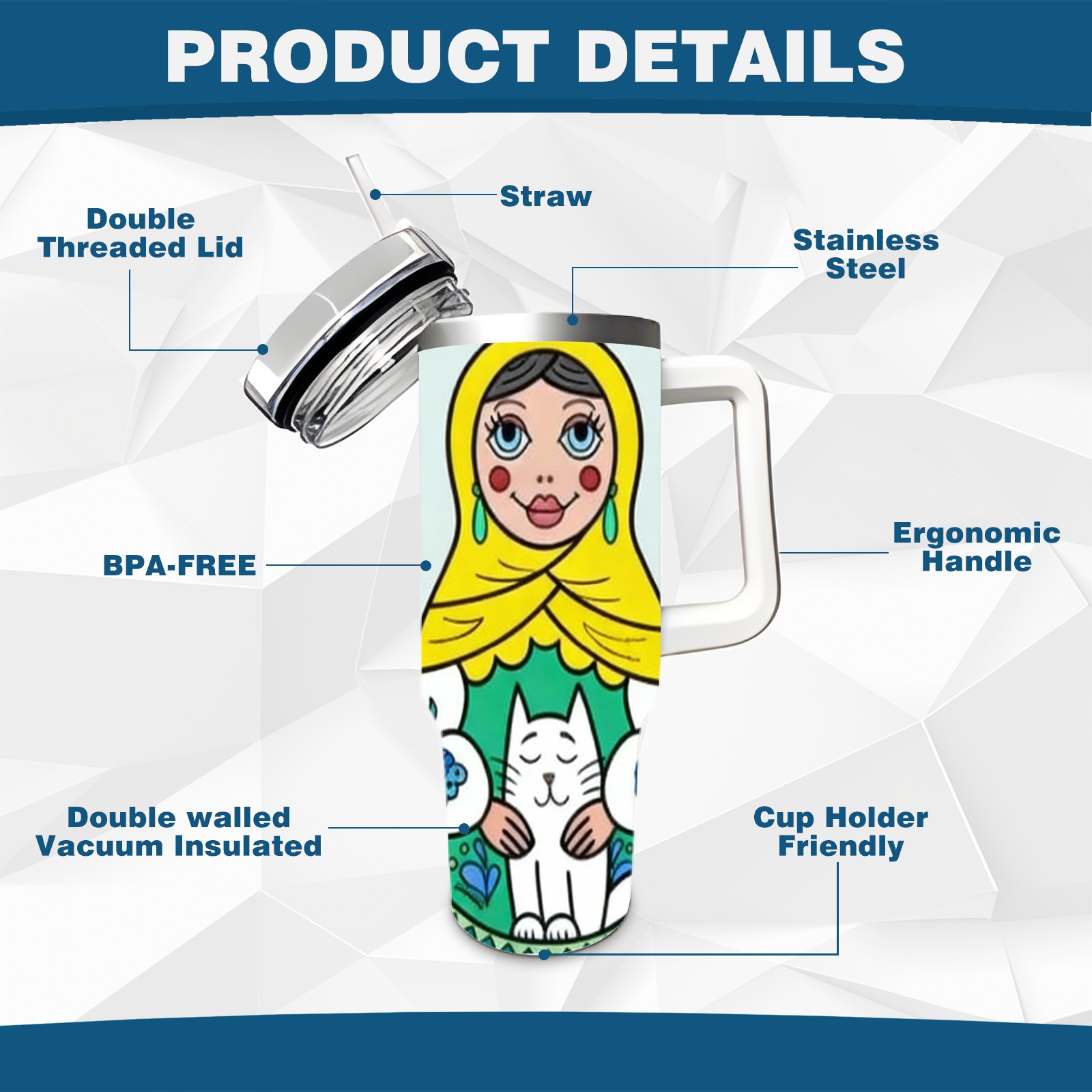 40 унций полностью напечатанный автомобильный стакан Fresh Dolls Blue