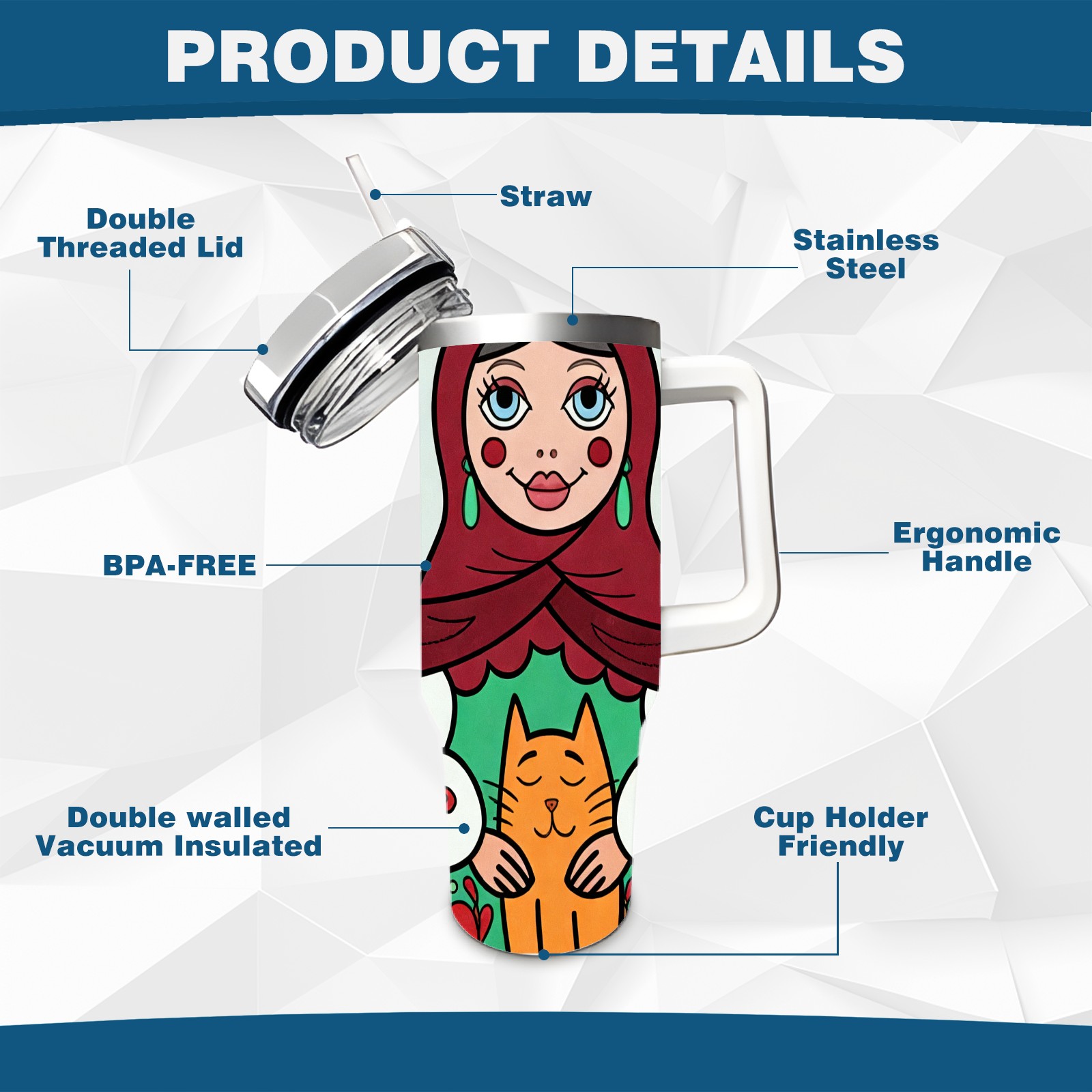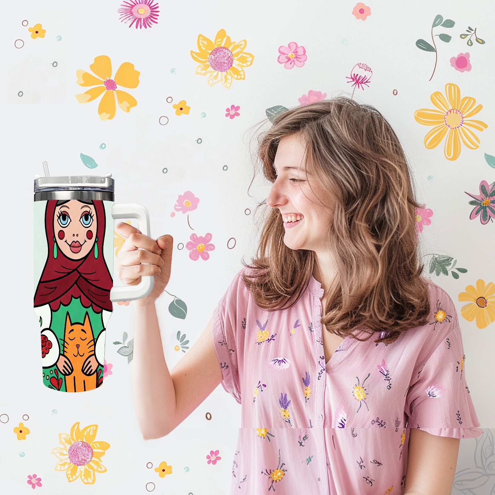40 унций полностью напечатанный автомобильный стакан Warm Dolls Red