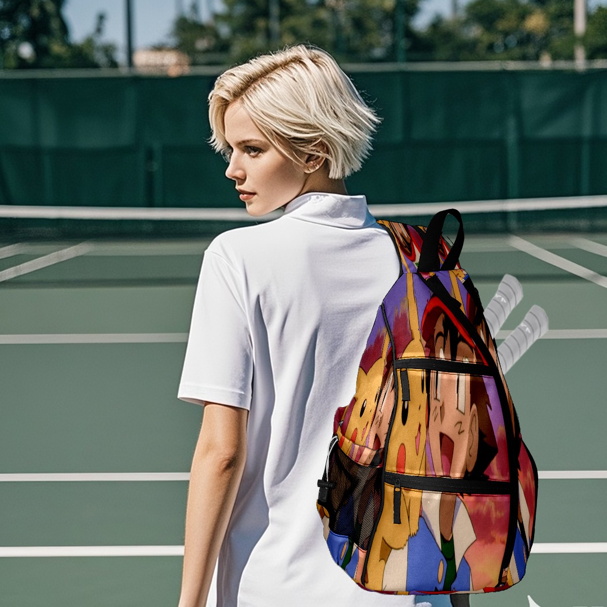 Multifunctional Pickleball Bag,Large Capacity Sports Pickleball Racket Bag, Water Bottle Holder and Fence Hook,Suitable for Both Men Women -横图B (135)