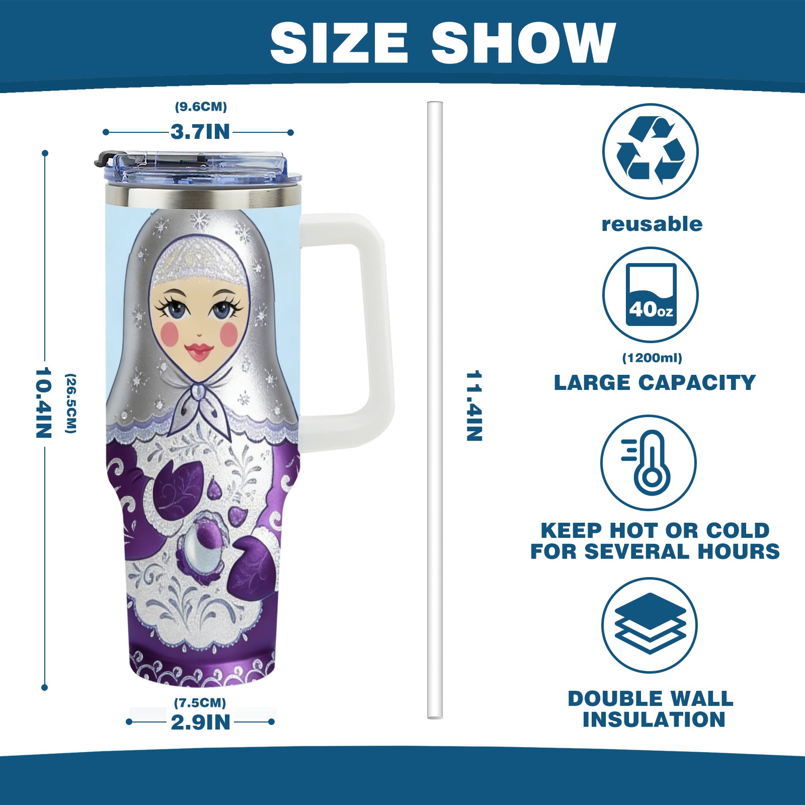 • С большой емкостью 40 унций, он обеспечивает вас гидратацией в течение всего дня, идеально подходит для воды, кофе, сока или других напитков. Эргономичный дизайн идеально вписывается в автомобильные держатели для бутылок, а прочный, герметичный колпачок предотвращает утечки во время передвижения. Путешествие. Антискользящее основание обеспечивает устойчивость, а гладкие поверхности делают уборку легкой — просто мойте вручную или кладите в посудомоечную машину (рекомендуется верхний поддон).