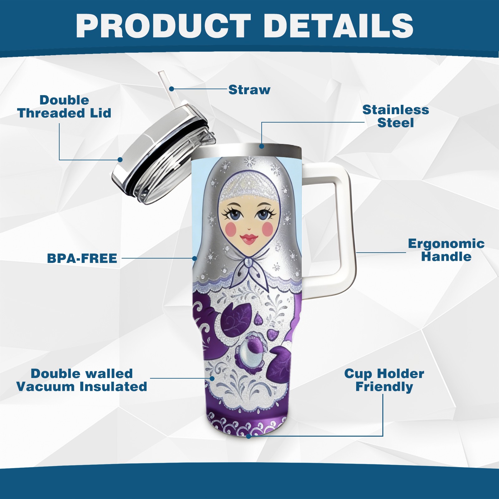 40 унций полностью напечатанный автомобильный стакан Luxe Dolls Silver
