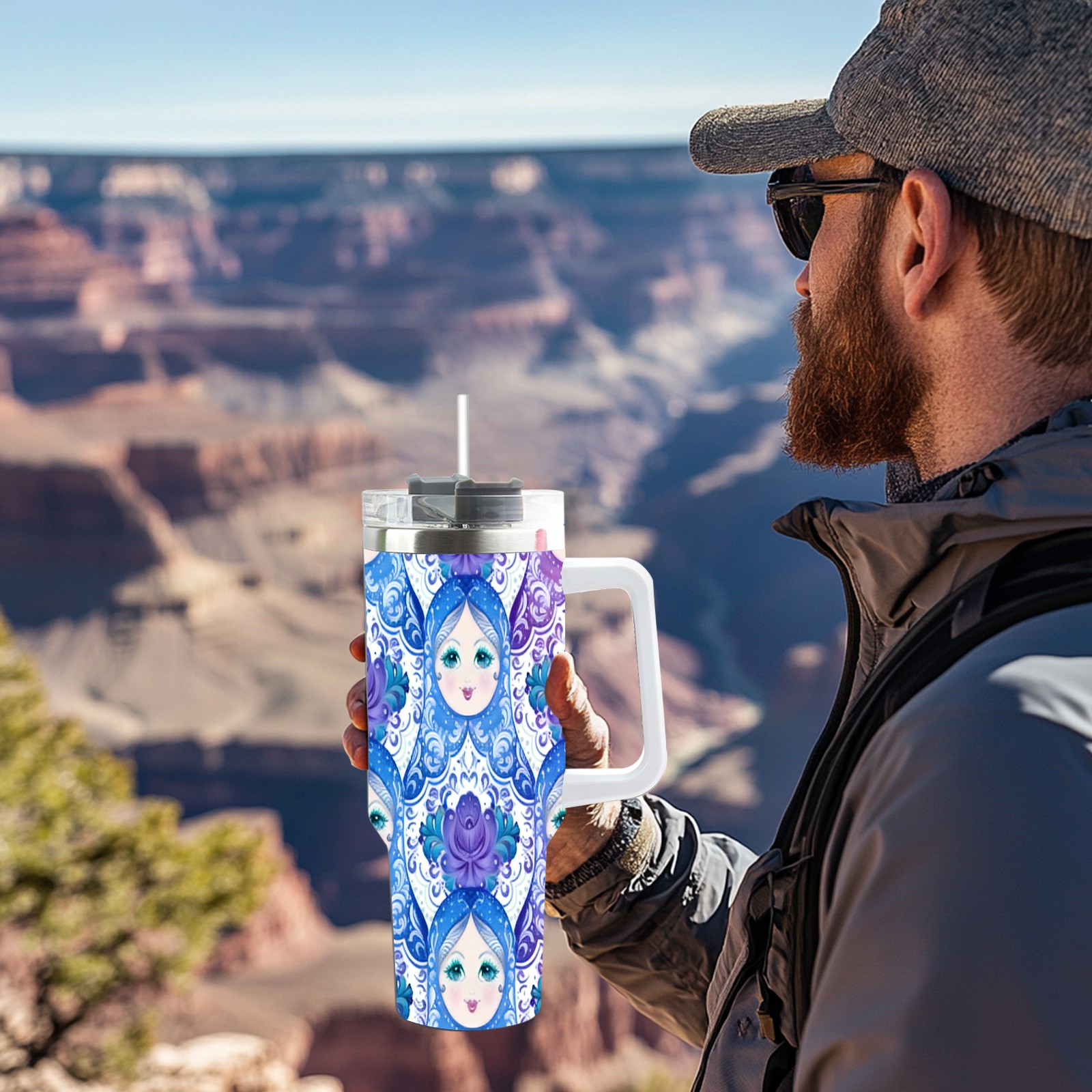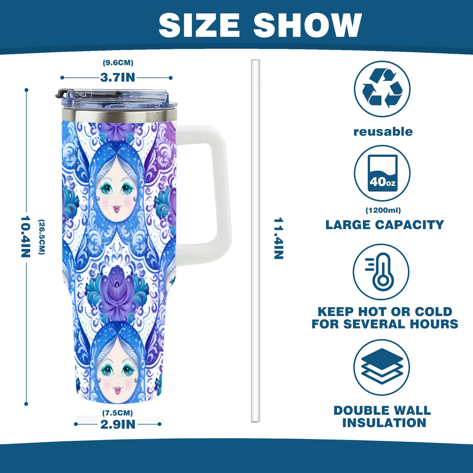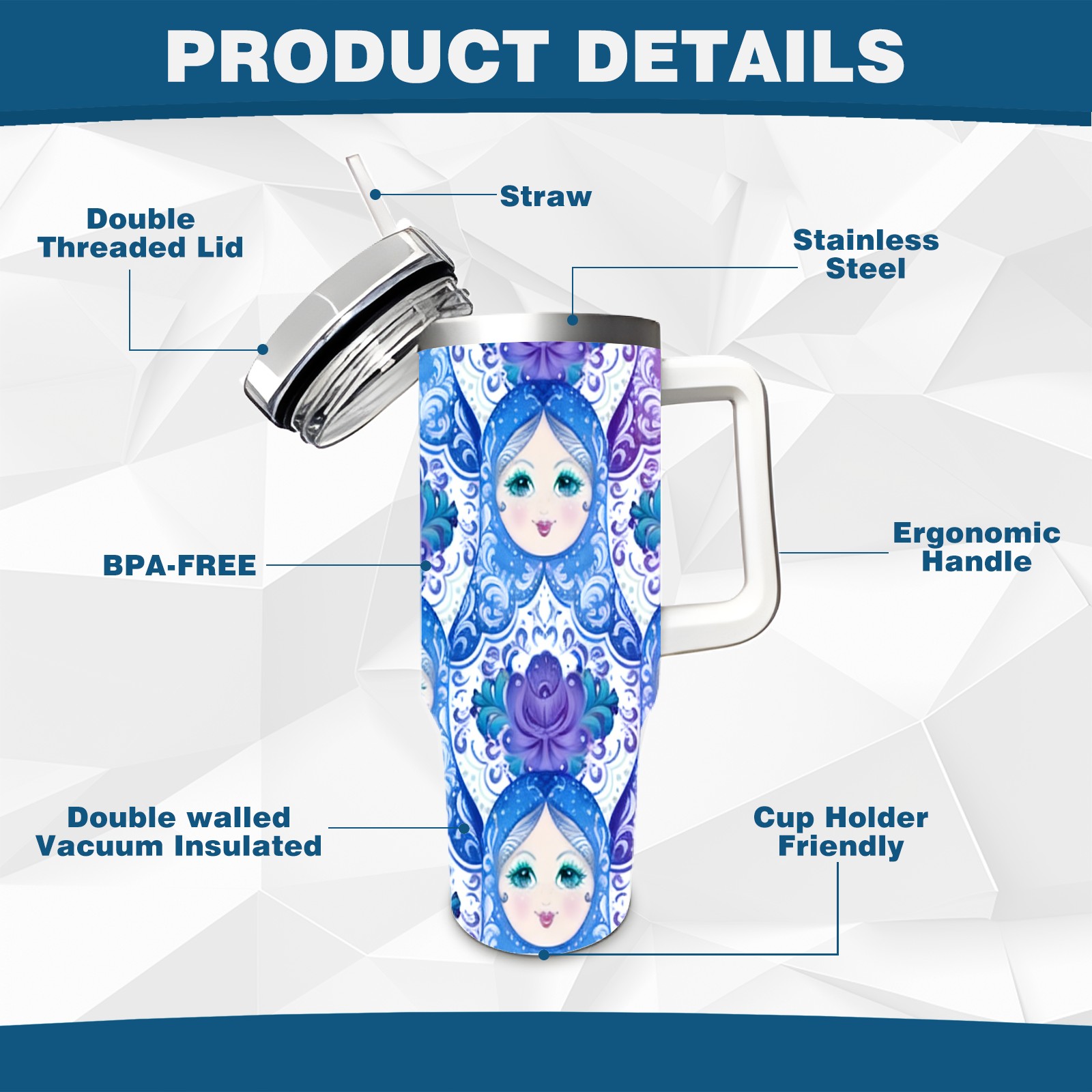40 унций полностью напечатанный автомобильный стакан Dreamy Dolls Blue