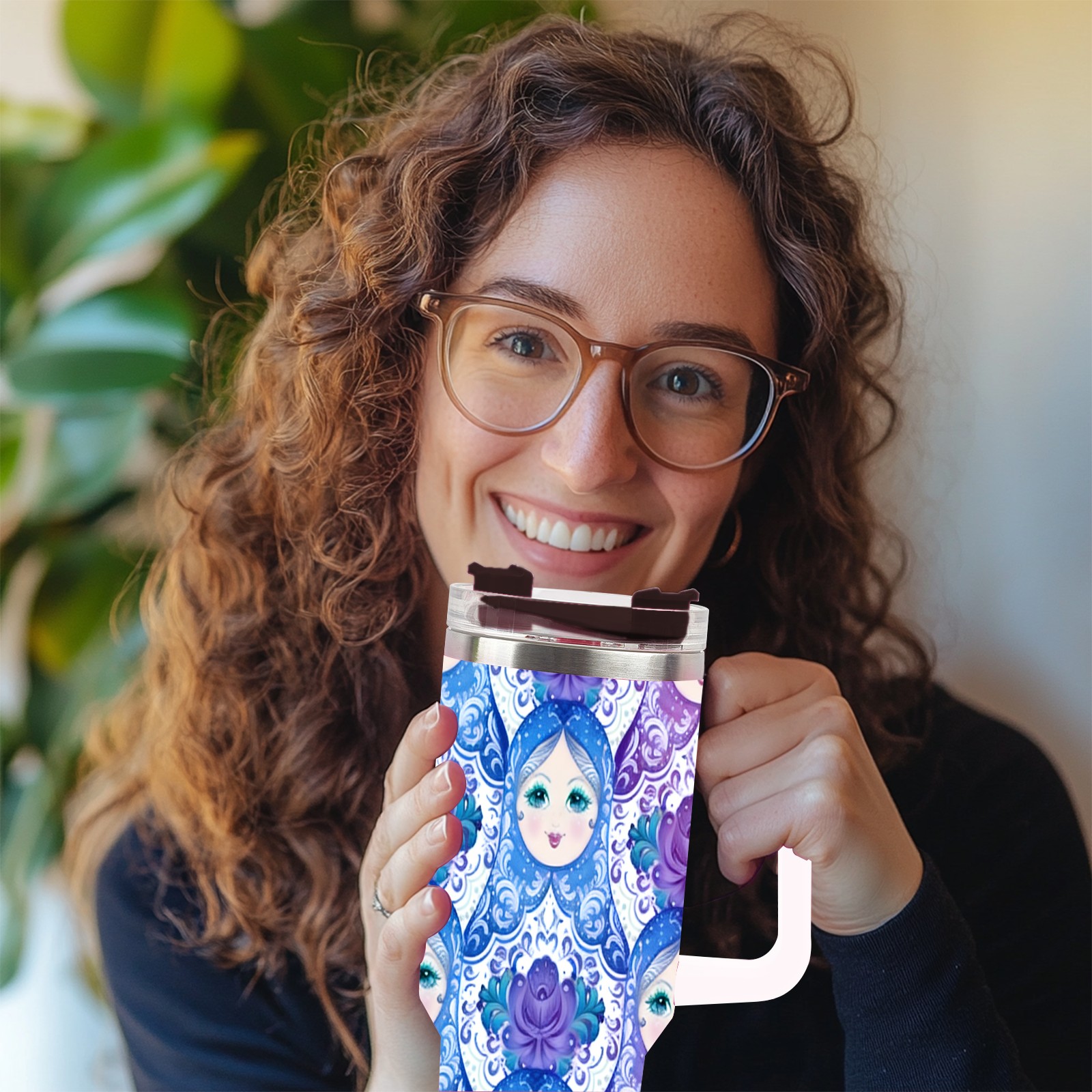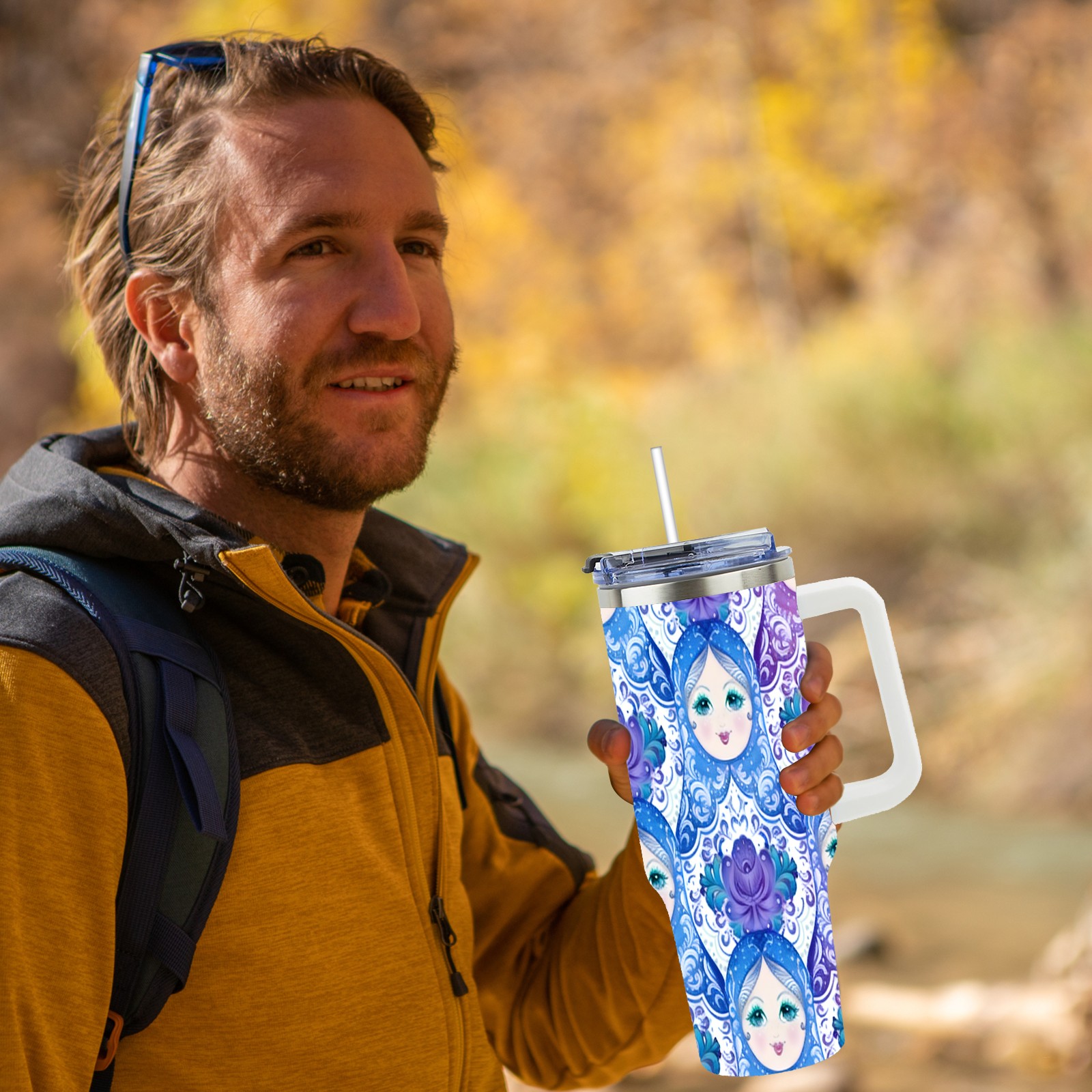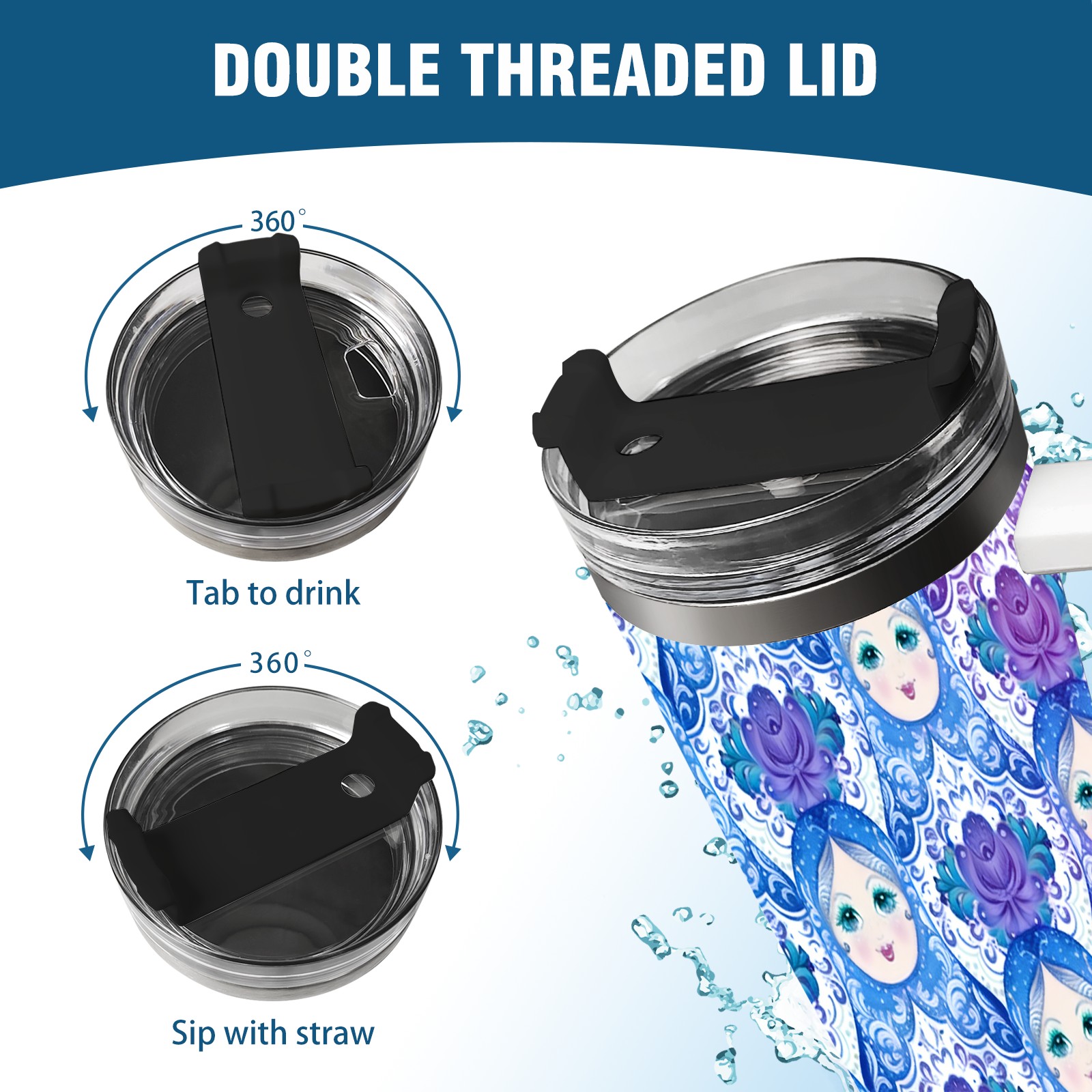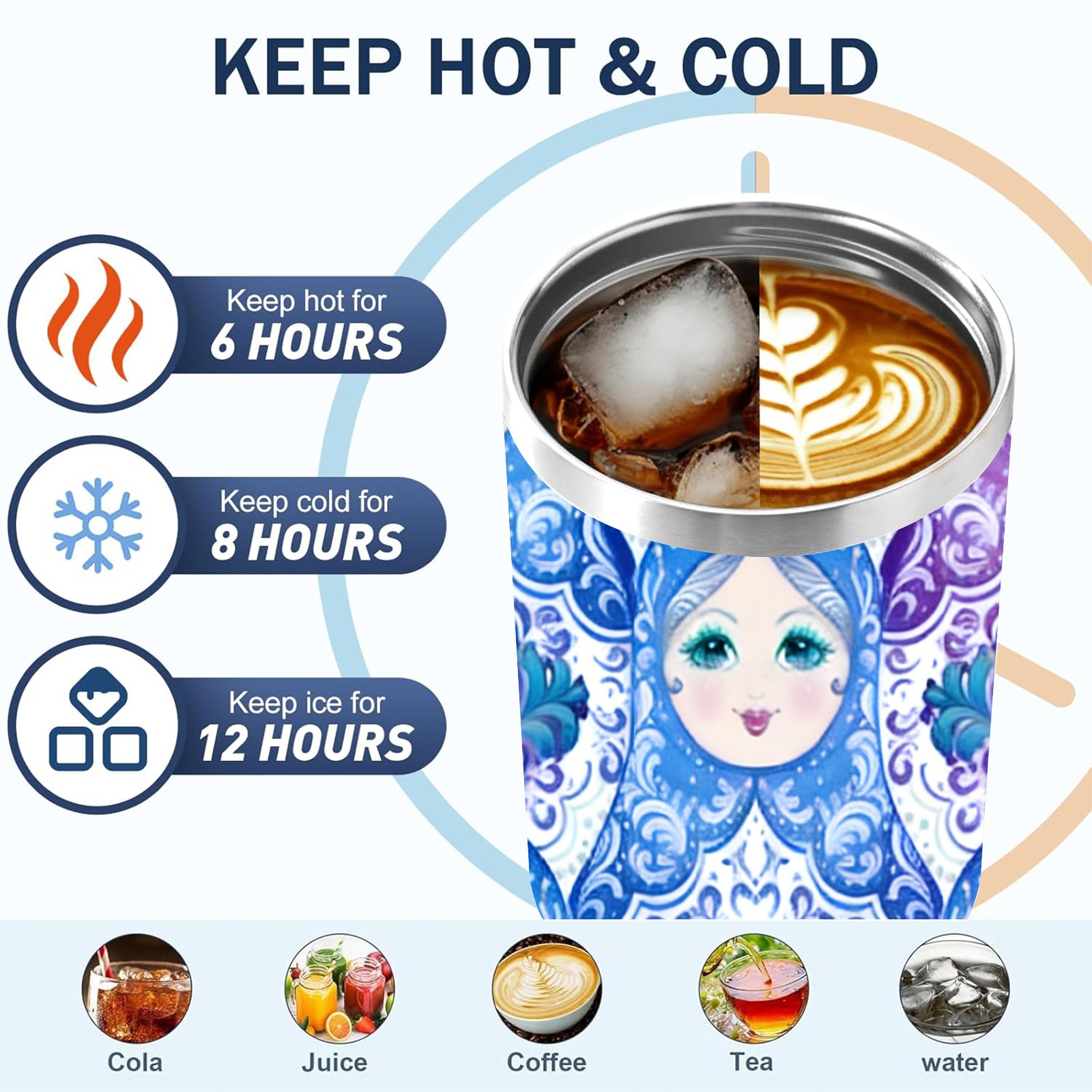 40 унций полностью напечатанный автомобильный стакан Dreamy Dolls Blue