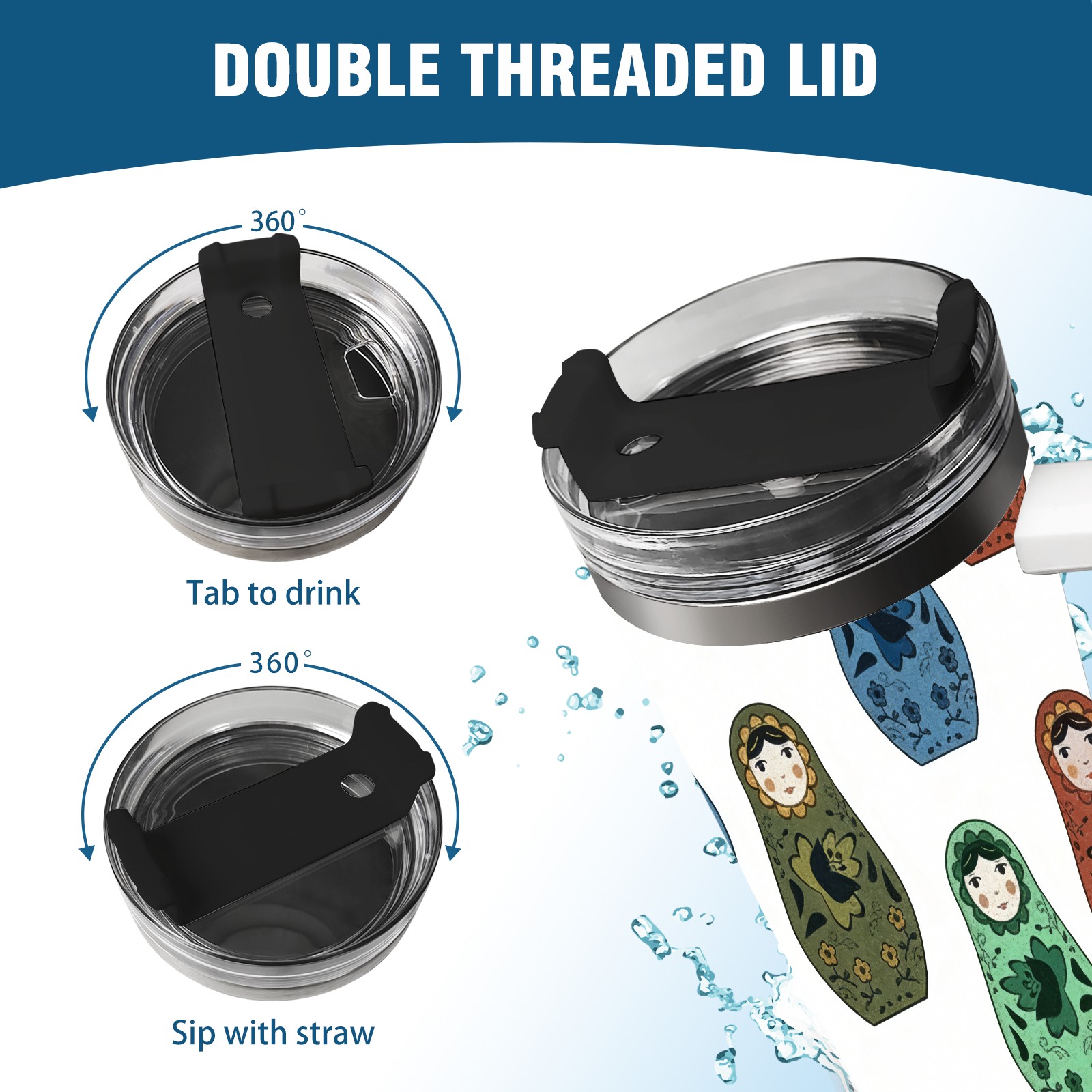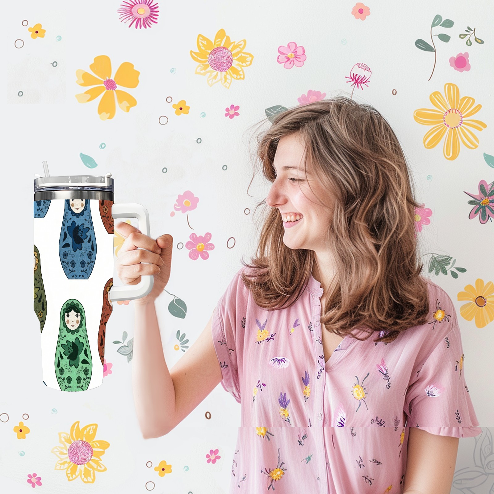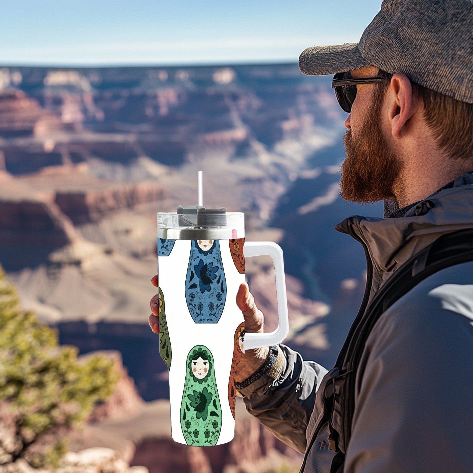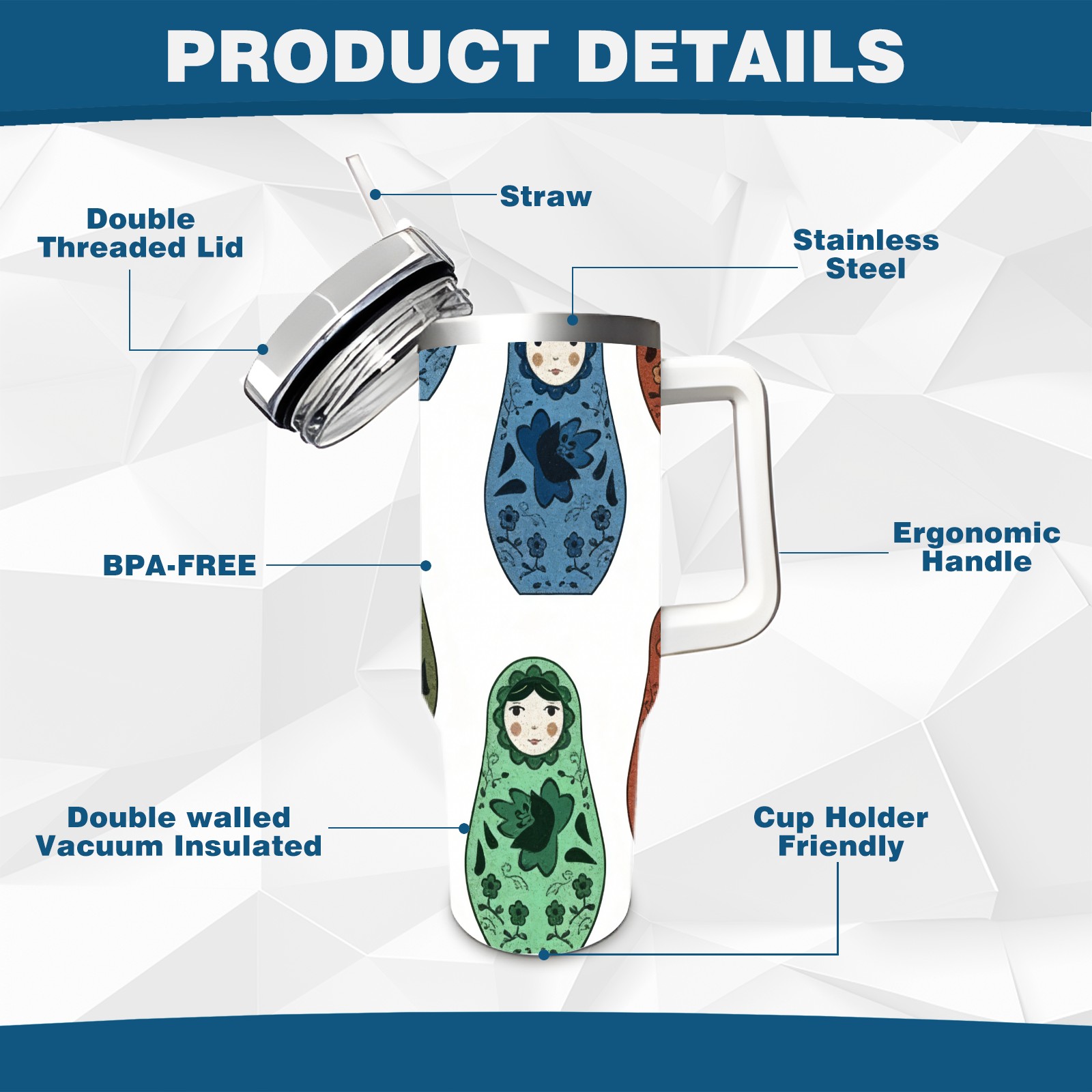 40 унций полностью напечатанный автомобильный стакан Minimalist Dolls Gray