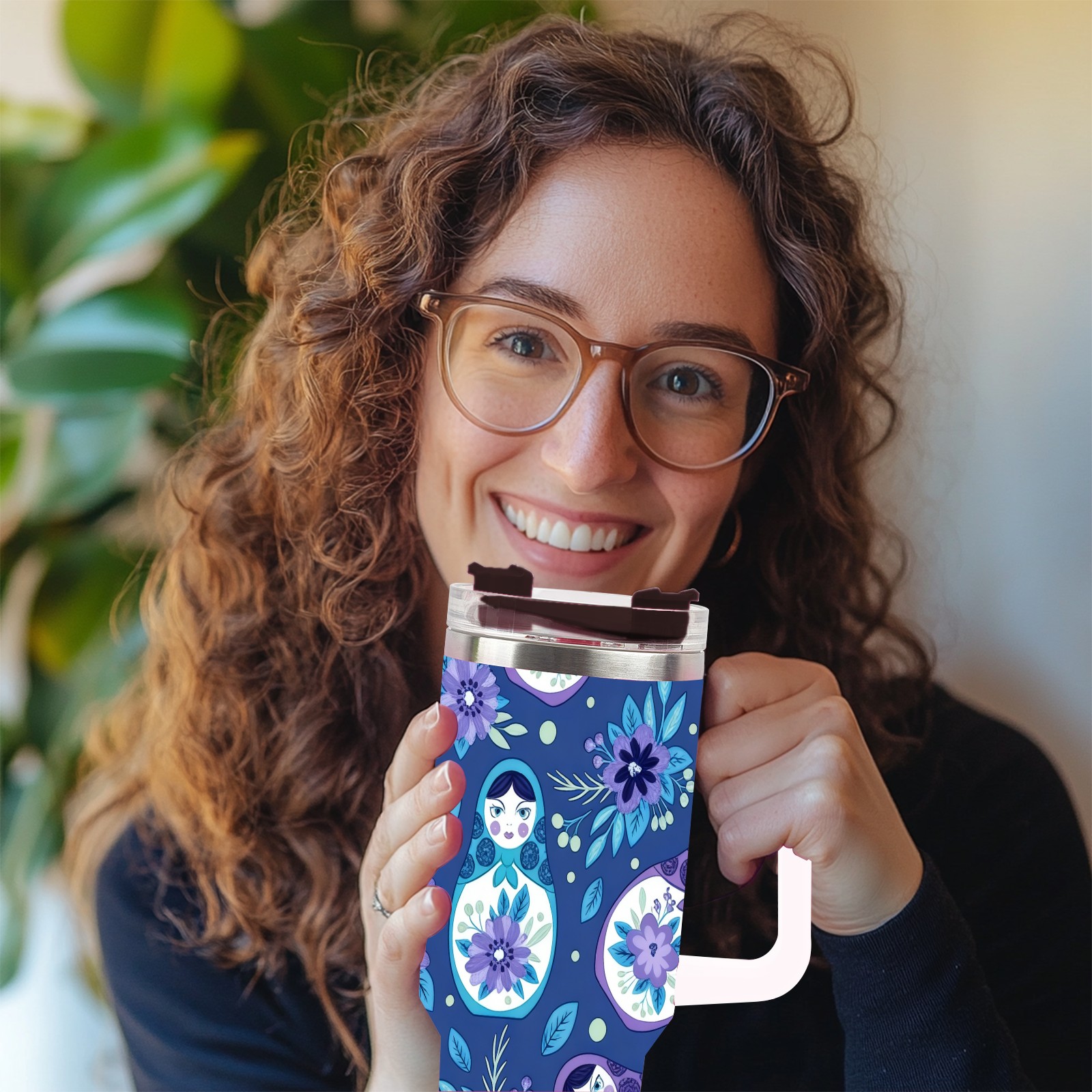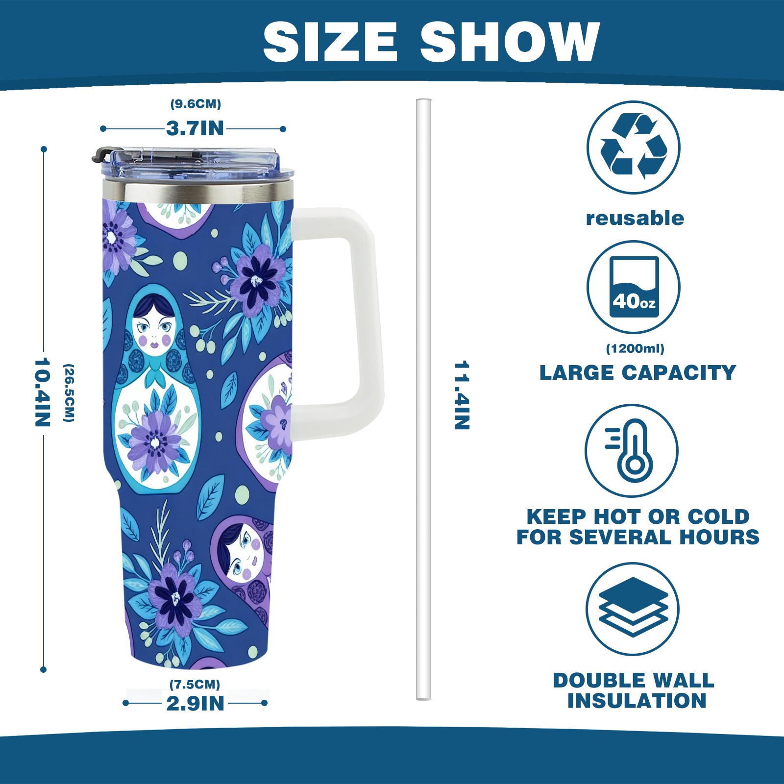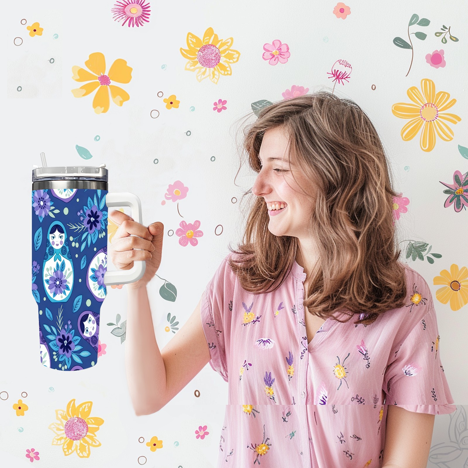 40 унций полностью напечатанный автомобильный стакан Fresh Floral Blue
