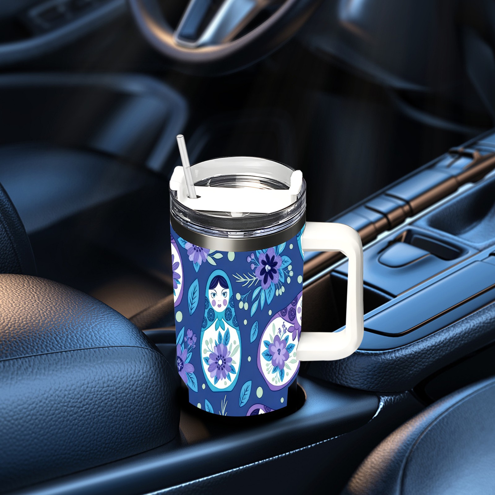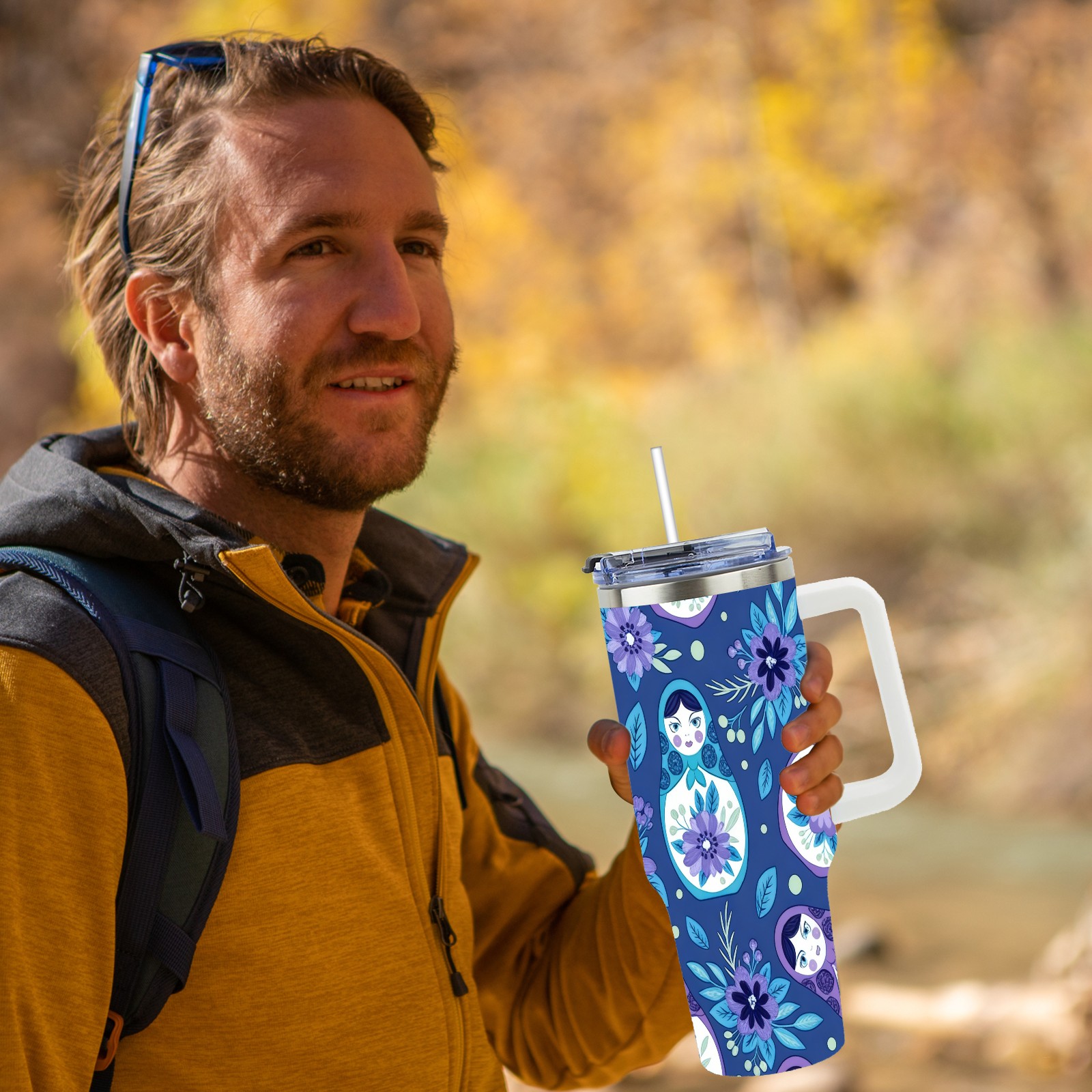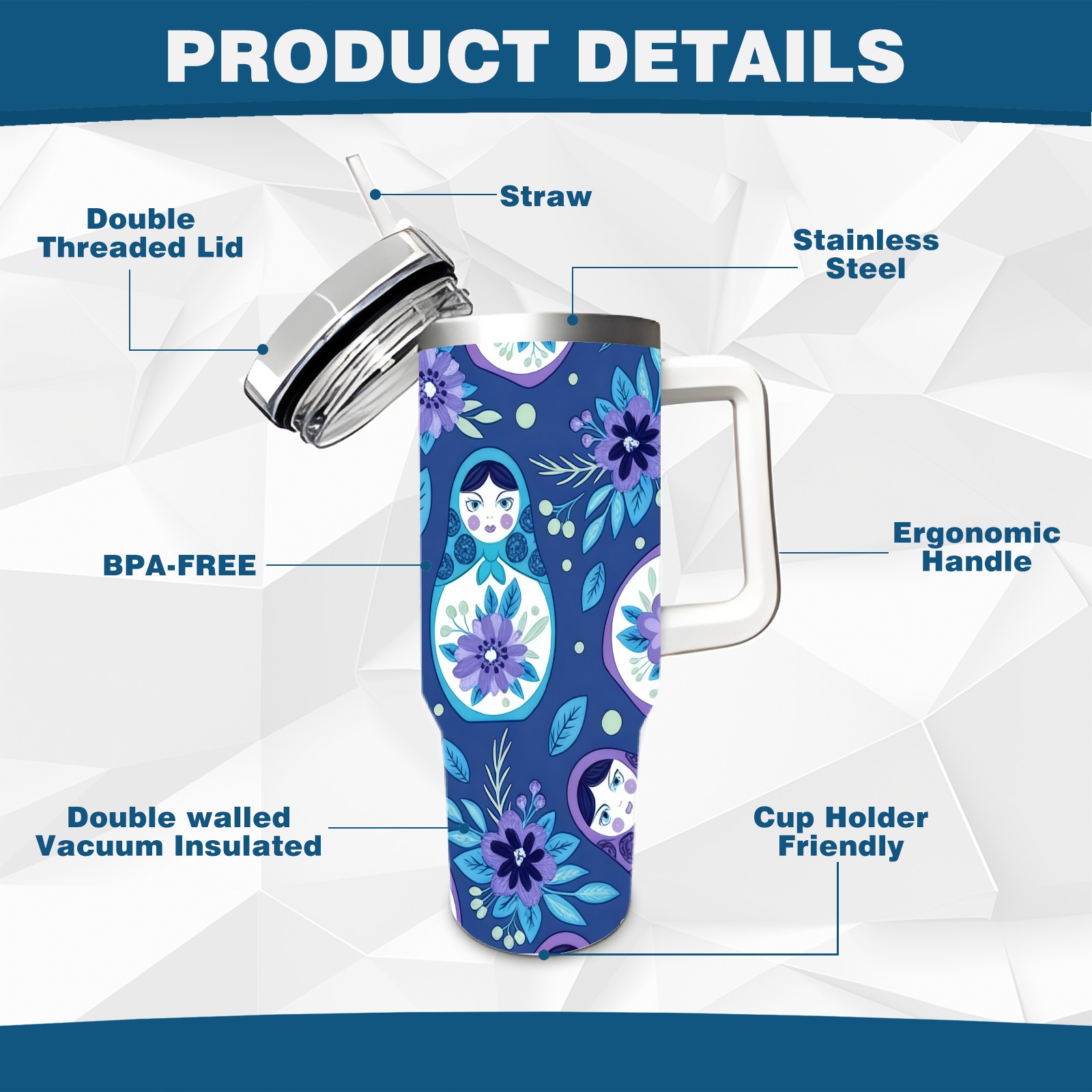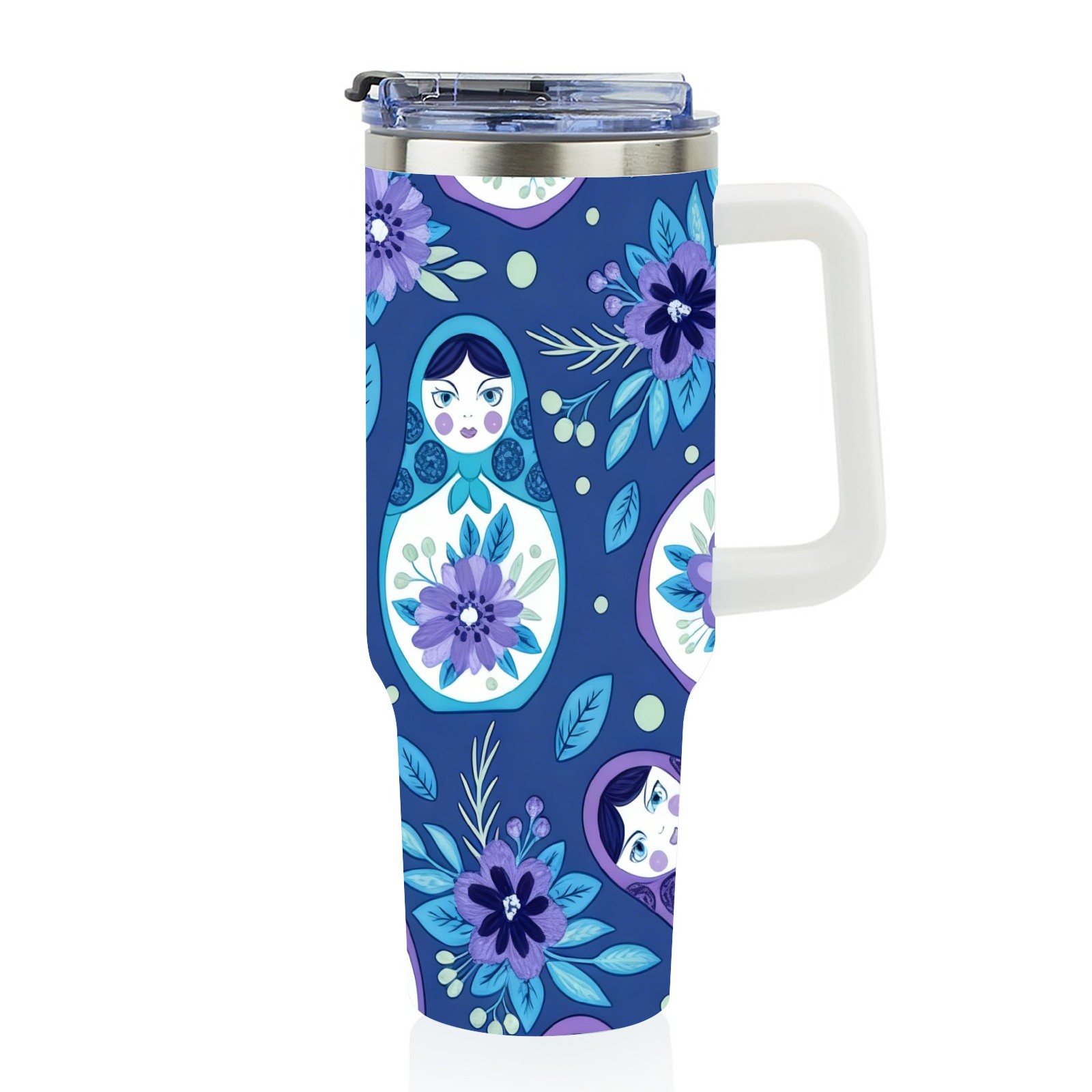 40 унций полностью напечатанный автомобильный стакан Fresh Floral Blue