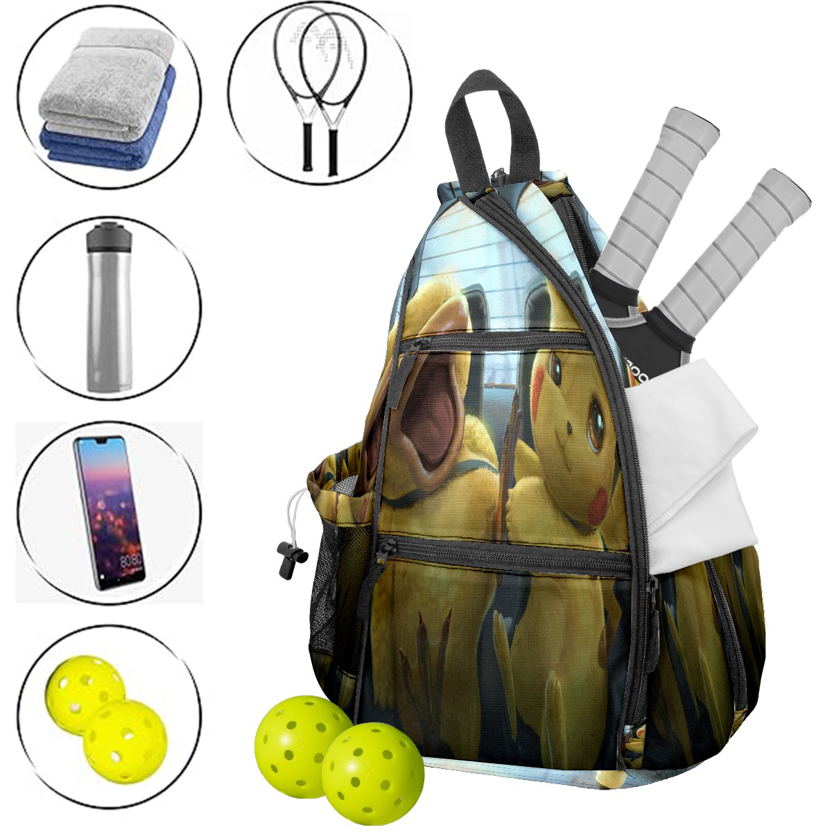 Multifunctional Pickleball Bag,Large Capacity Sports Pickleball Racket Bag, Water Bottle Holder and Fence Hook,Suitable for Both Men Women -横图A (394)