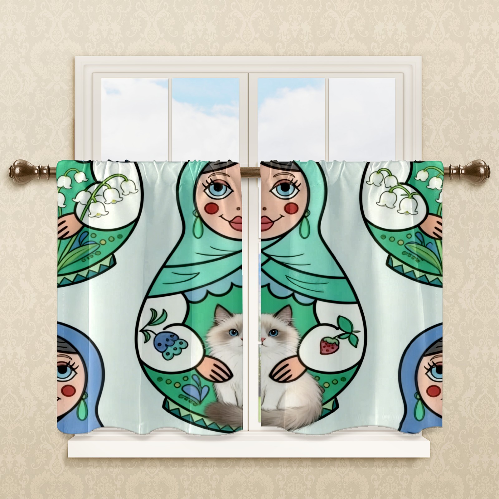 Шторы-панно для дома, декоративные драпировки для гостиной и спальни, легкие и прочные, Cute Dolls Green