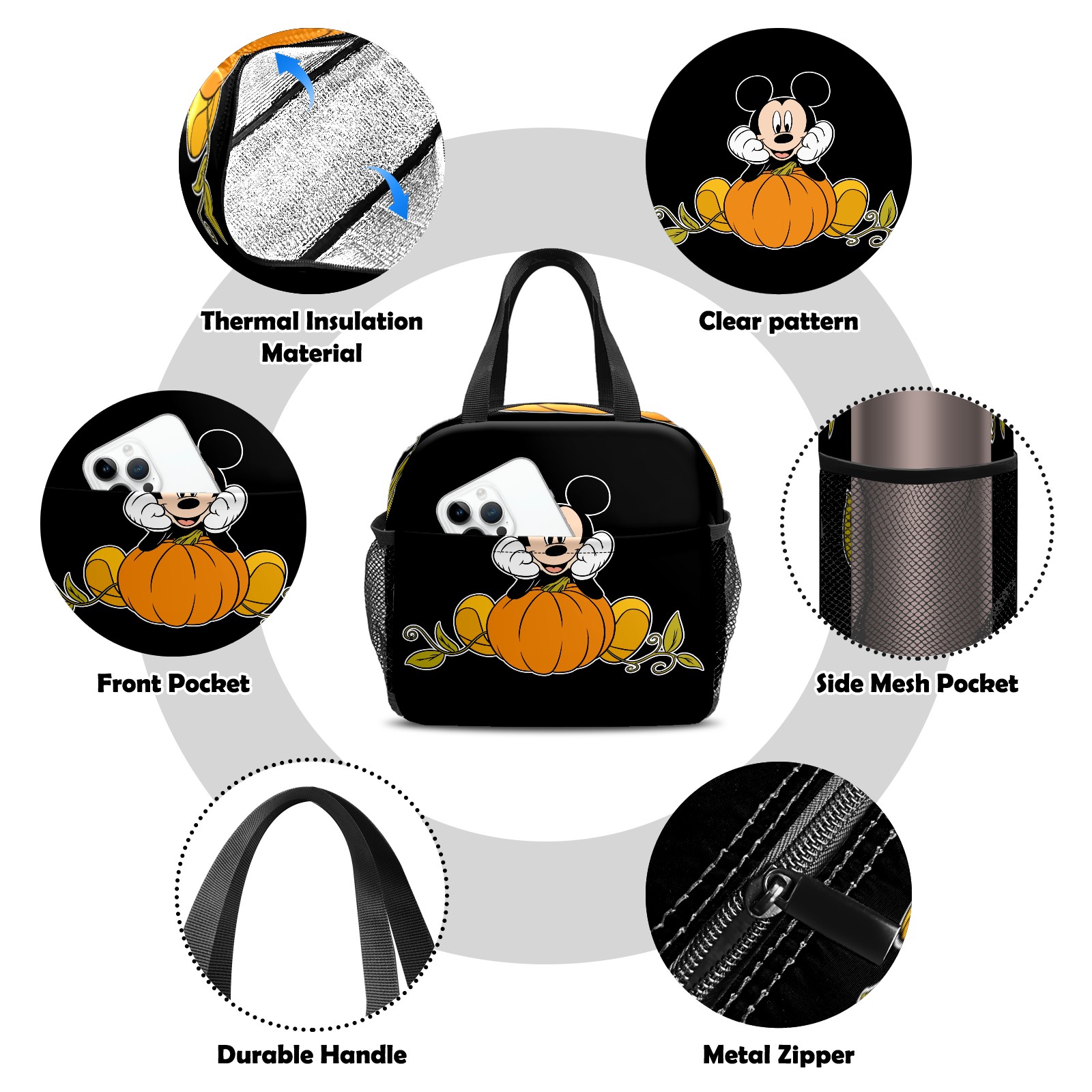 小餐包 Mickey Mouse Sitting On Pumpkin lunch bag