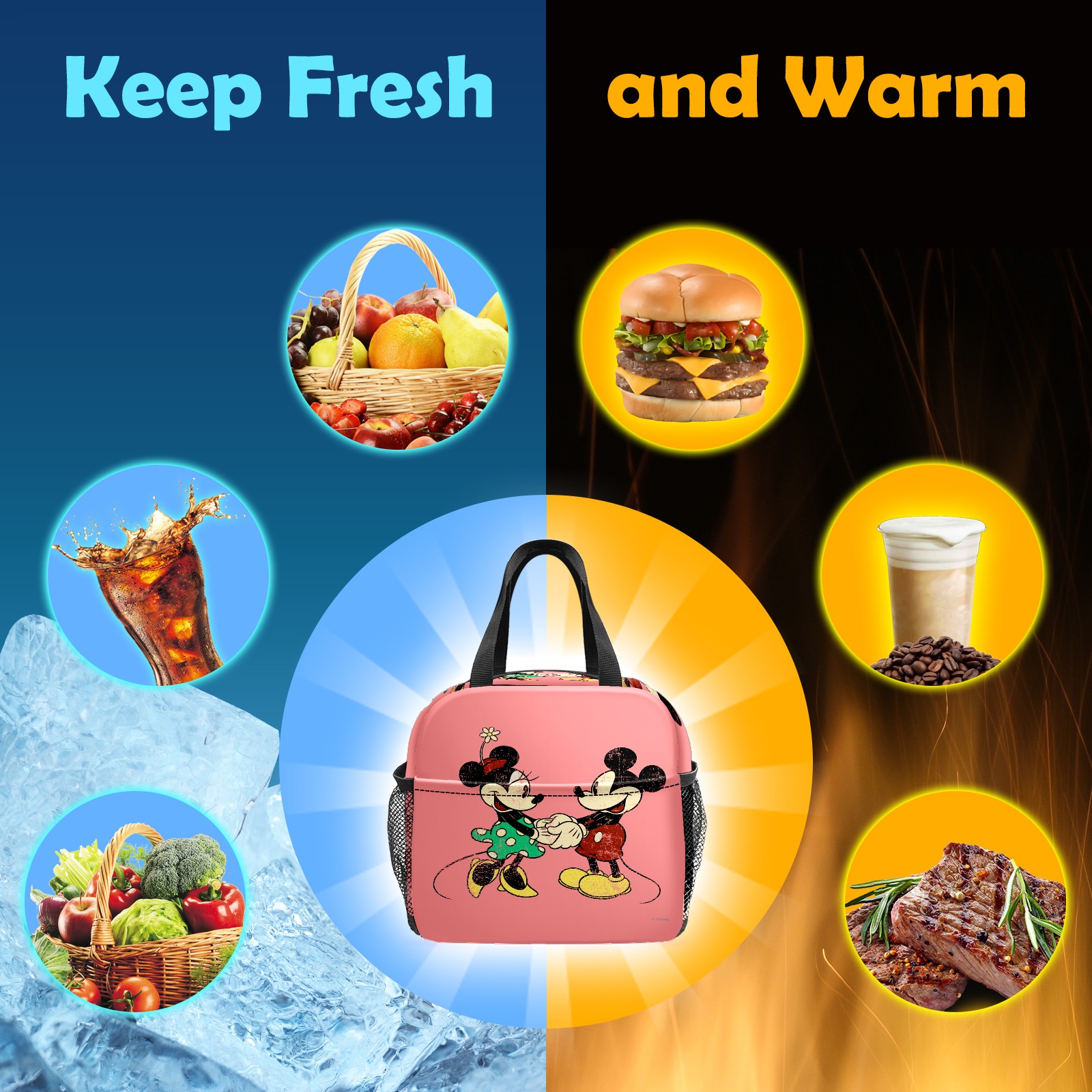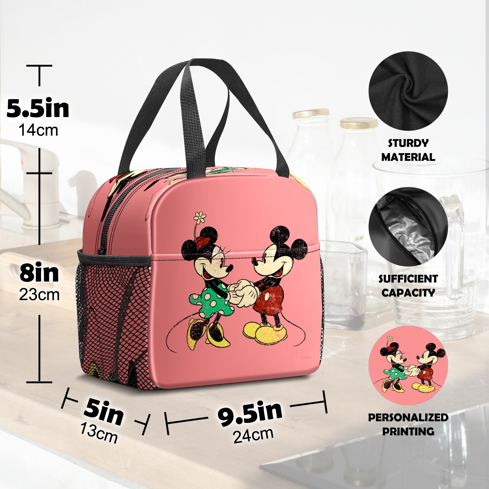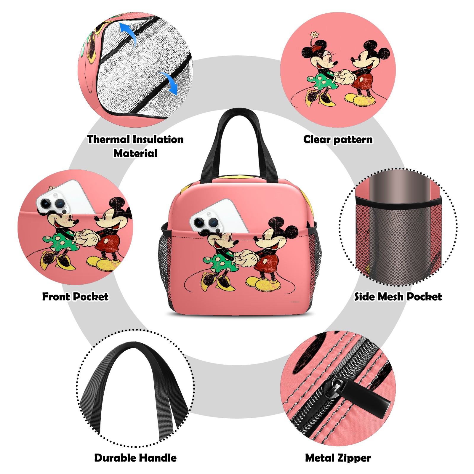 小餐包 Pink Vintage Minnie Mickey Mouse Pattern lunch bag
