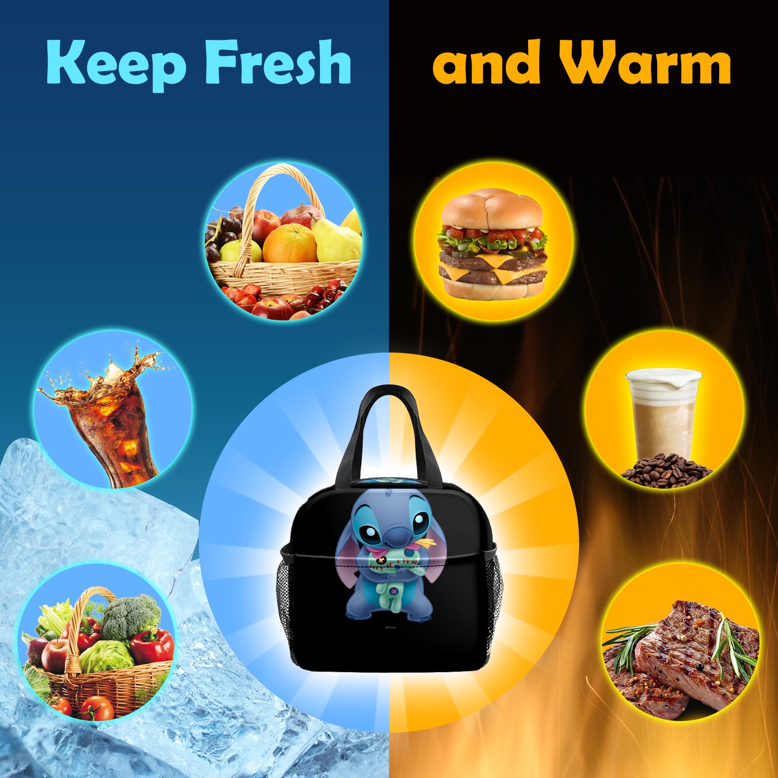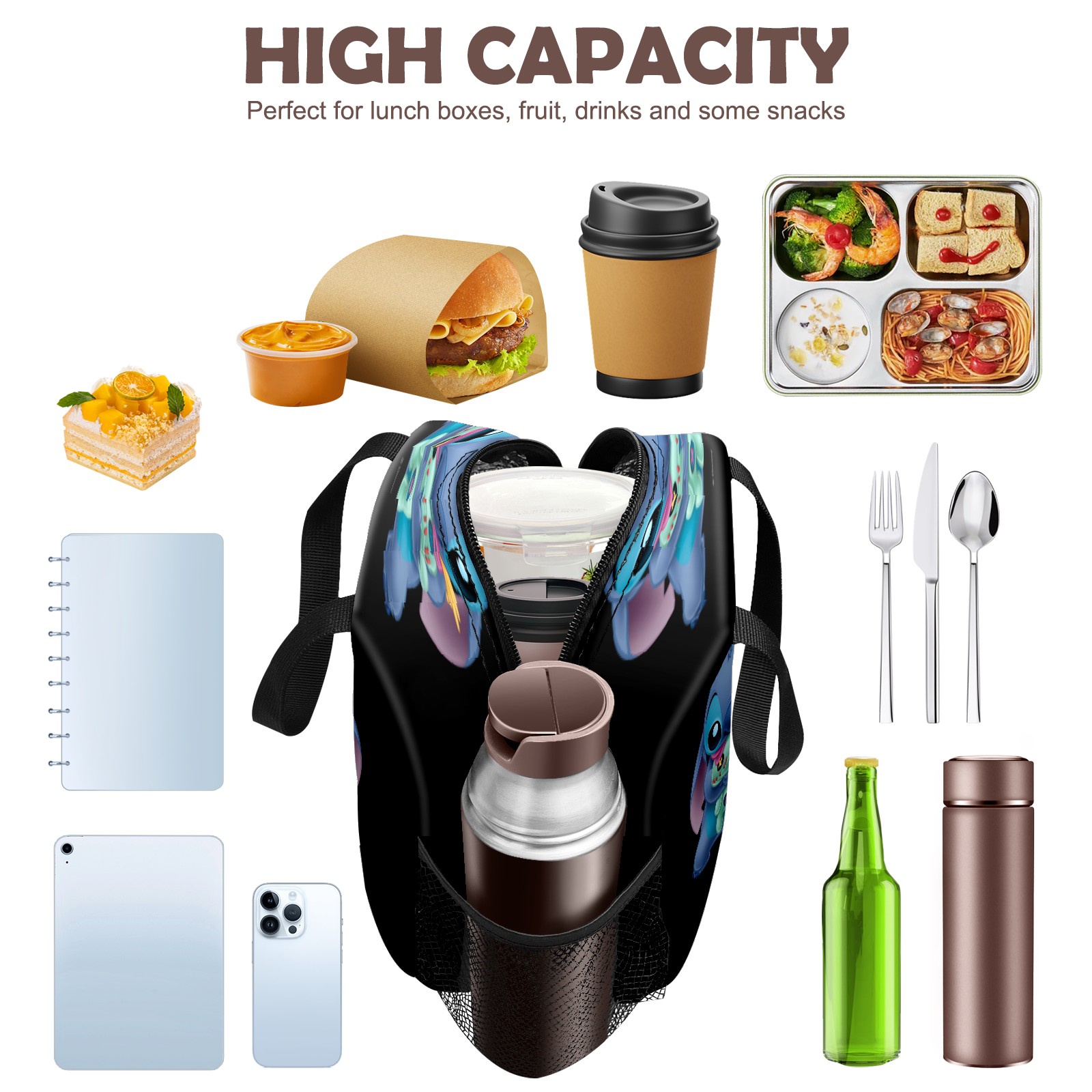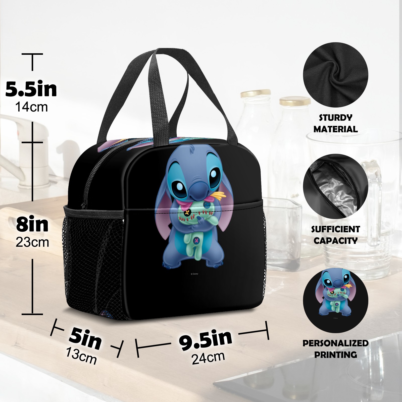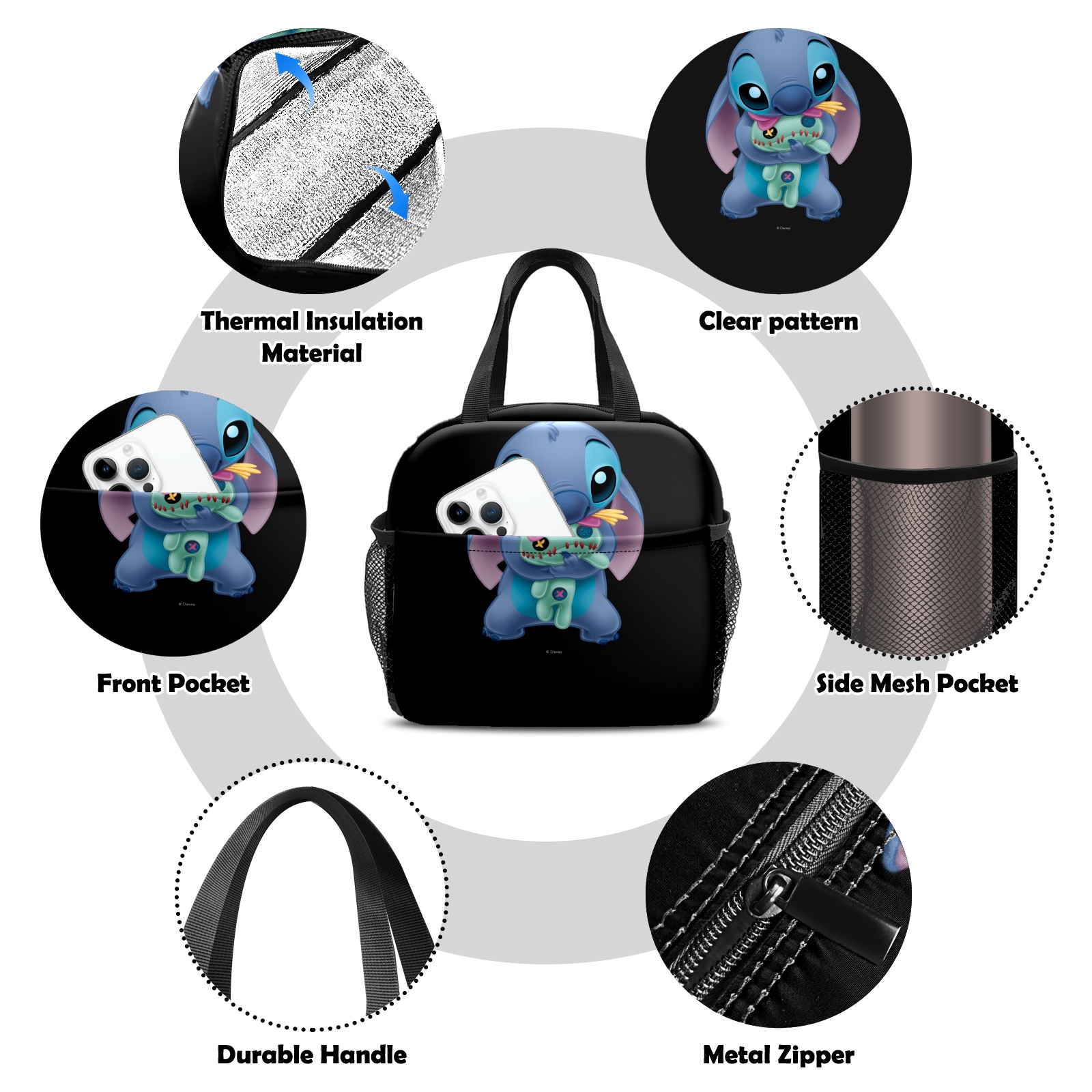 小餐包 Lilo Stich Stitch With Ugly Doll Black lunch bag