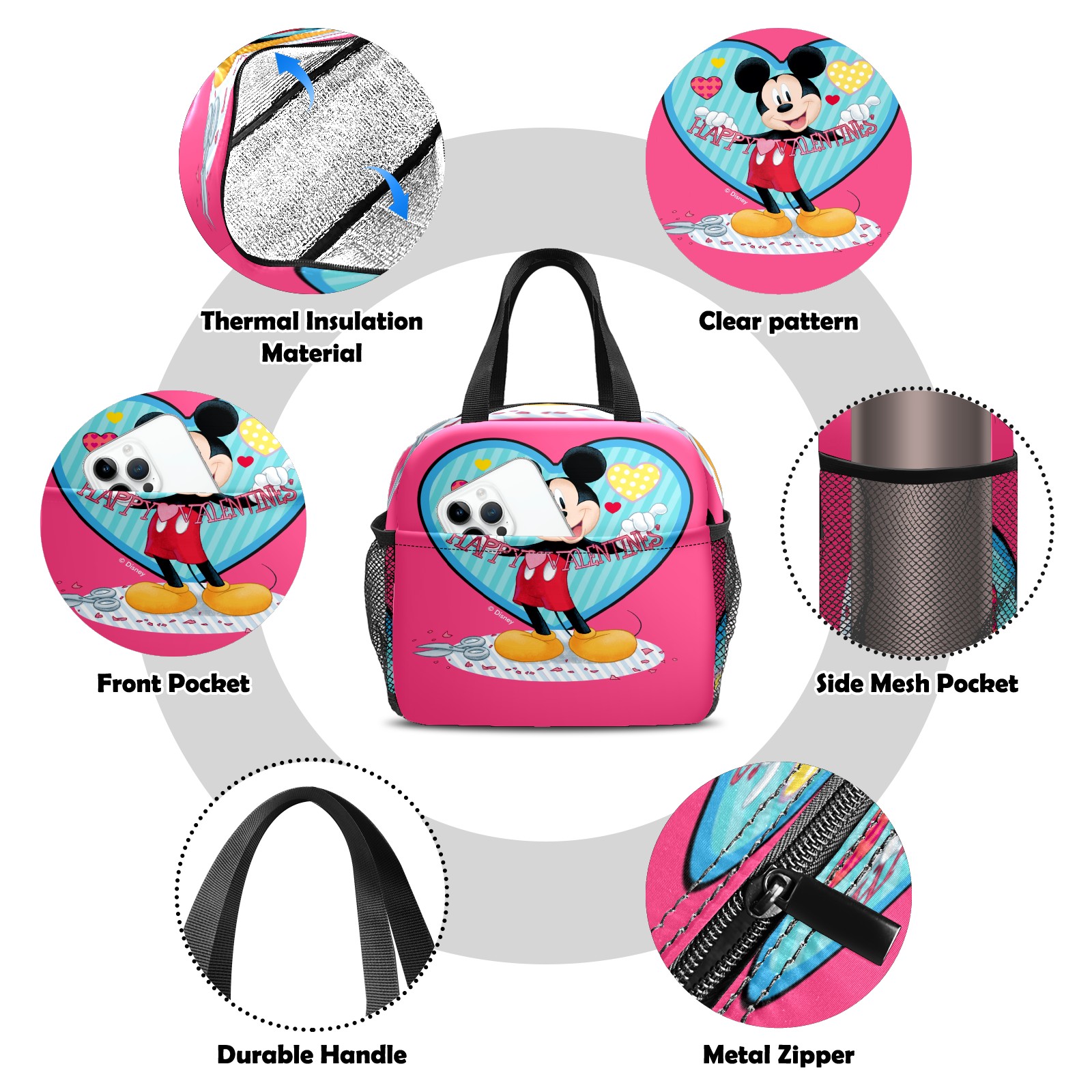小餐包 Mickey Mouse Happy Valentines Day Pink lunch bag