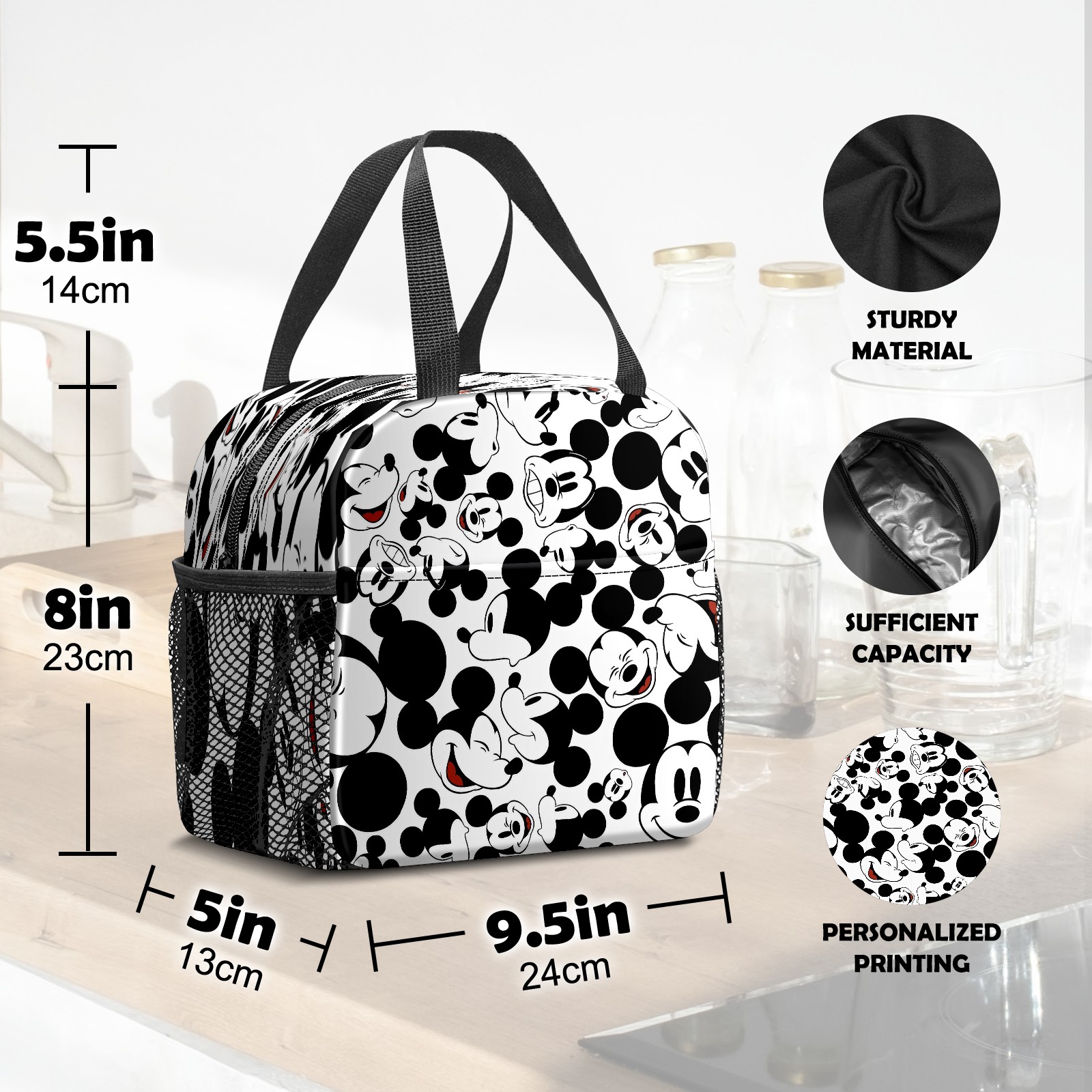 小餐包 Happy Mickey Mouse Black White lunch bag