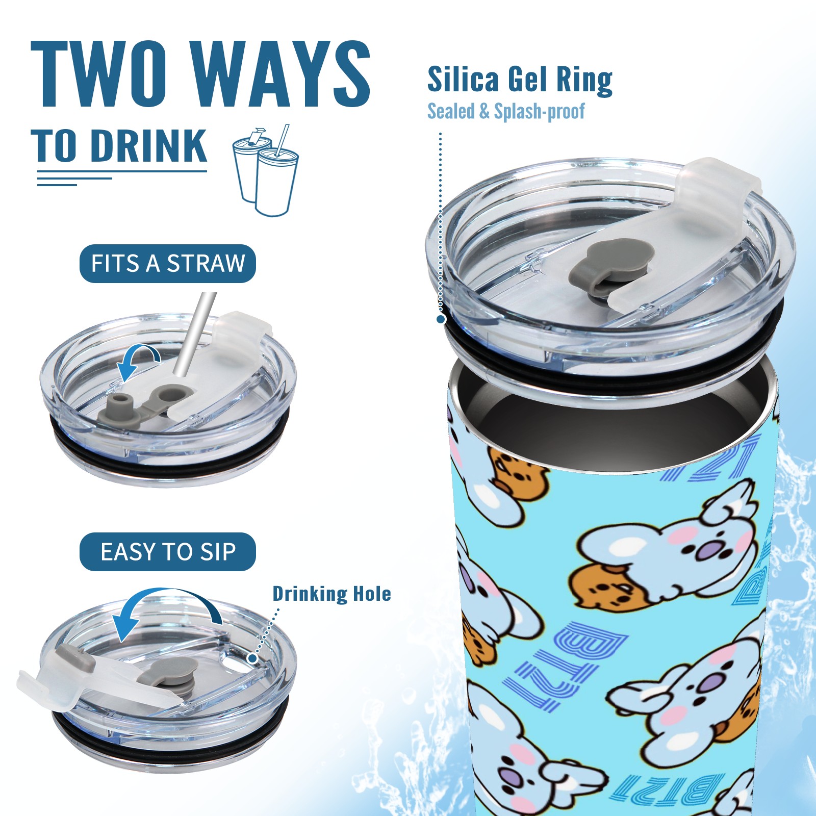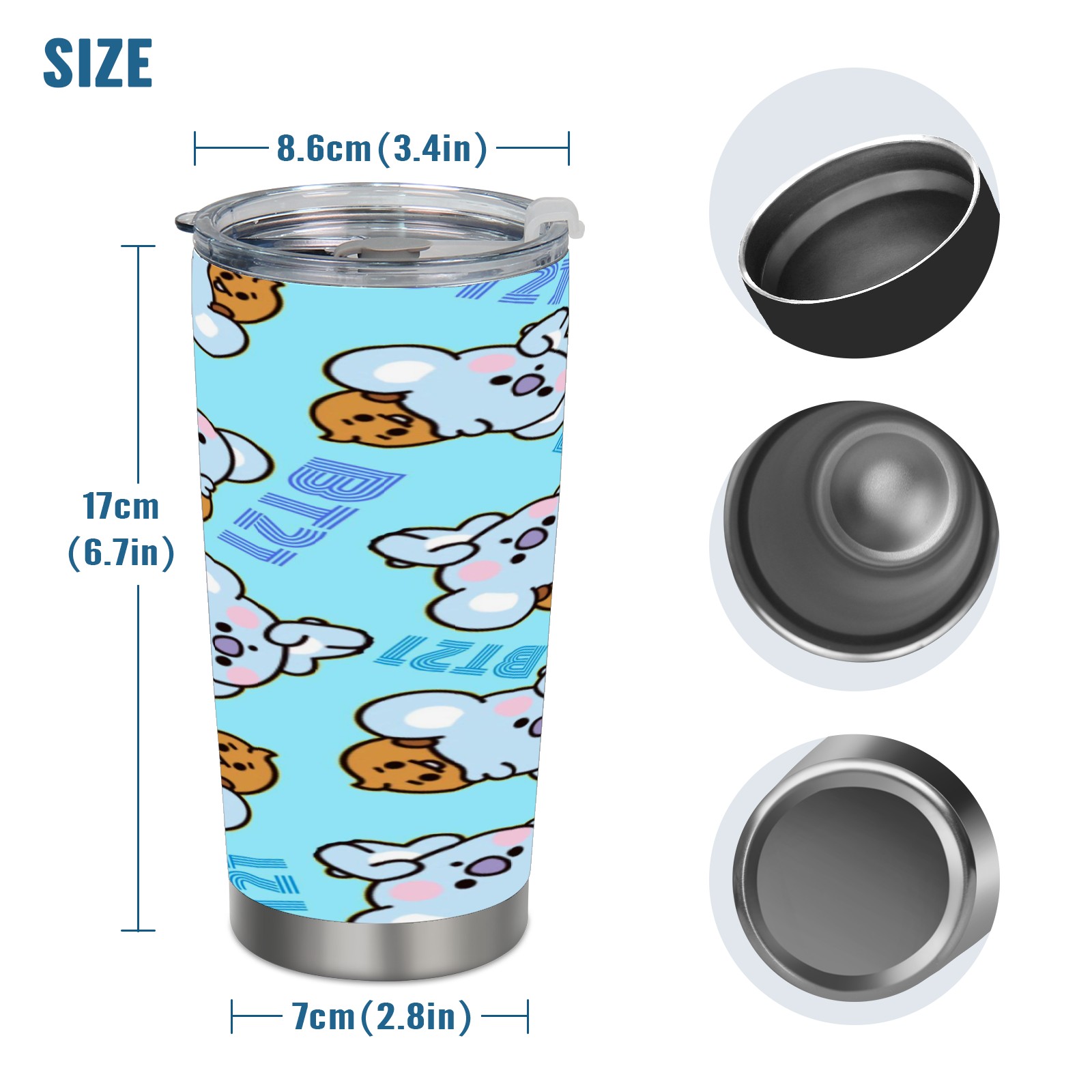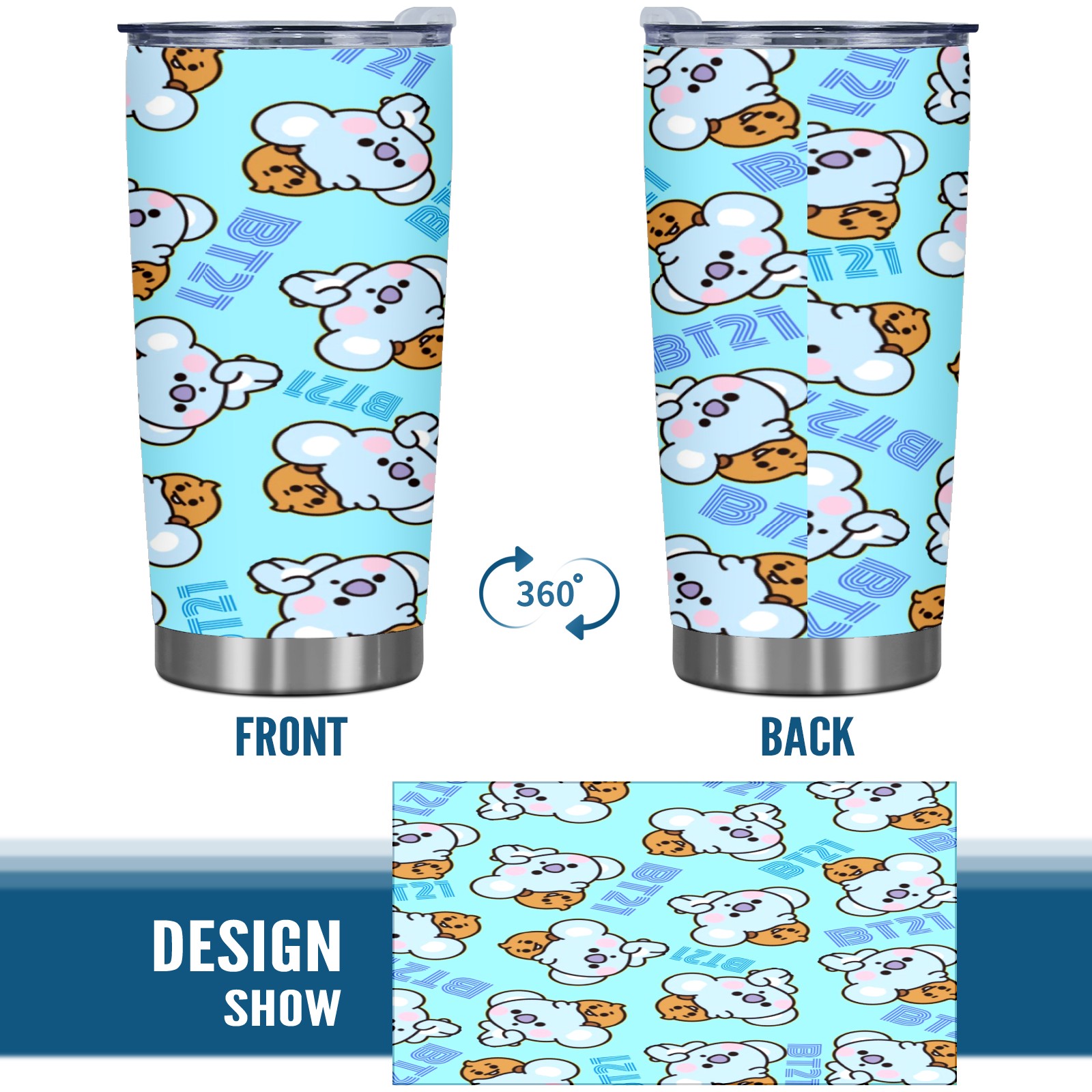 20 oz Tumbler Bt21 Koya Bts Stainless Steel Insulated Tumbler with Lid Double Wall Vacuum Insulated Travel Mug Cup for Coffee Ice Hot Drinks