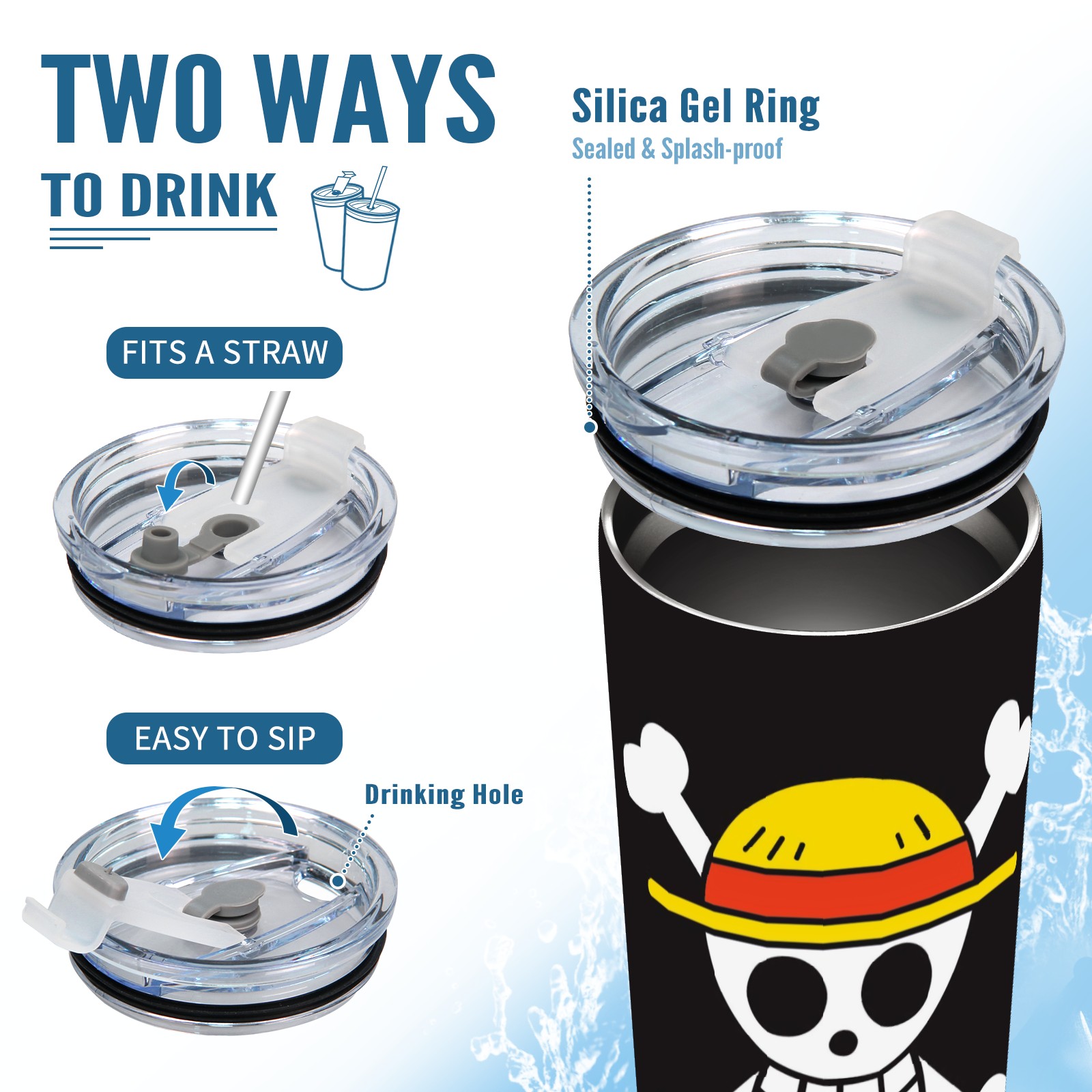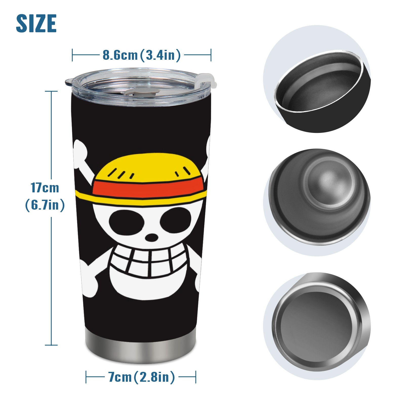 20 oz Tumbler One Piece Luffy Anime Stainless Steel Insulated Tumbler with Lid Double Wall Vacuum Insulated Travel Mug Cup for Coffee Ice Hot Drinks