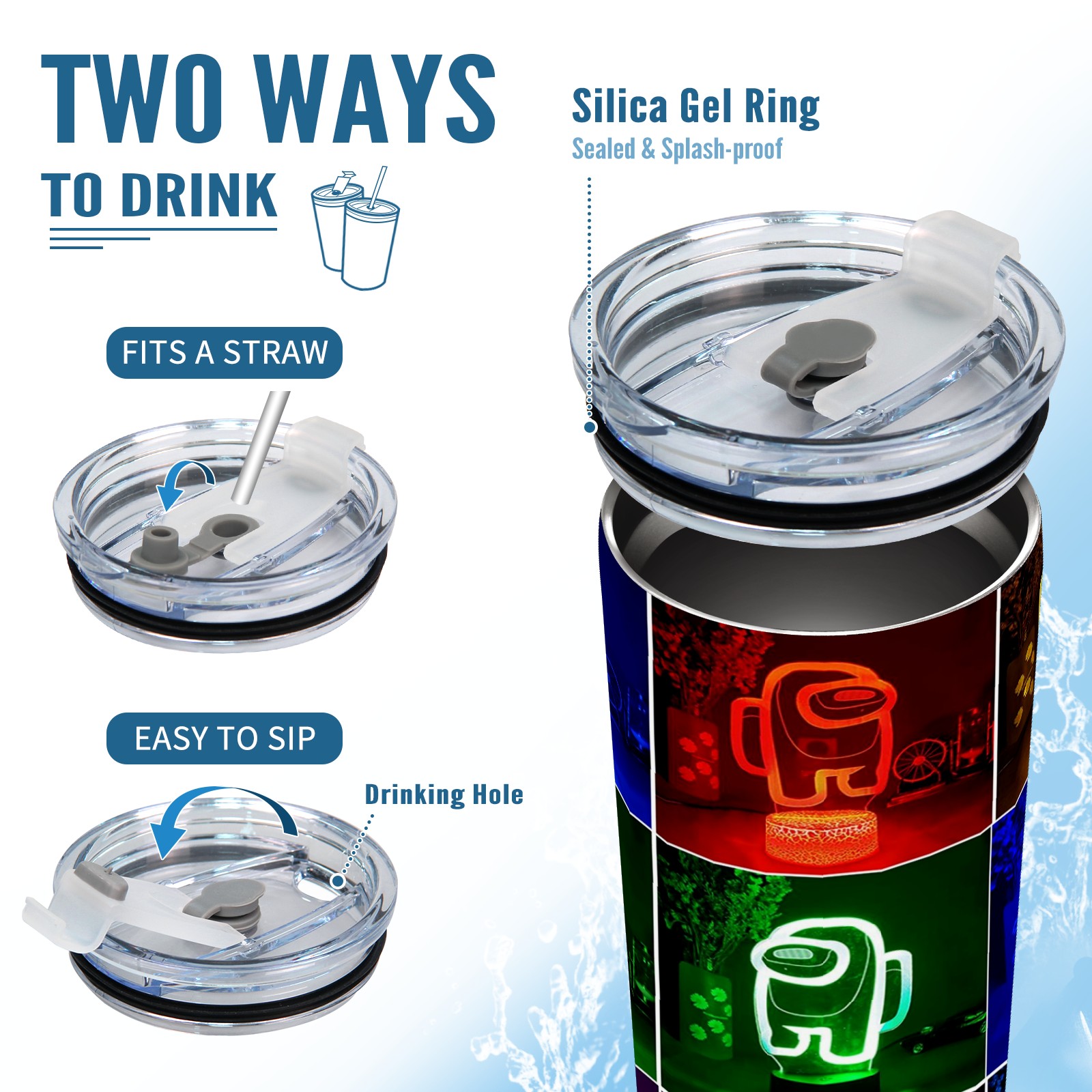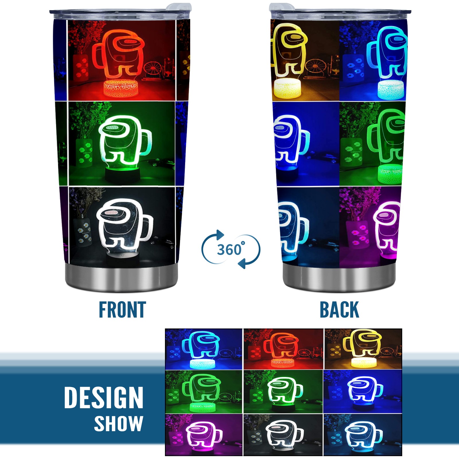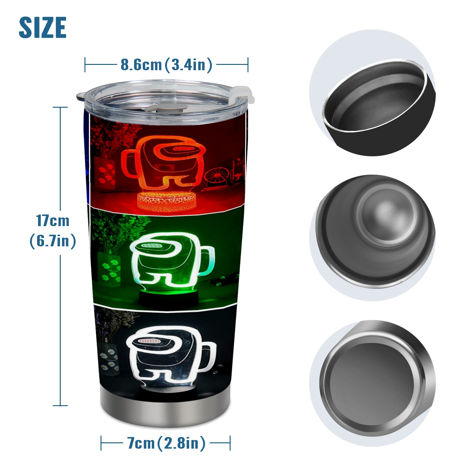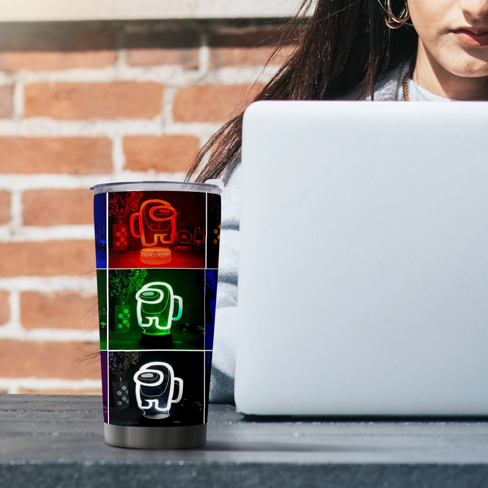20 oz Tumbler Neon Among Us Vedio Game Stainless Steel Insulated Tumbler with Lid Double Wall Vacuum Insulated Travel Mug Cup for Coffee Ice Hot Drinks
