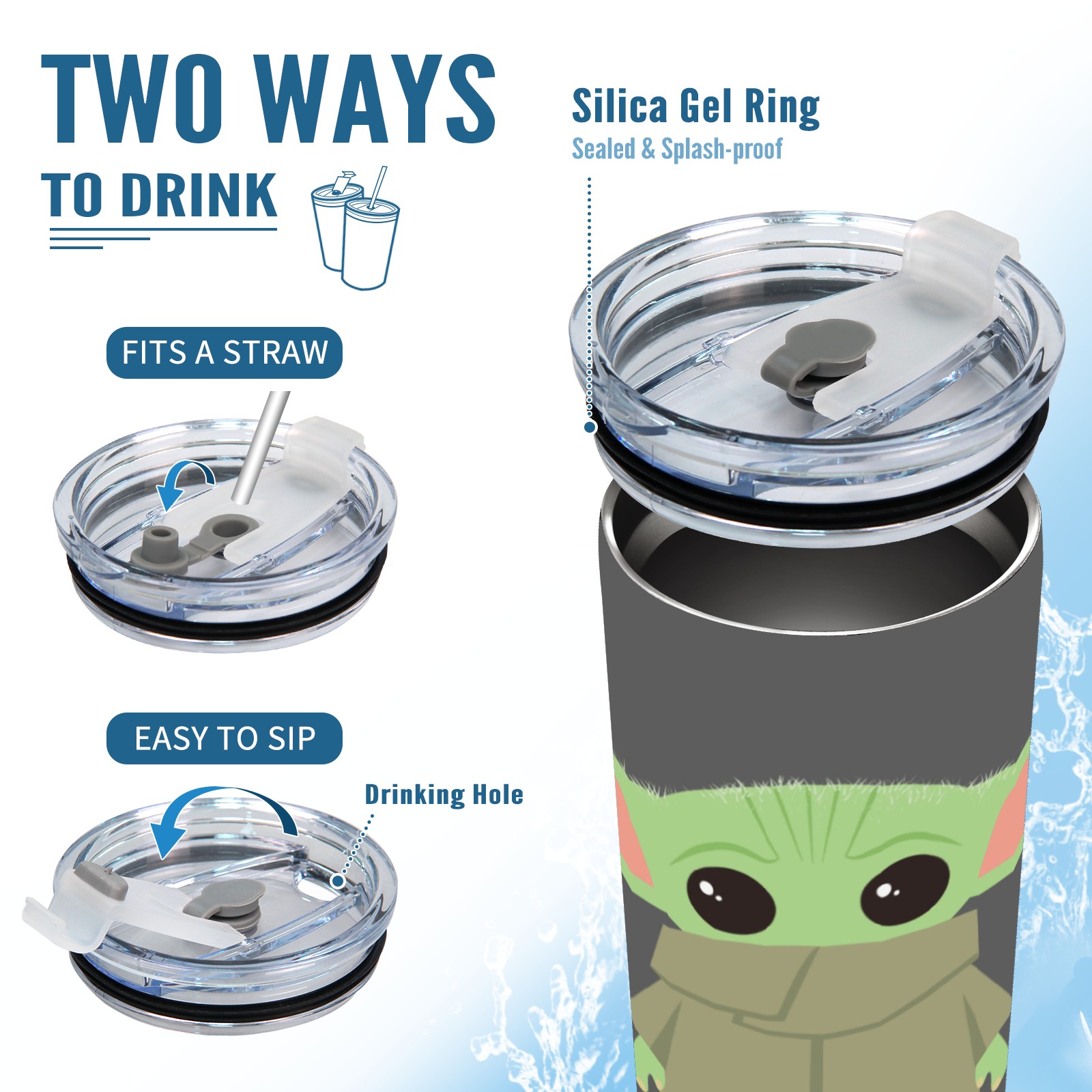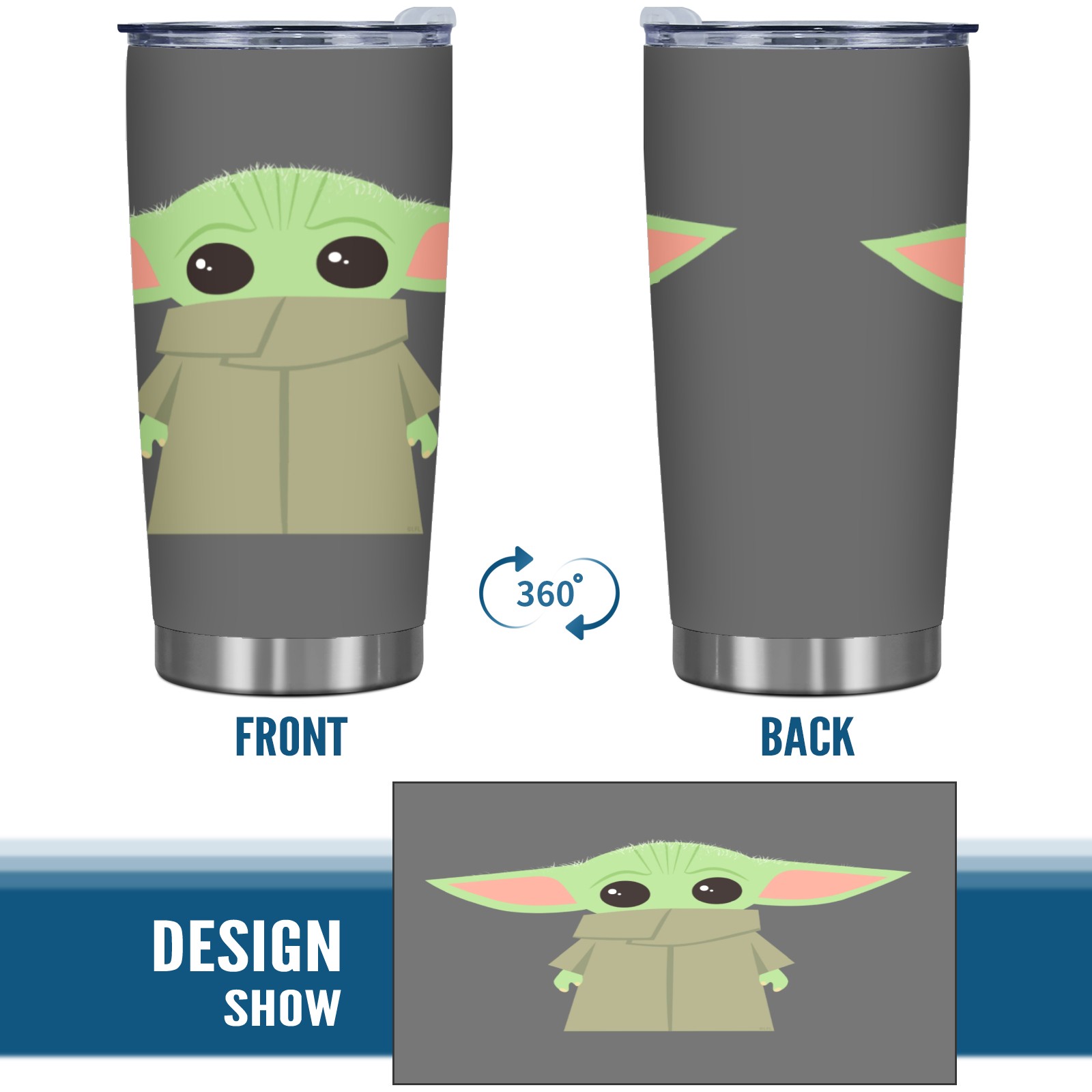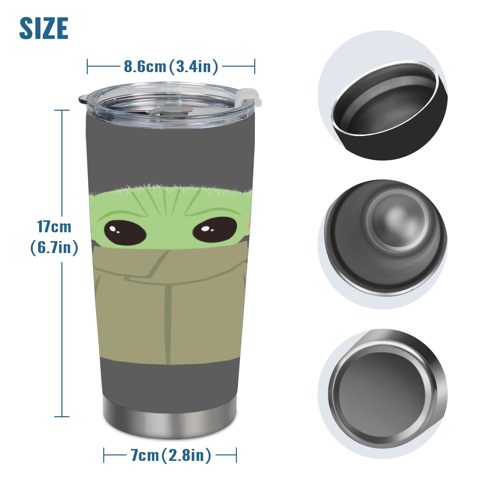 20 oz Tumbler Funny Yoda Baby Stainless Steel Insulated Tumbler with Lid Double Wall Vacuum Insulated Travel Mug Cup for Coffee Ice Hot Drinks