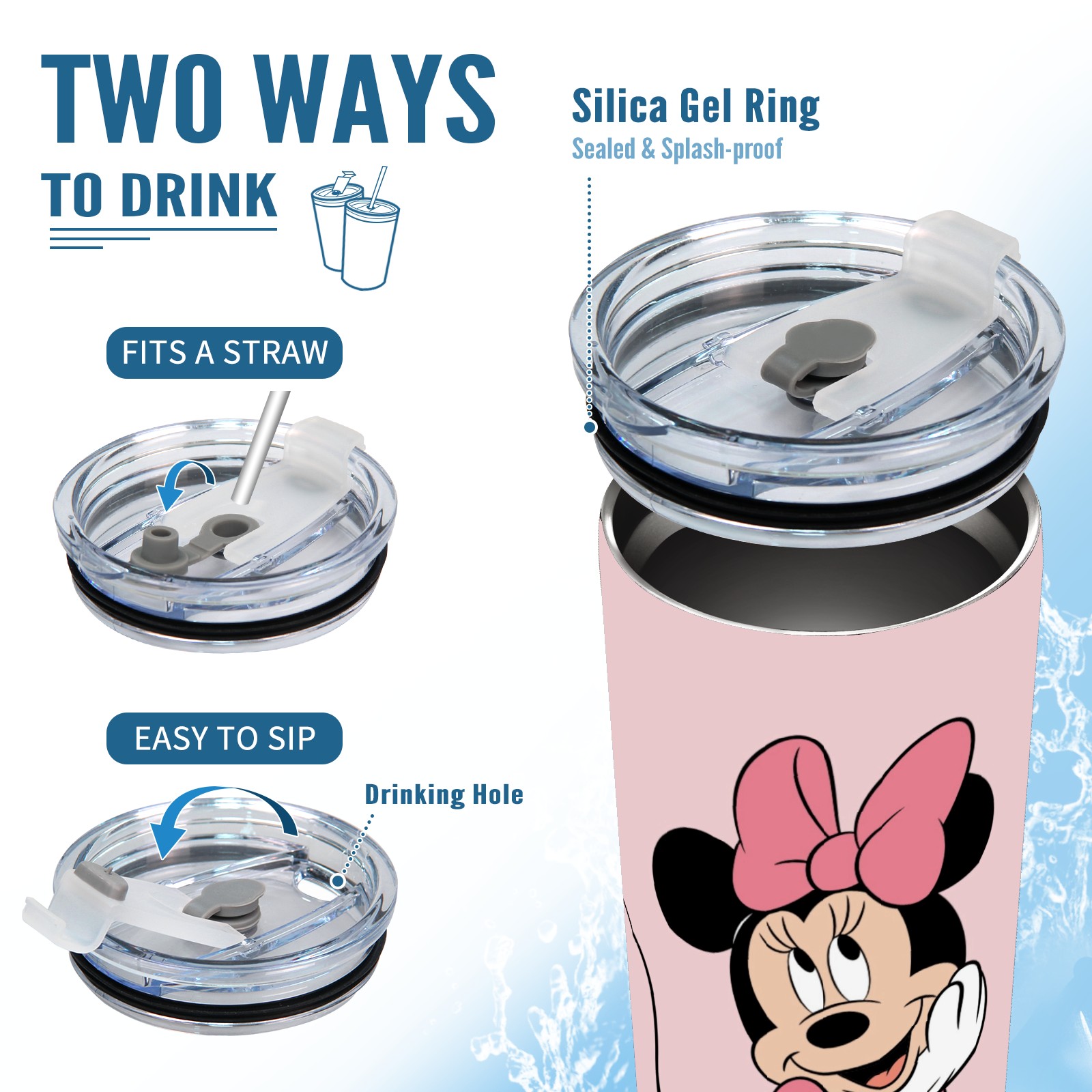 20 oz Tumbler Pink Minnie Mouse Stainless Steel Insulated Tumbler with Lid Double Wall Vacuum Insulated Travel Mug Cup for Coffee Ice Hot Drinks