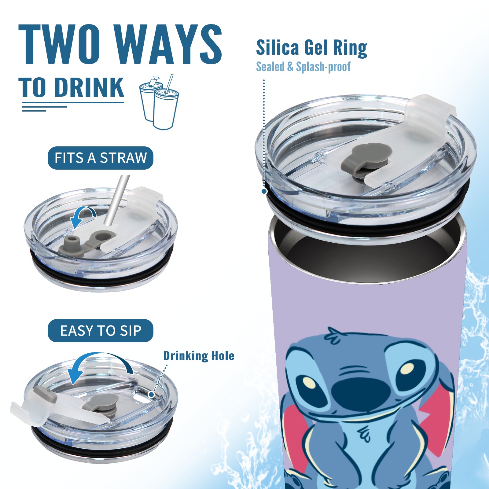 20 oz Tumbler Lilo Stich Stitch Purple Background Stainless Steel Insulated Tumbler with Lid Double Wall Vacuum Insulated Travel Mug Cup for Coffee Ice Hot Drinks