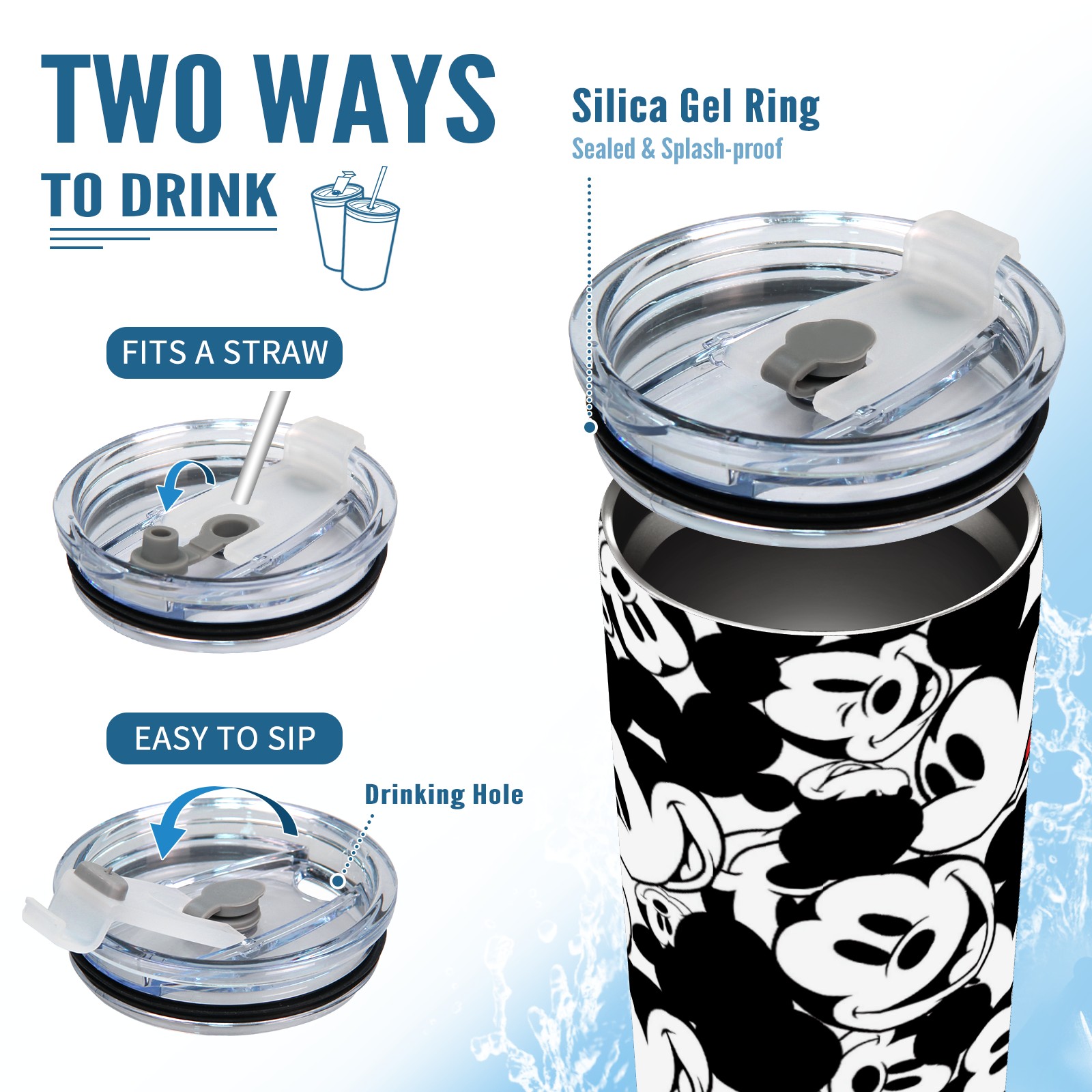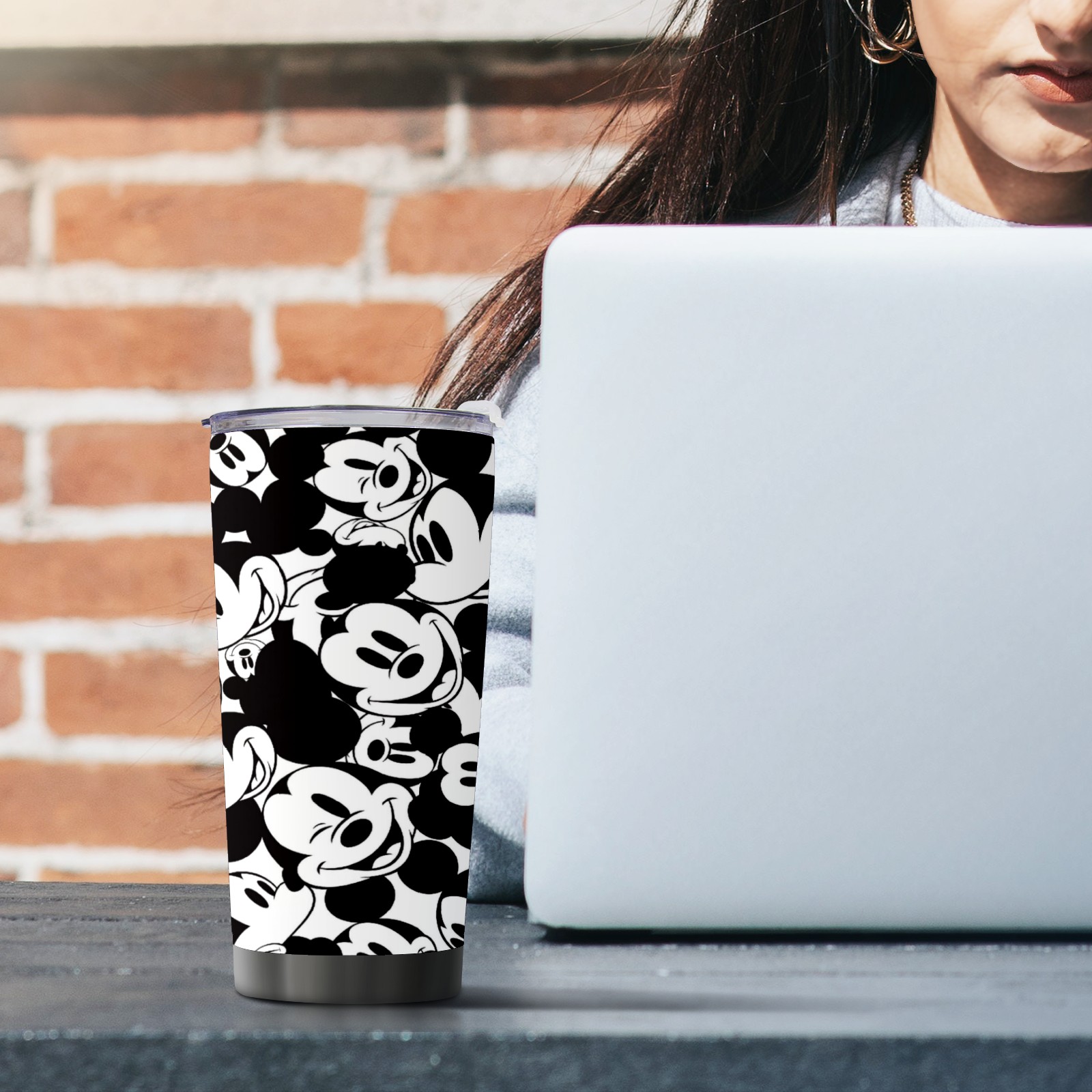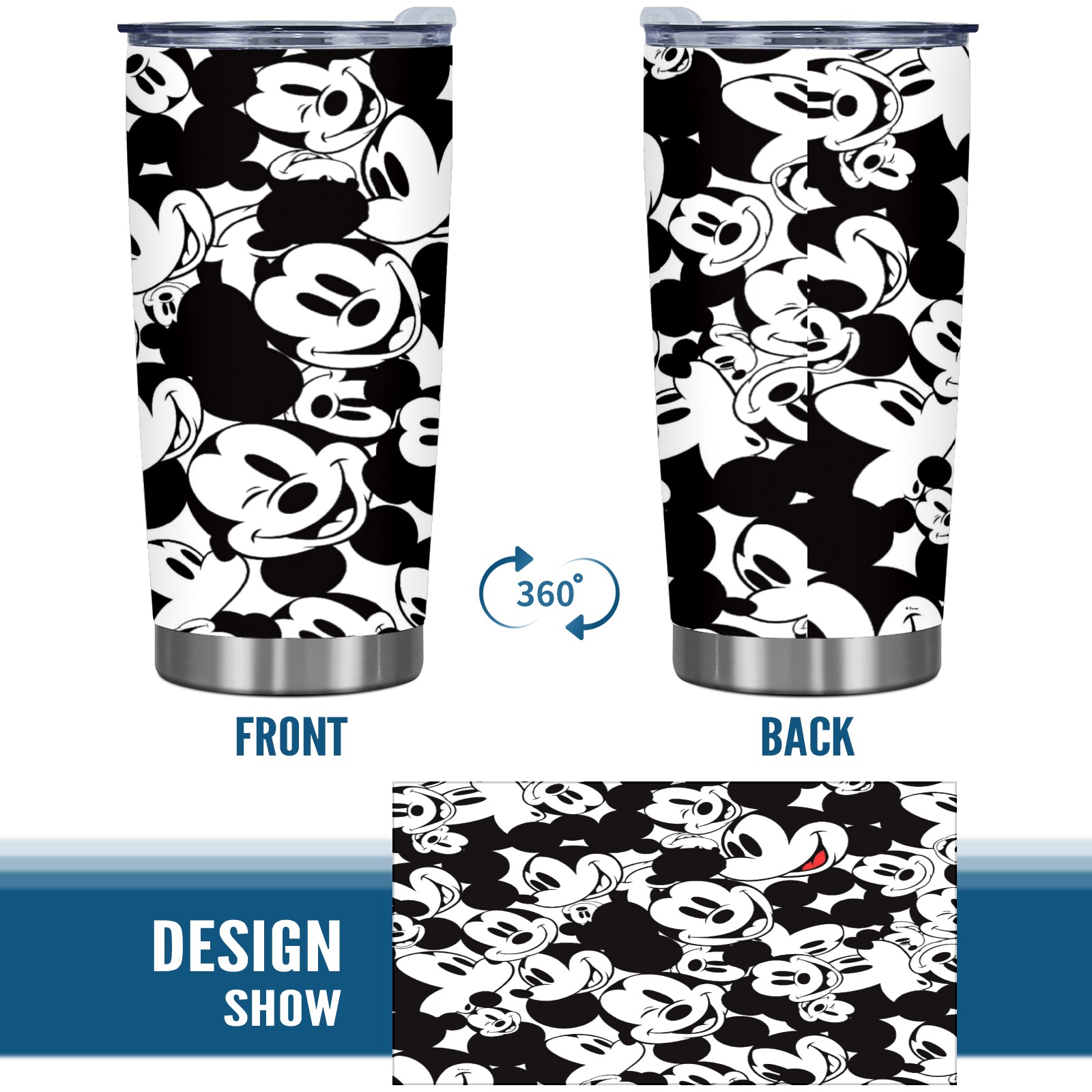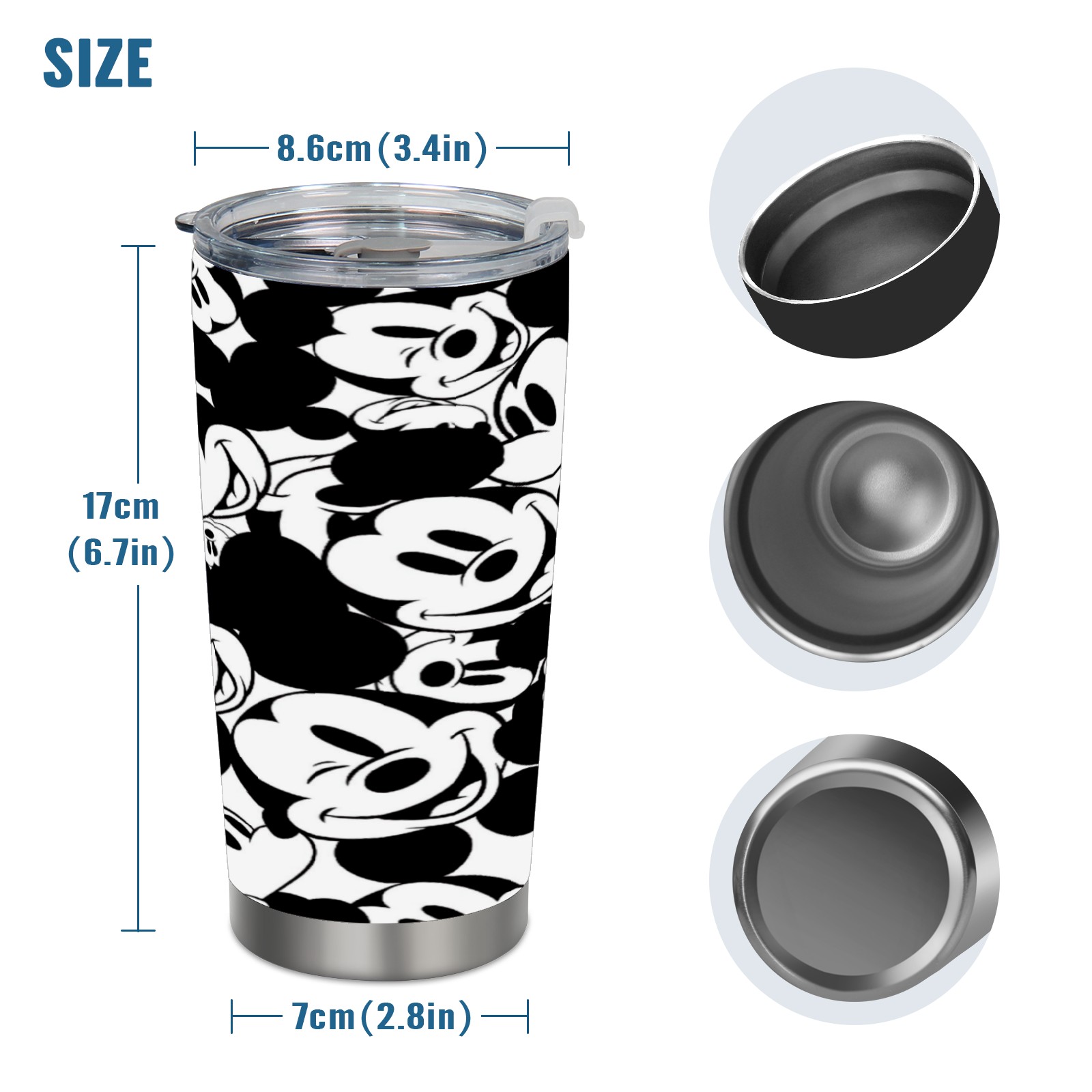 20 oz Tumbler Classic Black White Mickey Mouse Stainless Steel Insulated Tumbler with Lid Double Wall Vacuum Insulated Travel Mug Cup for Coffee Ice Hot Drinks