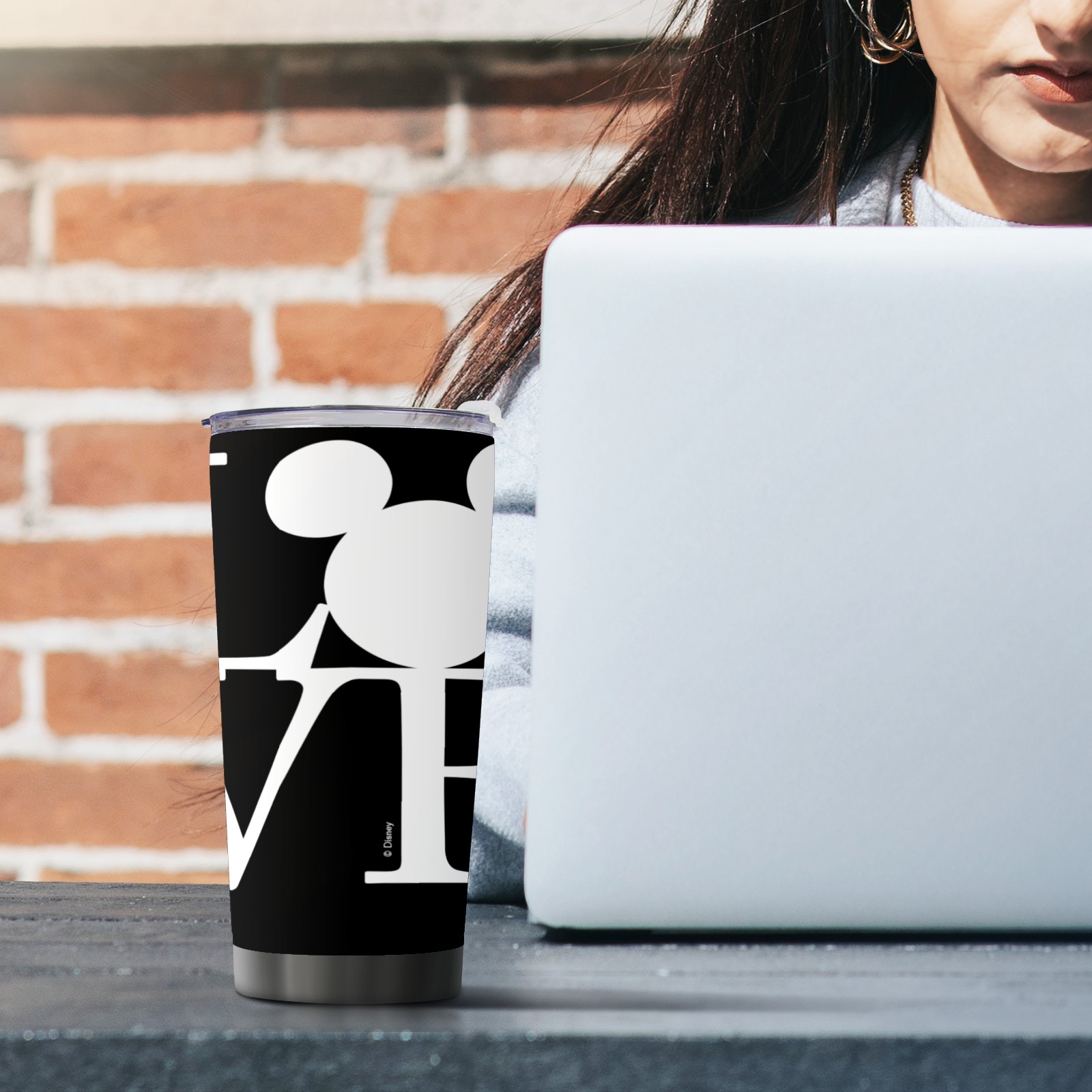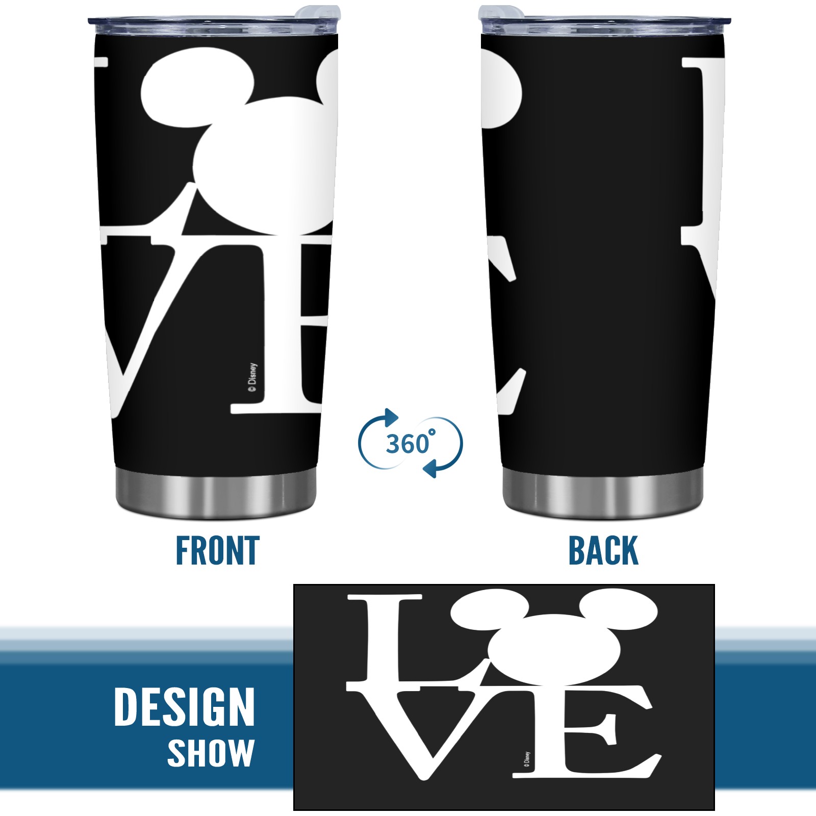 20 oz Tumbler Mickey Mouse LOVE Valentine's Day Black Stainless Steel Insulated Tumbler with Lid Double Wall Vacuum Insulated Travel Mug Cup for Coffee Ice Hot Drinks