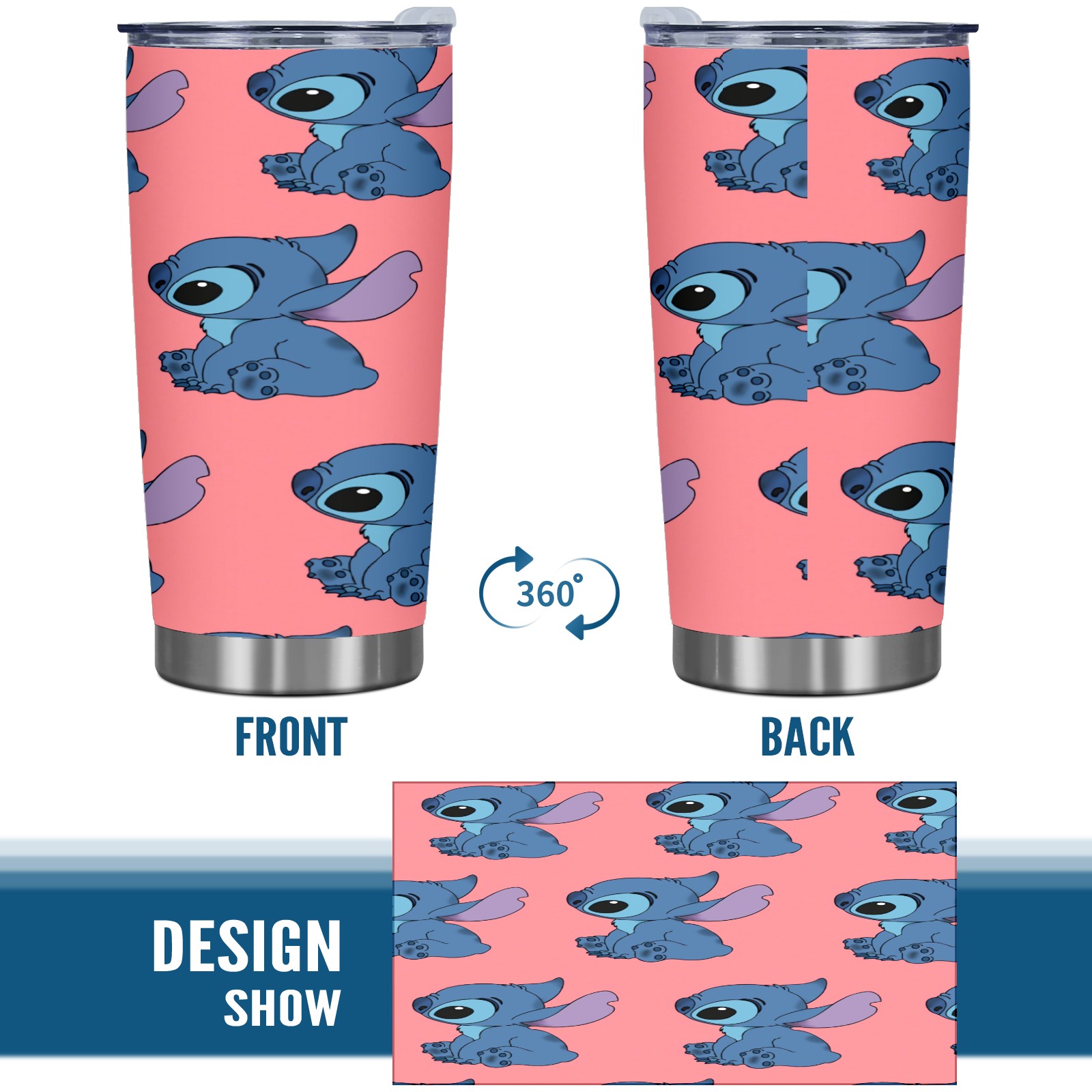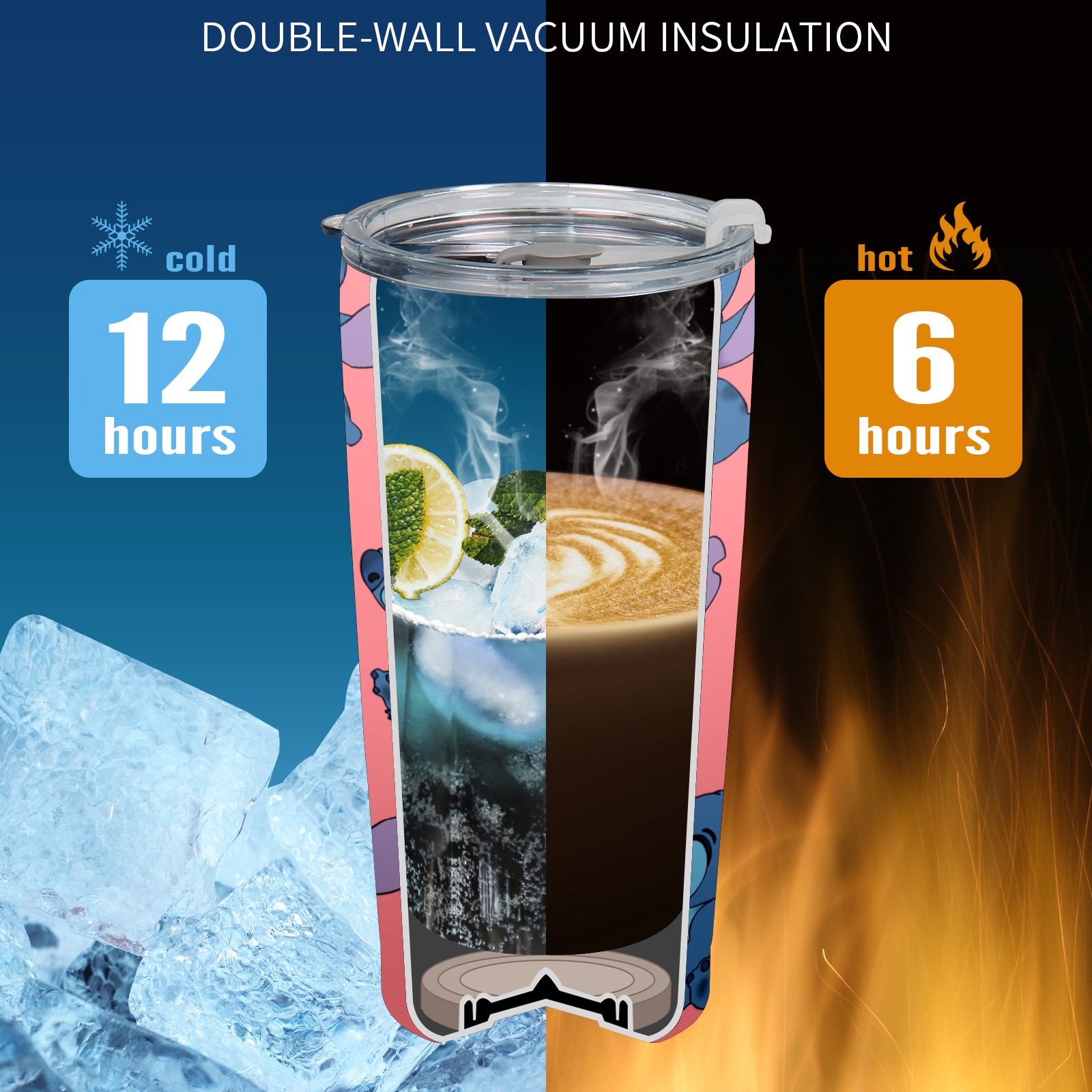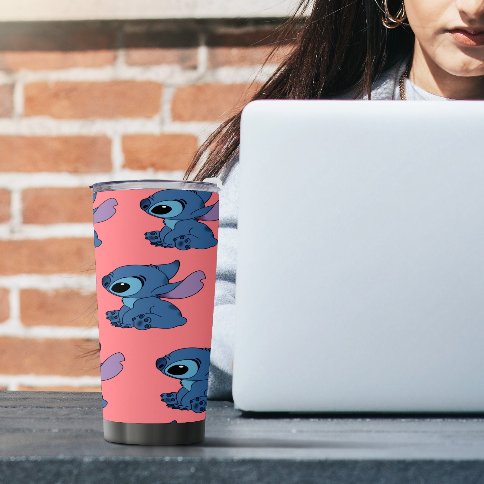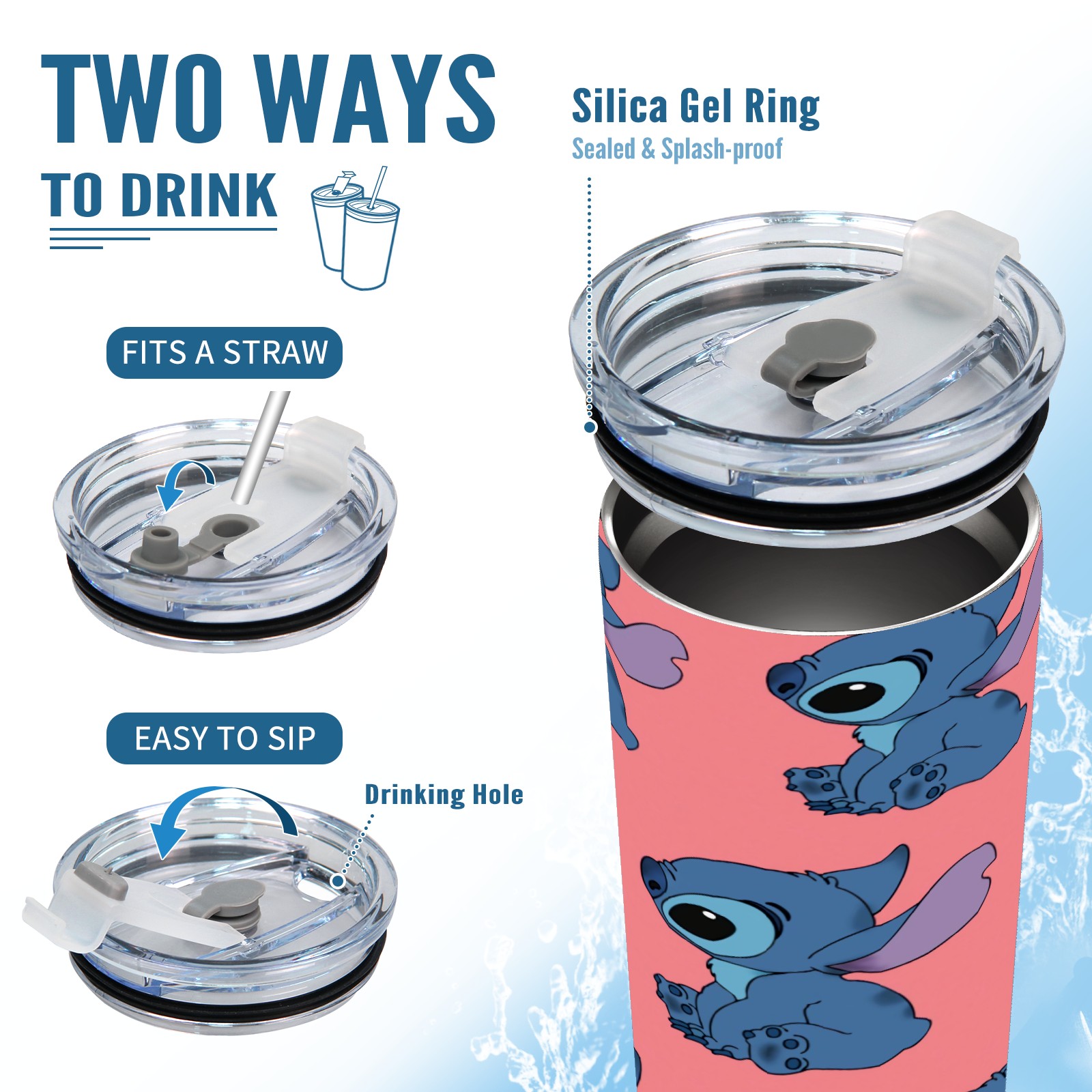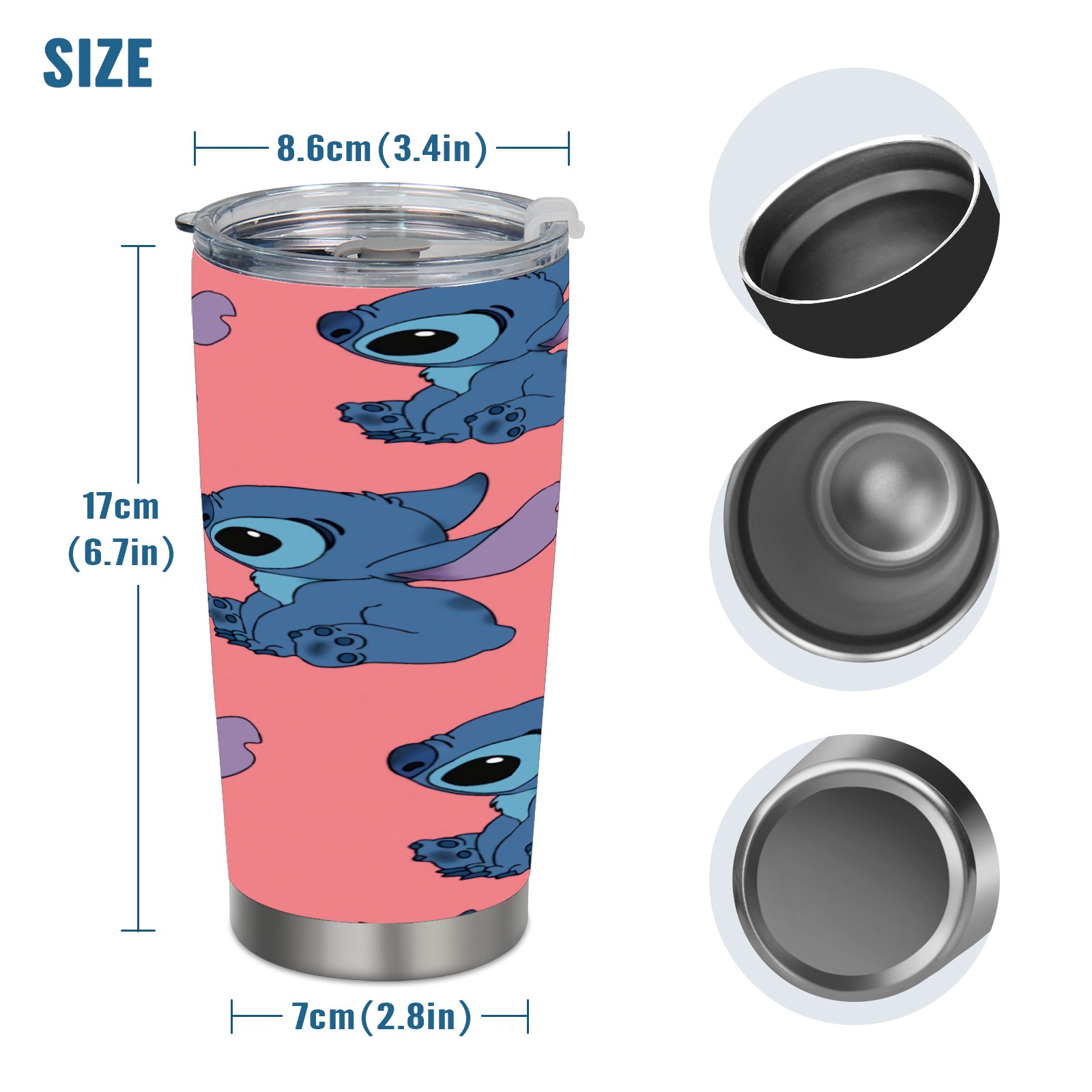 20 oz Tumbler Cute Blue Lilo Stitch Stainless Steel Insulated Tumbler with Lid Double Wall Vacuum Insulated Travel Mug Cup for Coffee Ice Hot Drinks