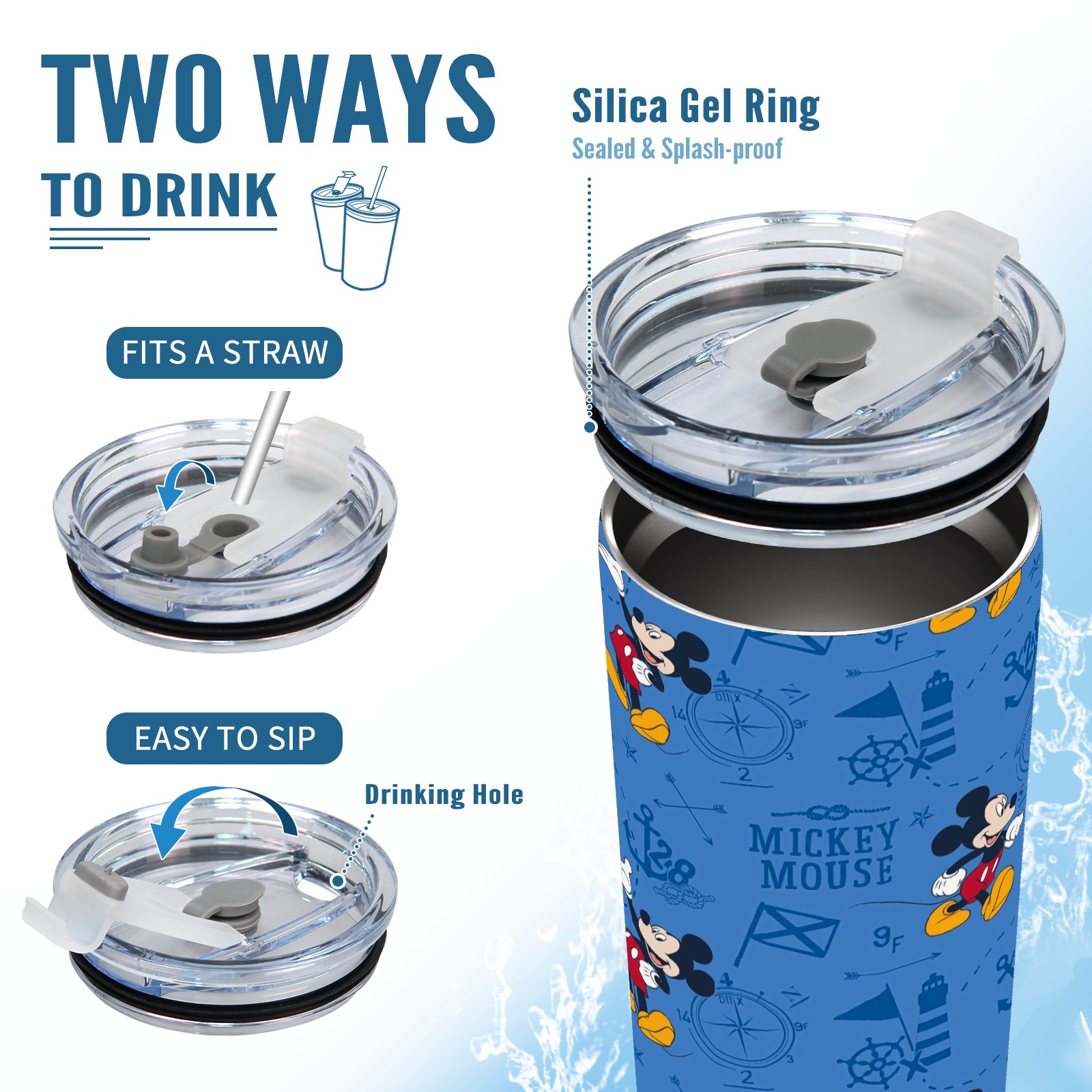 20 oz Tumbler Mickey Mouse Captain Stainless Steel Insulated Tumbler with Lid Double Wall Vacuum Insulated Travel Mug Cup for Coffee Ice Hot Drinks