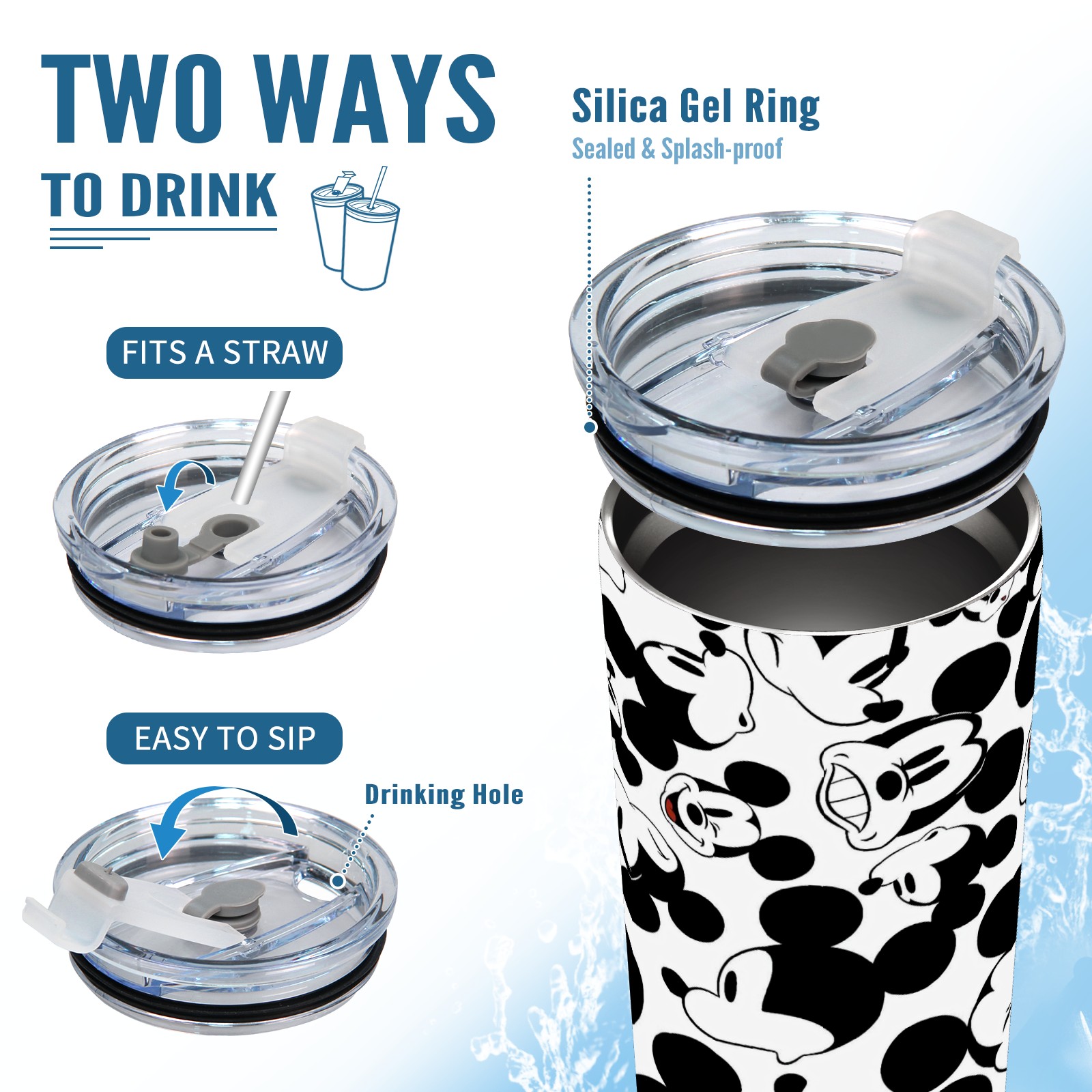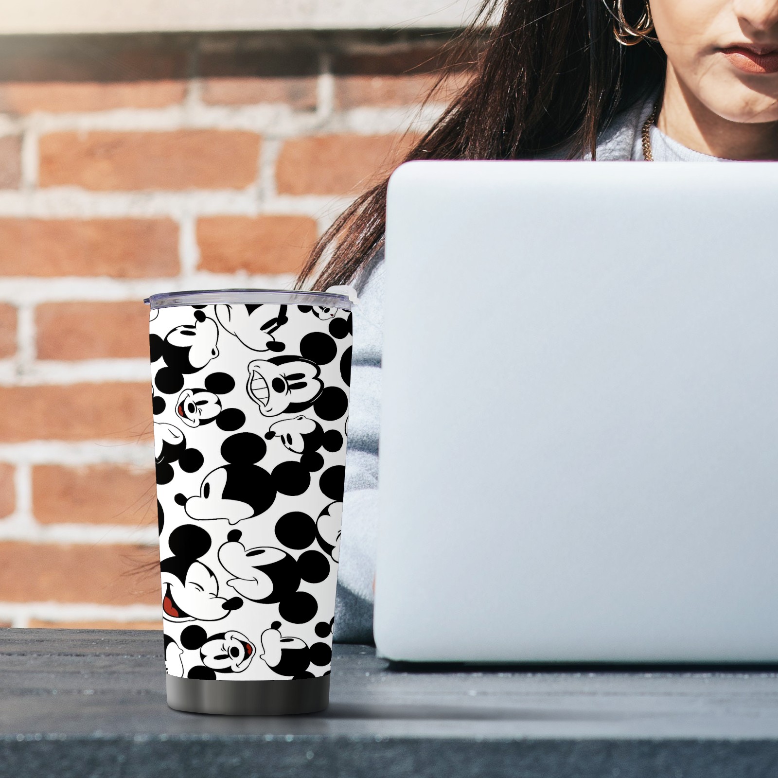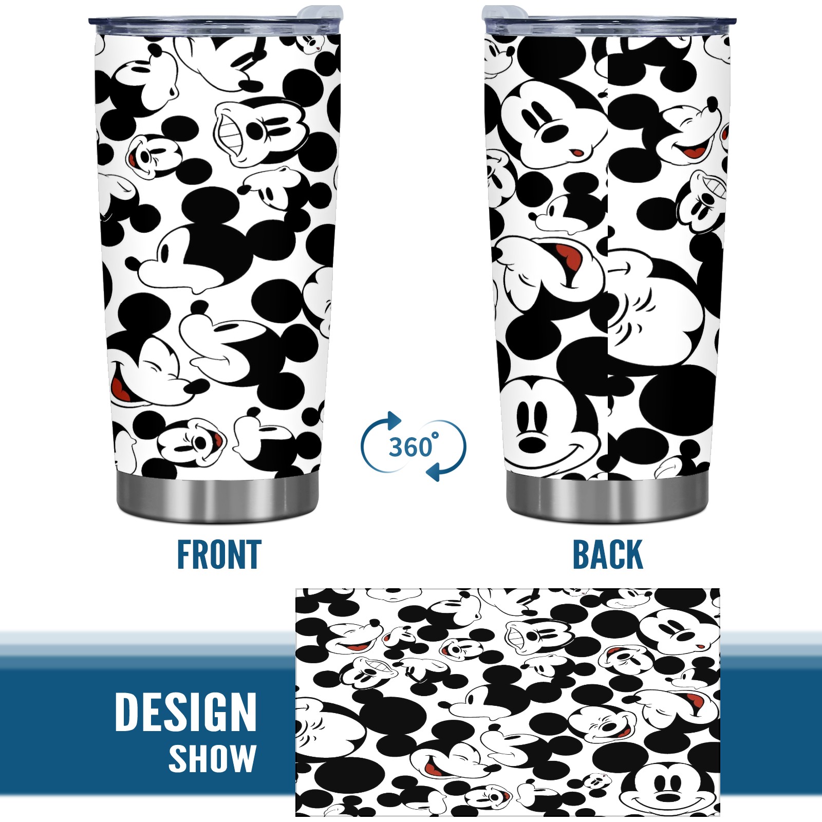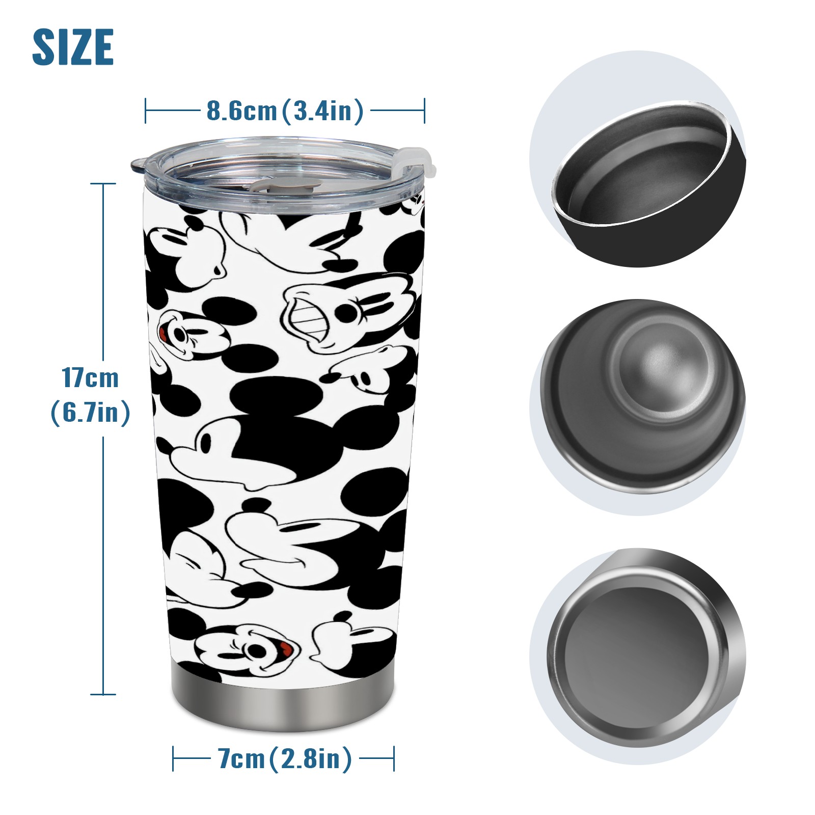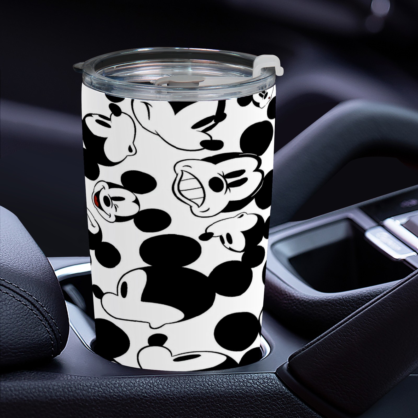 20 oz Tumbler Happy Mickey Mouse Black White Stainless Steel Insulated Tumbler with Lid Double Wall Vacuum Insulated Travel Mug Cup for Coffee Ice Hot Drinks
