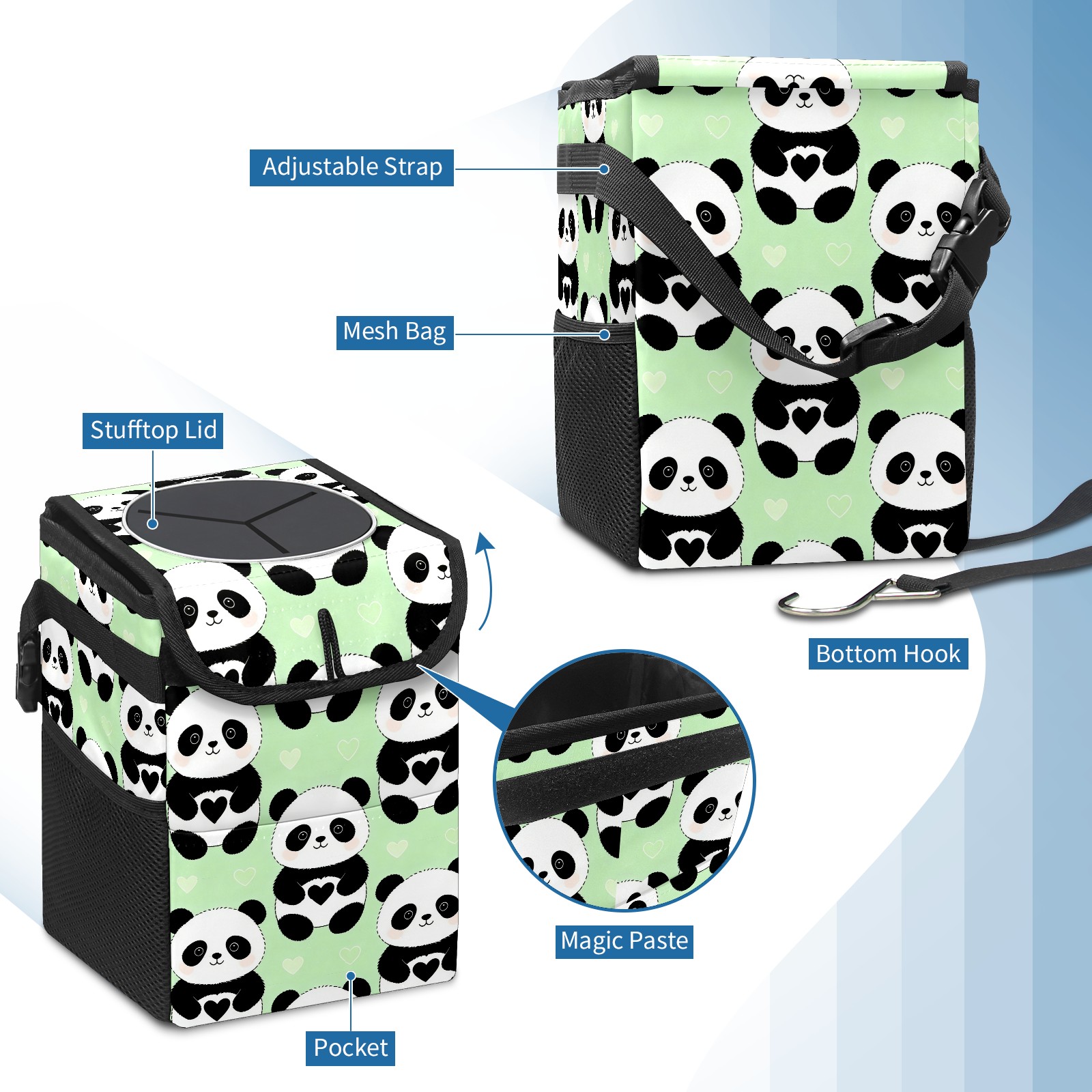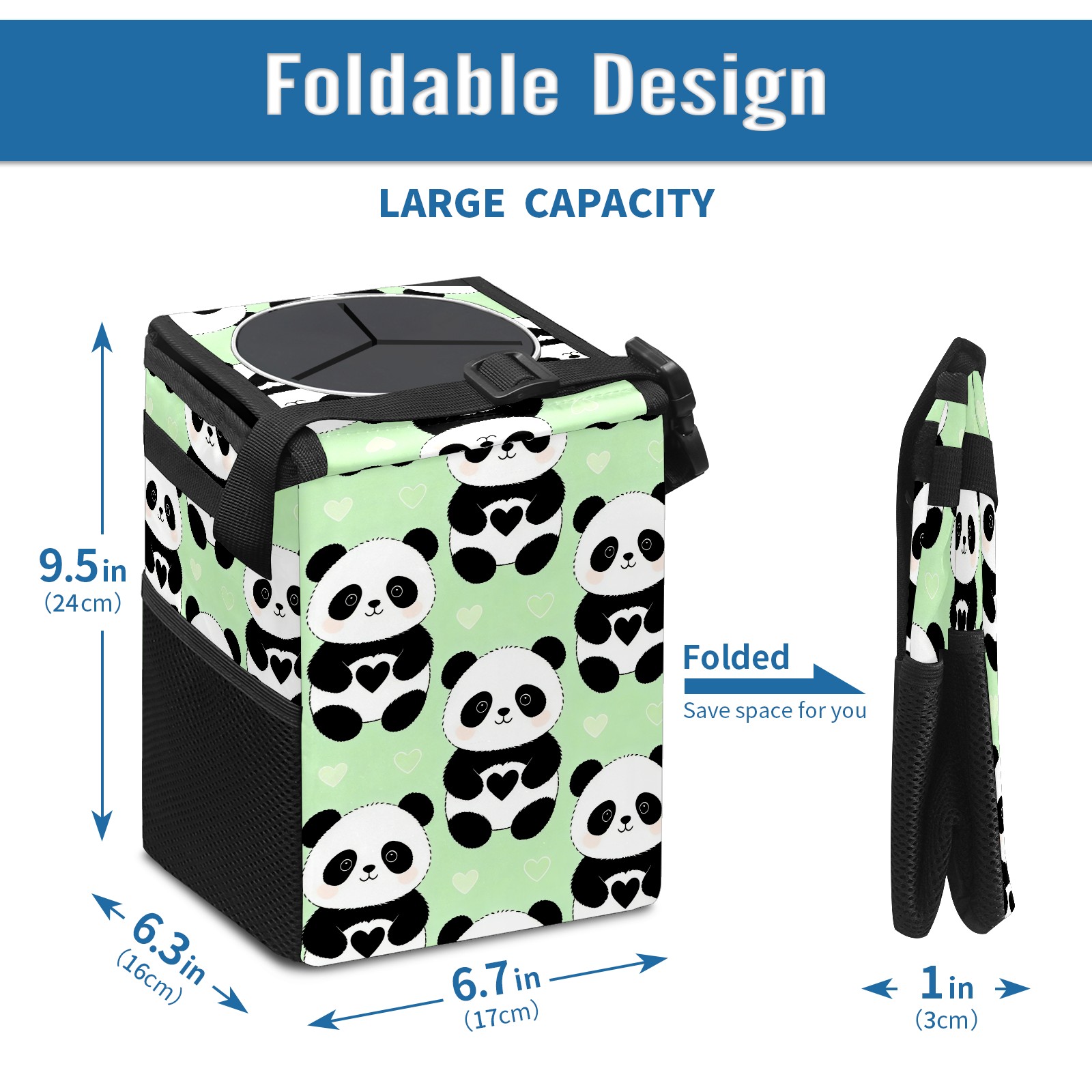 Car Garbage Can — Multi-functional, Lightweight Portable, Reusable Vehicle Trash Can, Waterproof with Sufficient Storage Capacity Loving Panda Green