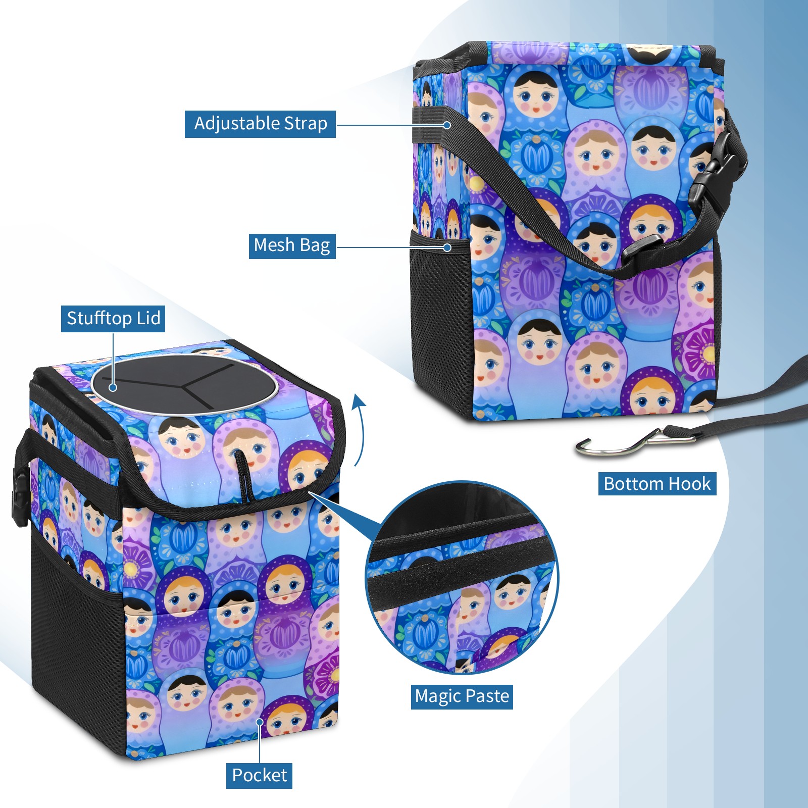 Car Garbage Can — Multi-functional, Lightweight Portable, Reusable Vehicle Trash Can, Waterproof with Sufficient Storage Capacity Dreamy Dolls Purple
