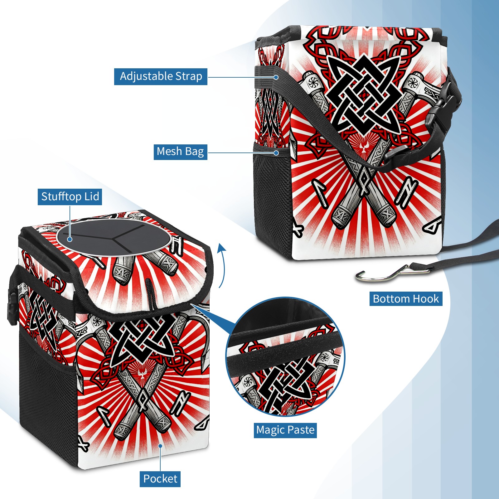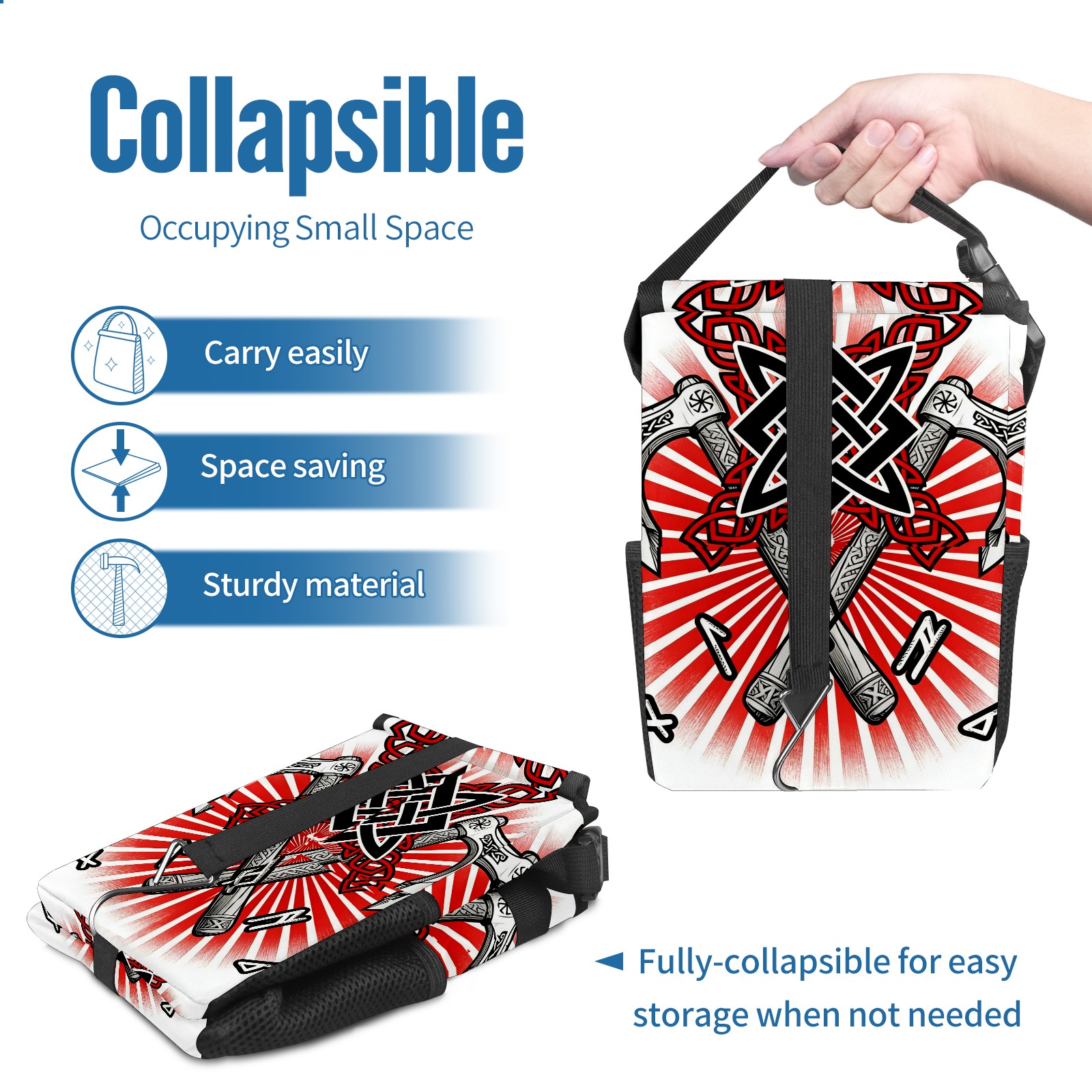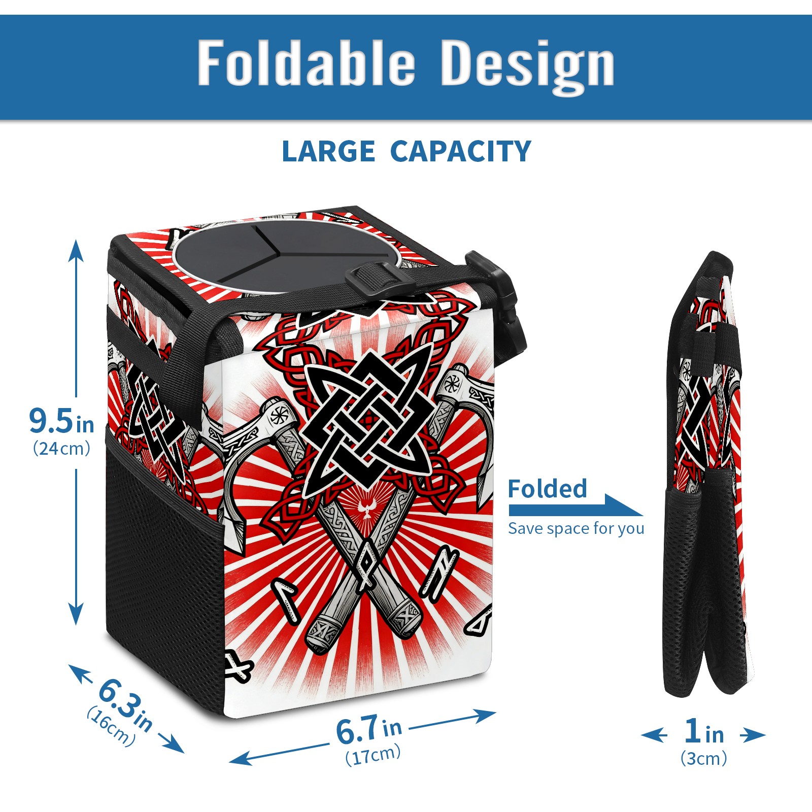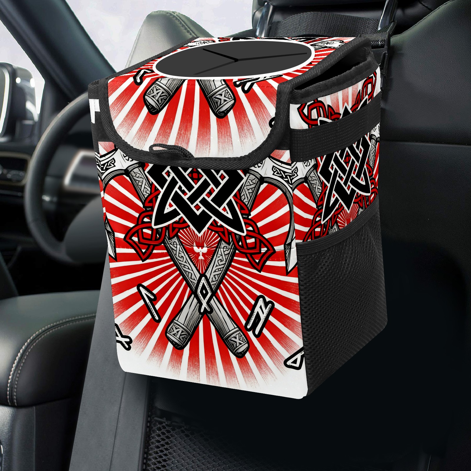 Car Garbage Can — Multi-functional, Lightweight Portable, Reusable Vehicle Trash Can, Waterproof with Sufficient Storage Capacity Cool Axes Red