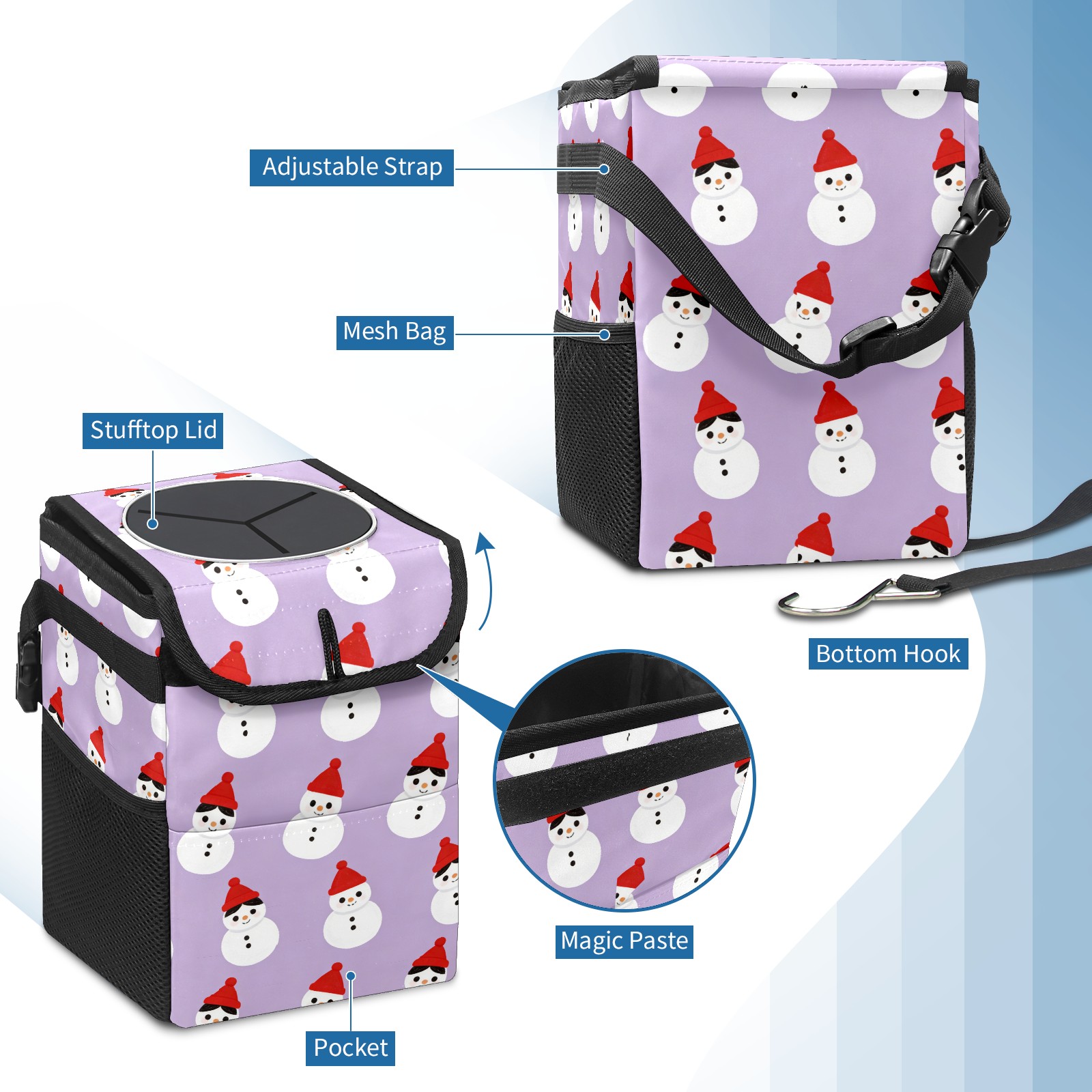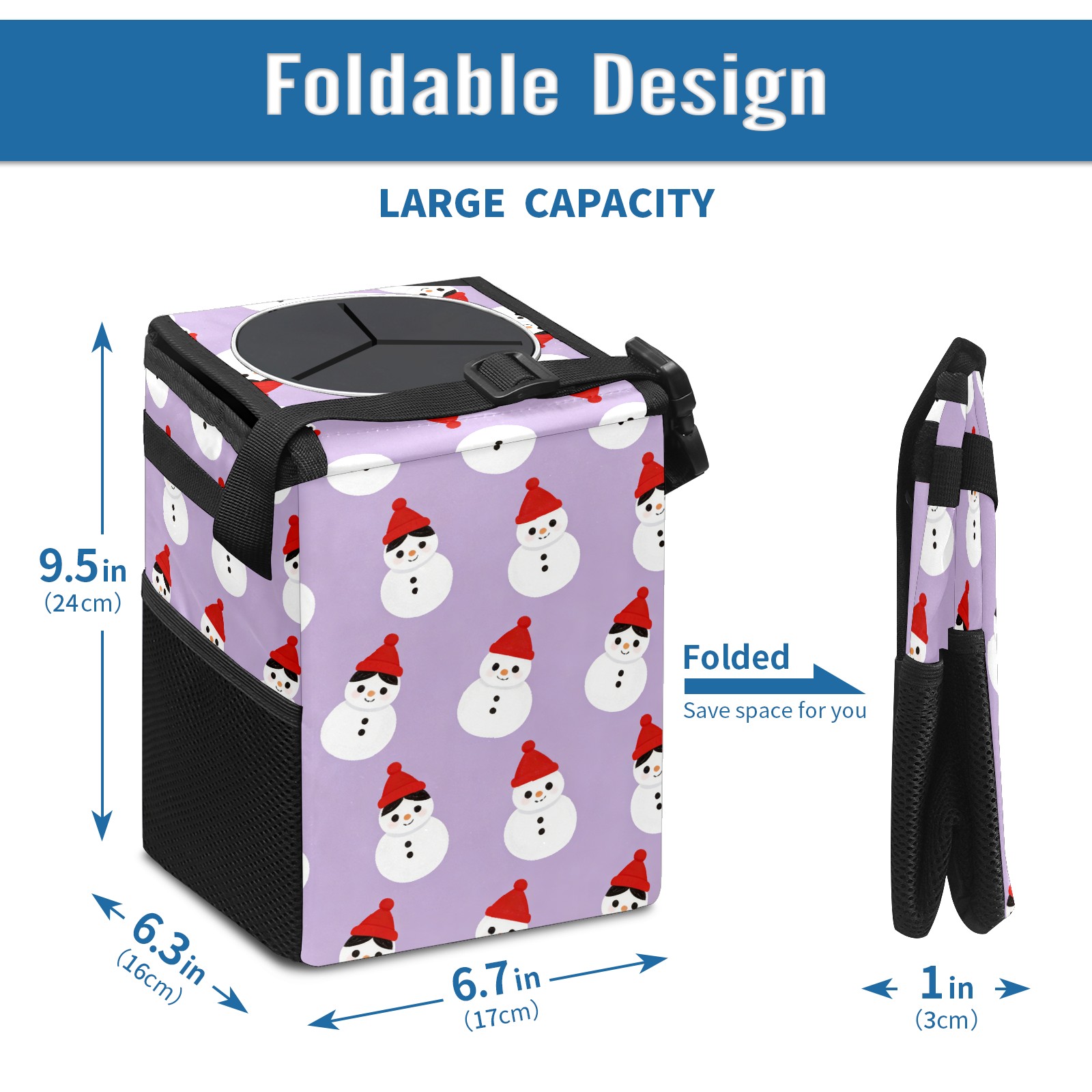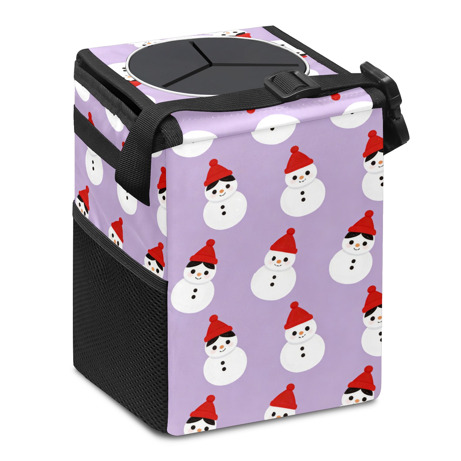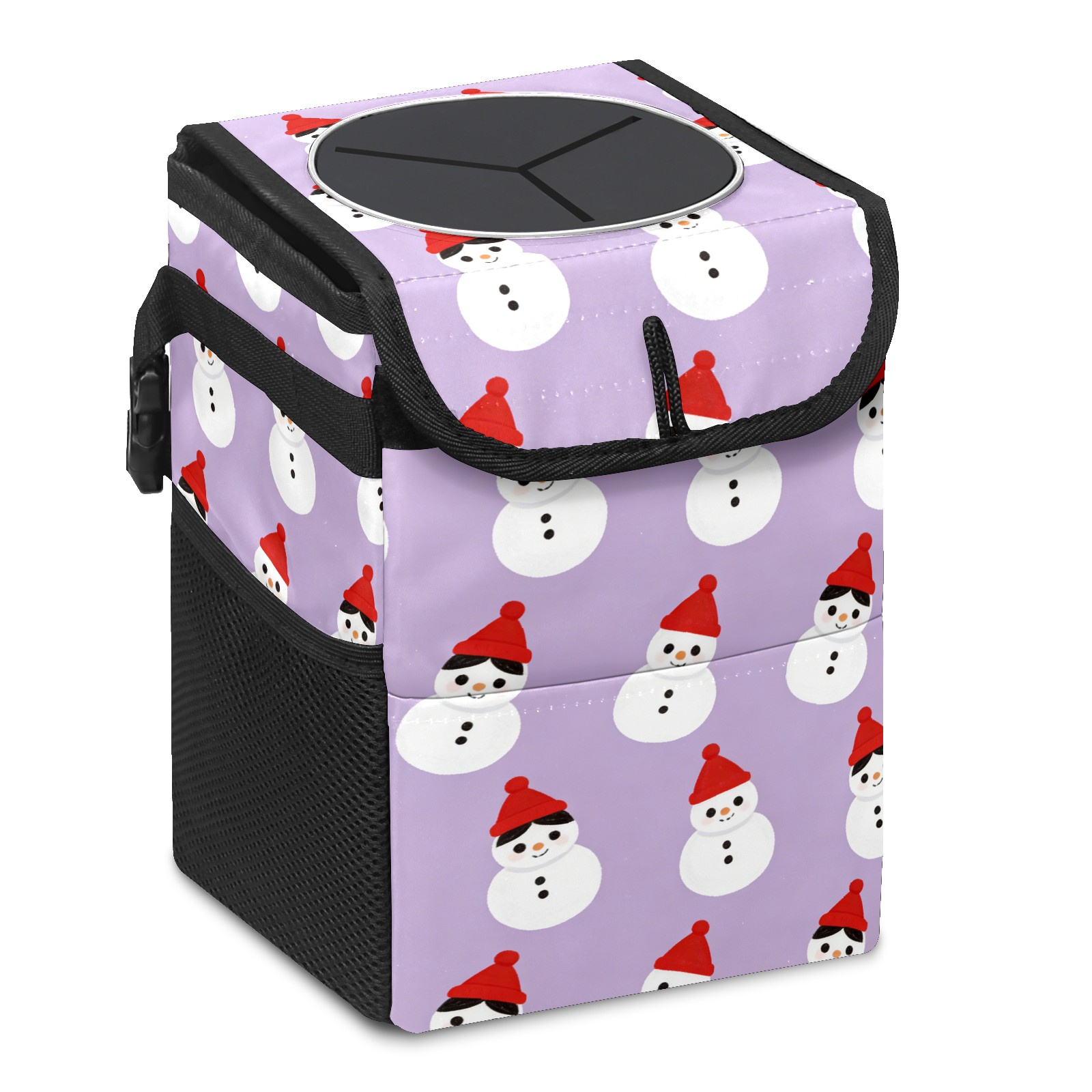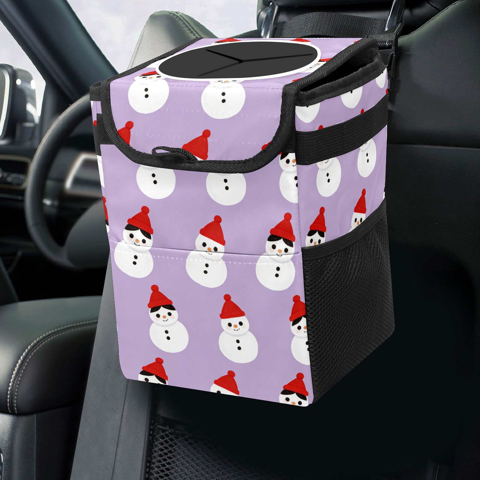 Car Garbage Can — Multi-functional, Lightweight Portable, Reusable Vehicle Trash Can, Waterproof with Sufficient Storage Capacity Cozy Snowmen Purple