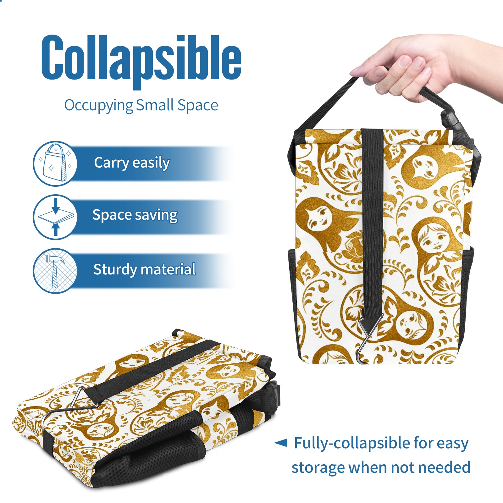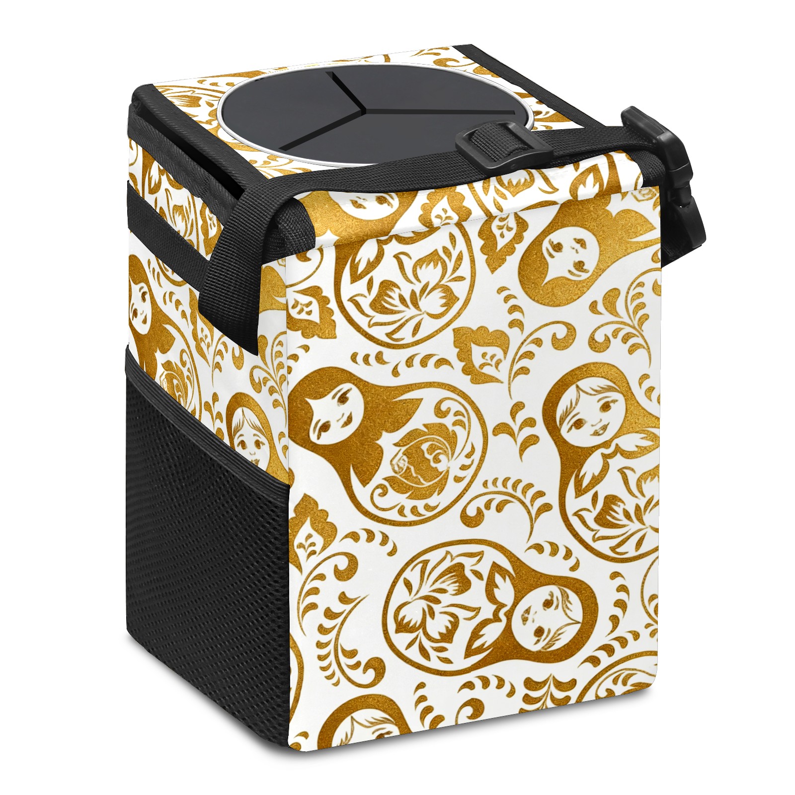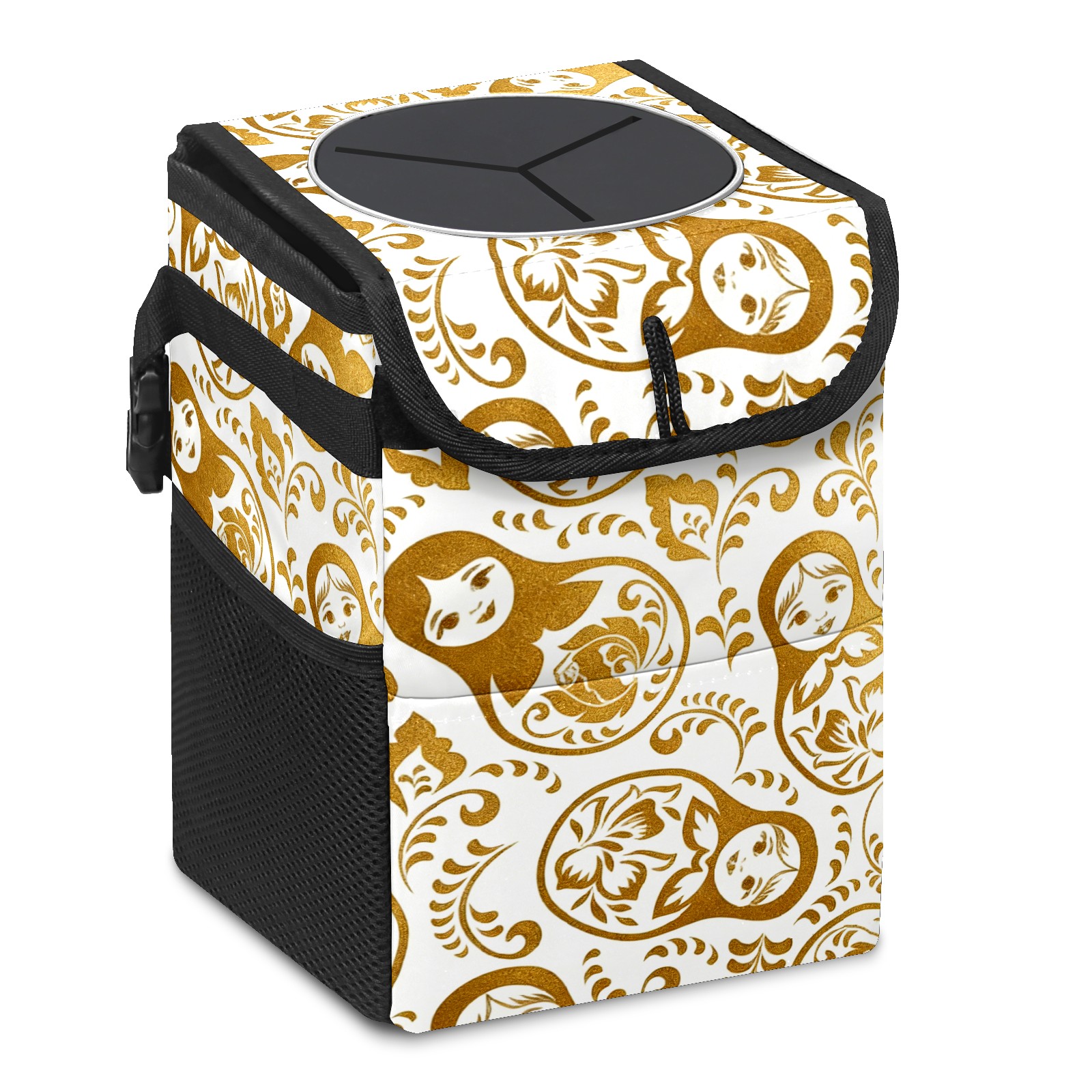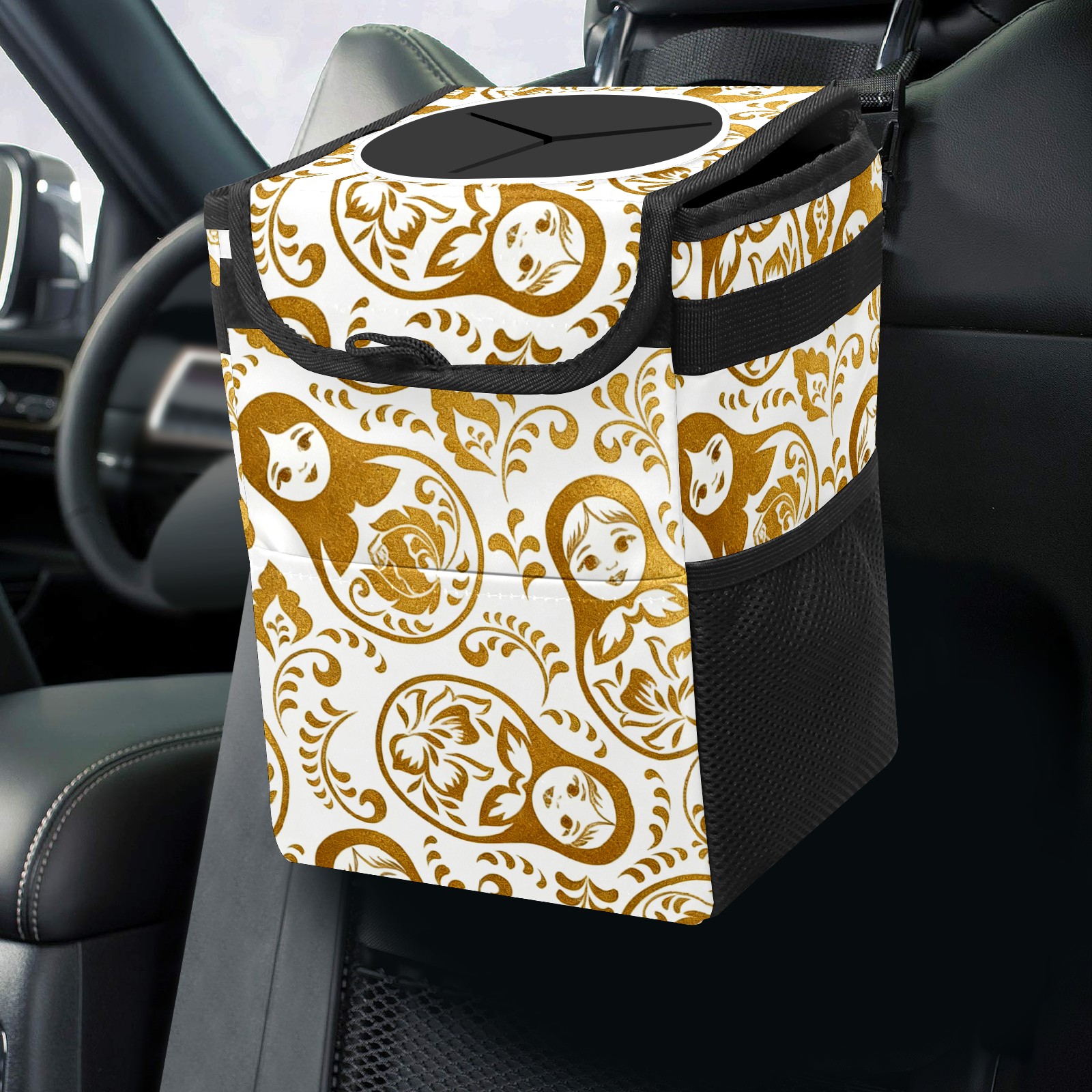 Car Garbage Can — Multi-functional, Lightweight Portable, Reusable Vehicle Trash Can, Waterproof with Sufficient Storage Capacity Golden Patterns Gold