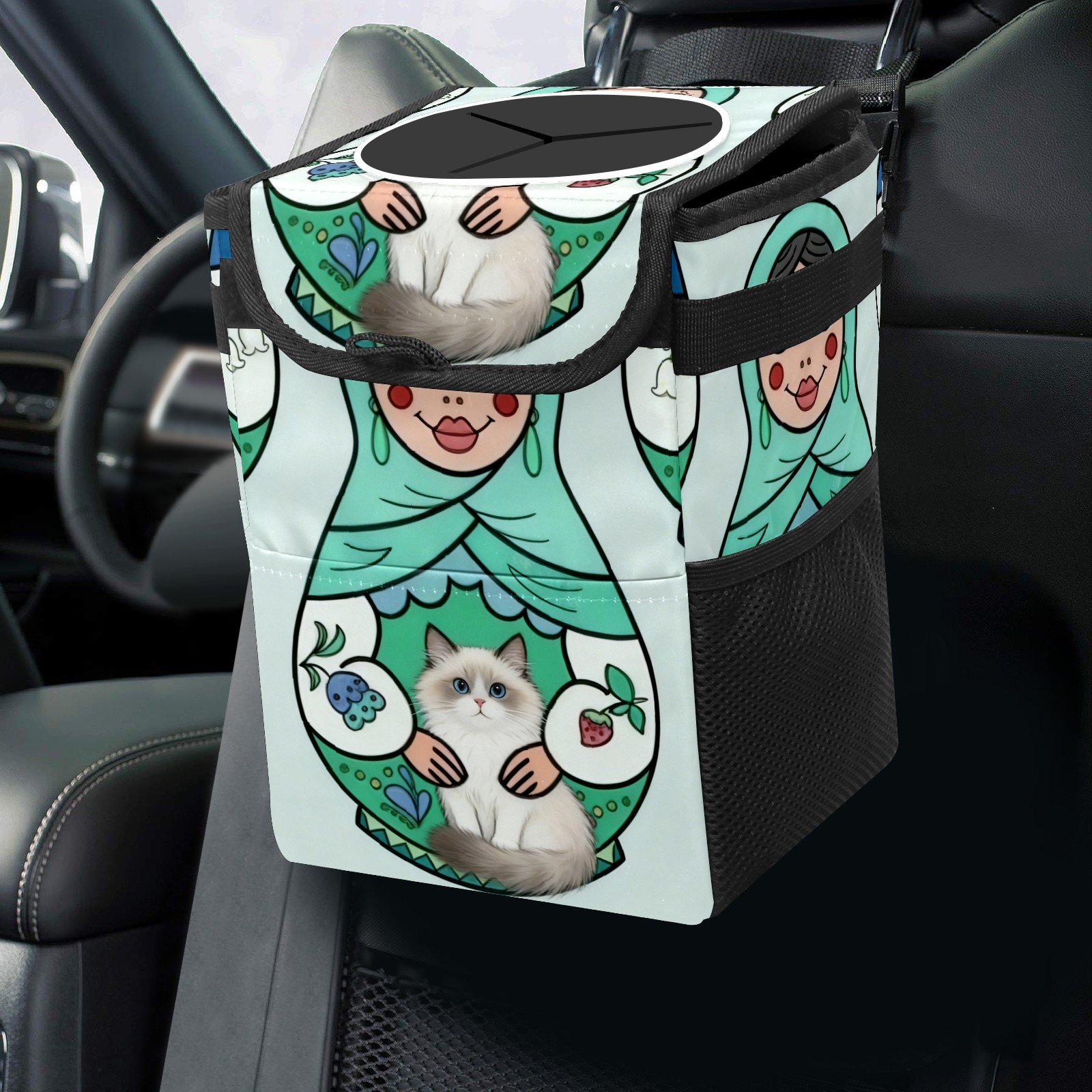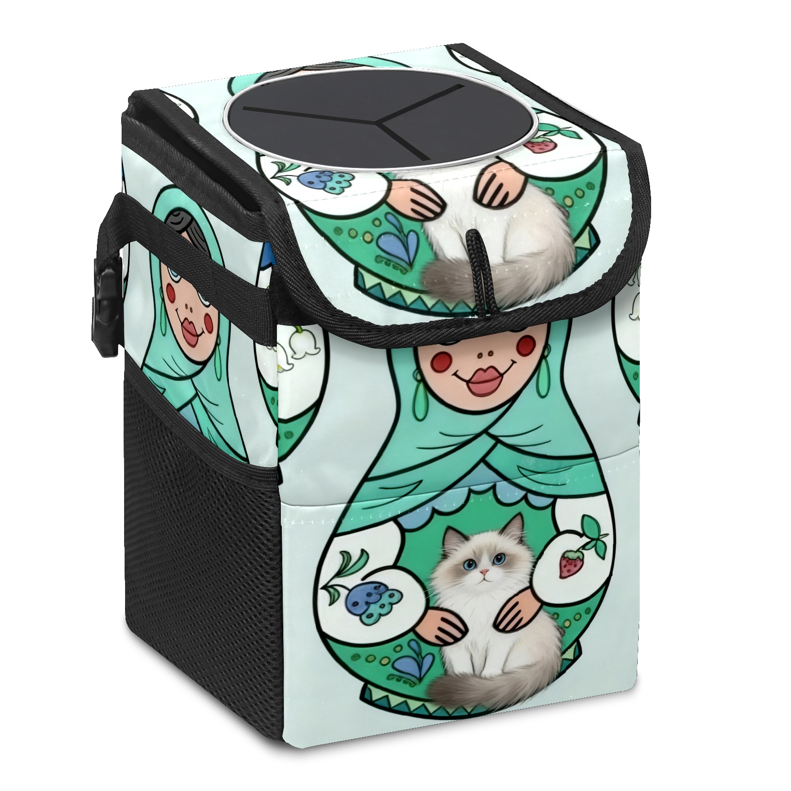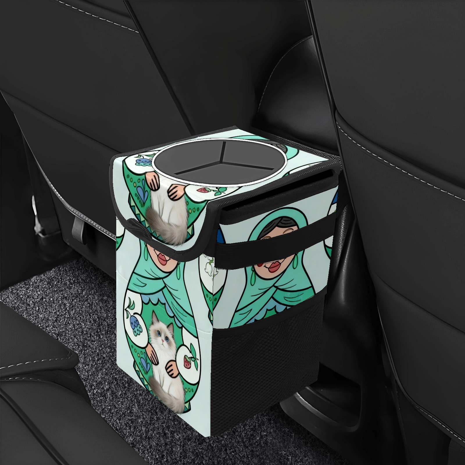 Car Garbage Can — Multi-functional, Lightweight Portable, Reusable Vehicle Trash Can, Waterproof with Sufficient Storage Capacity Cute Dolls Green