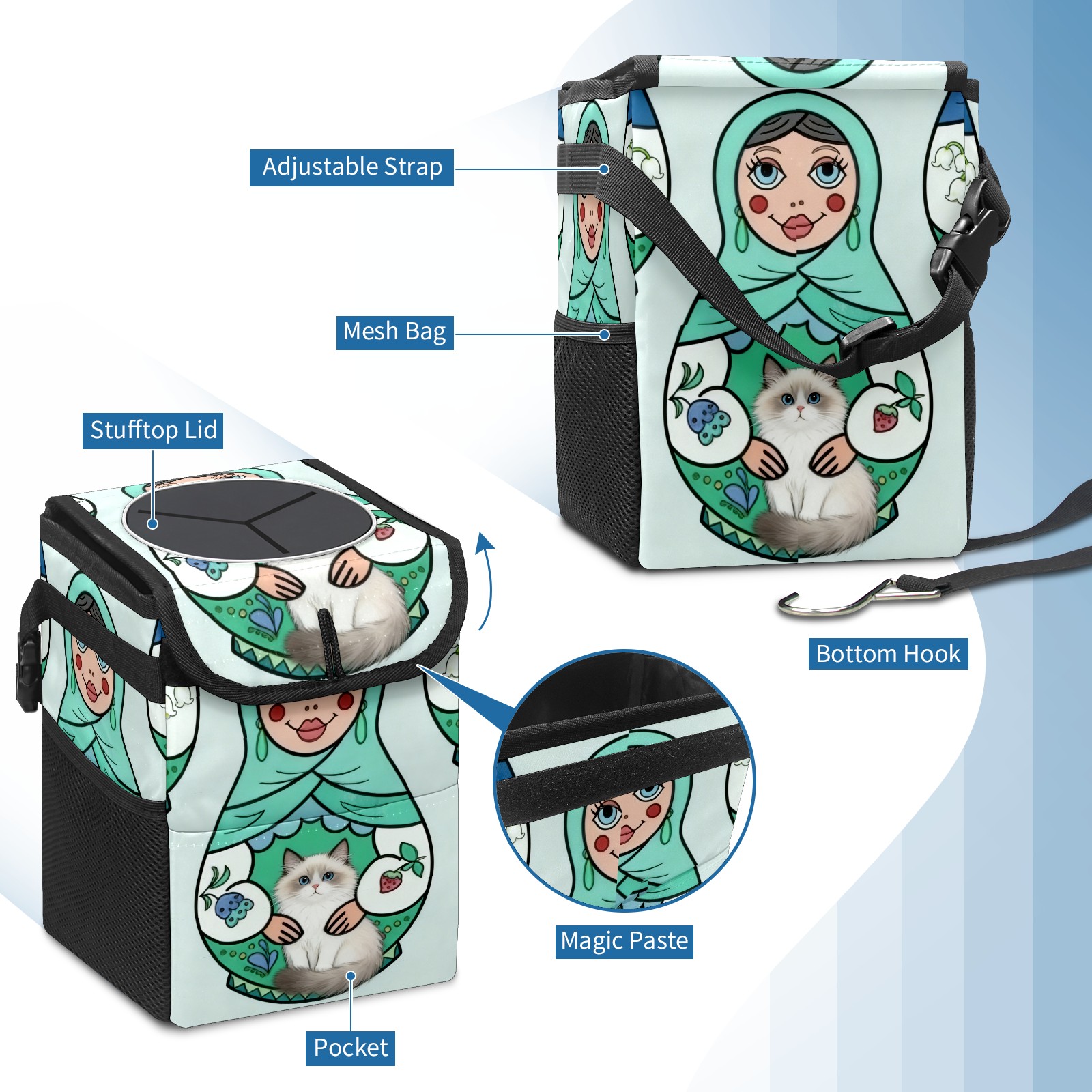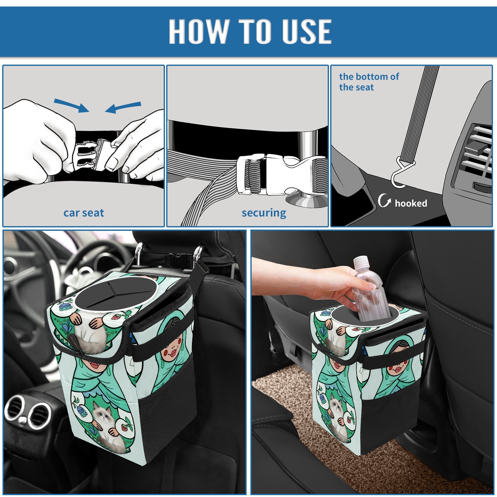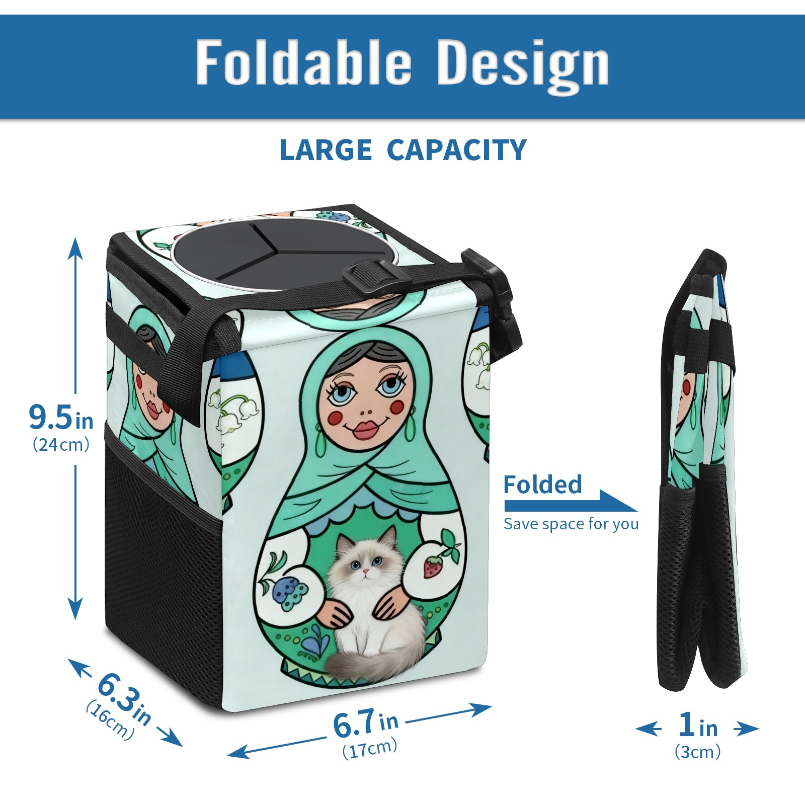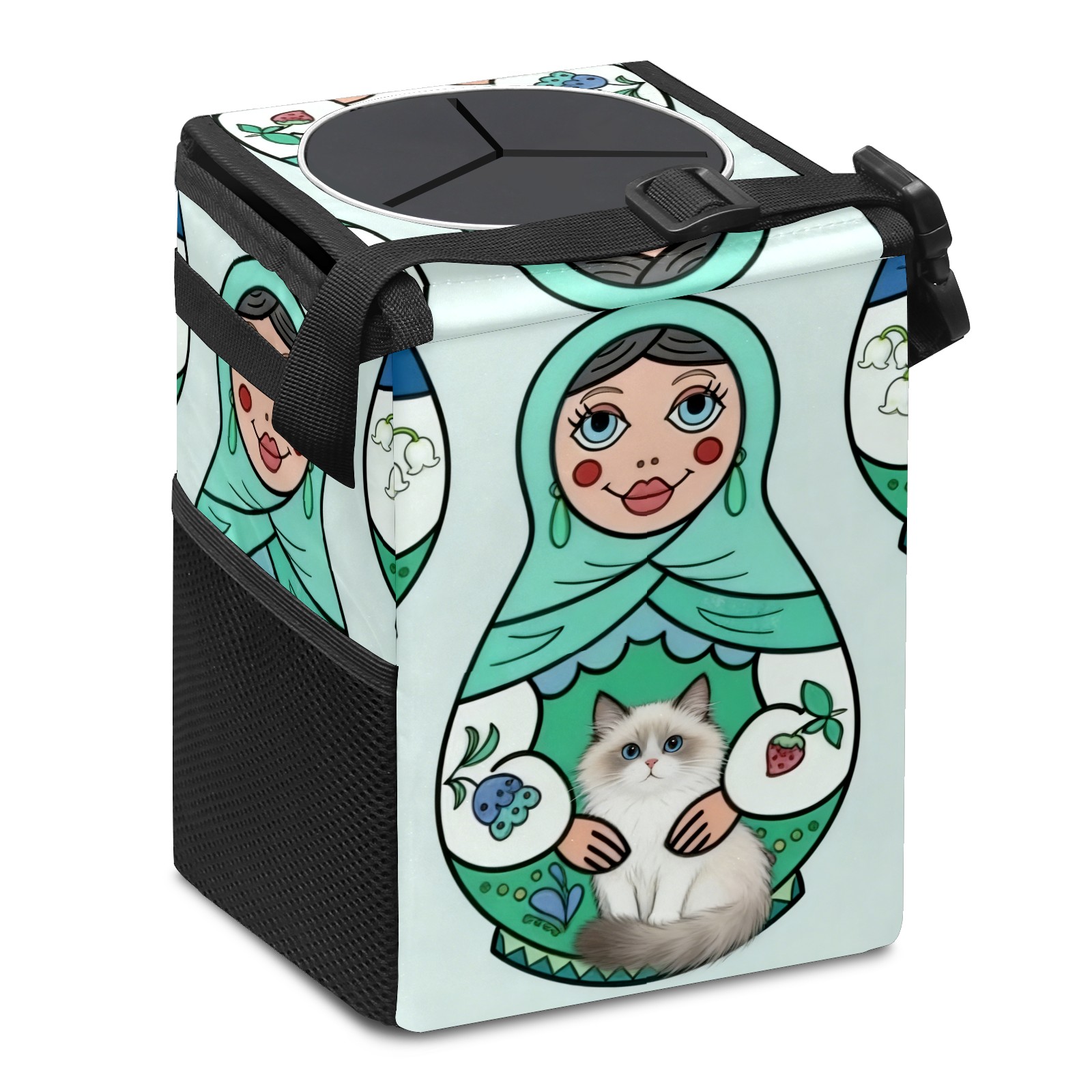 Car Garbage Can — Multi-functional, Lightweight Portable, Reusable Vehicle Trash Can, Waterproof with Sufficient Storage Capacity Cute Dolls Green