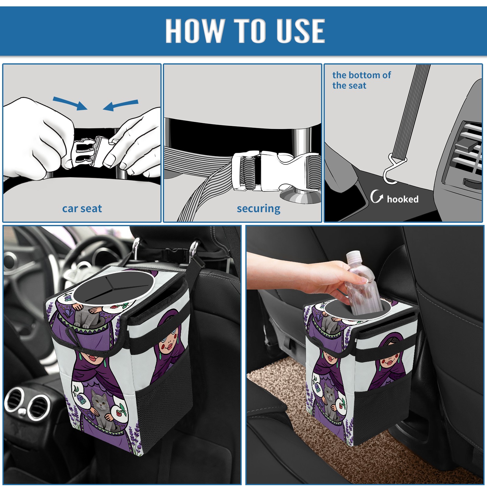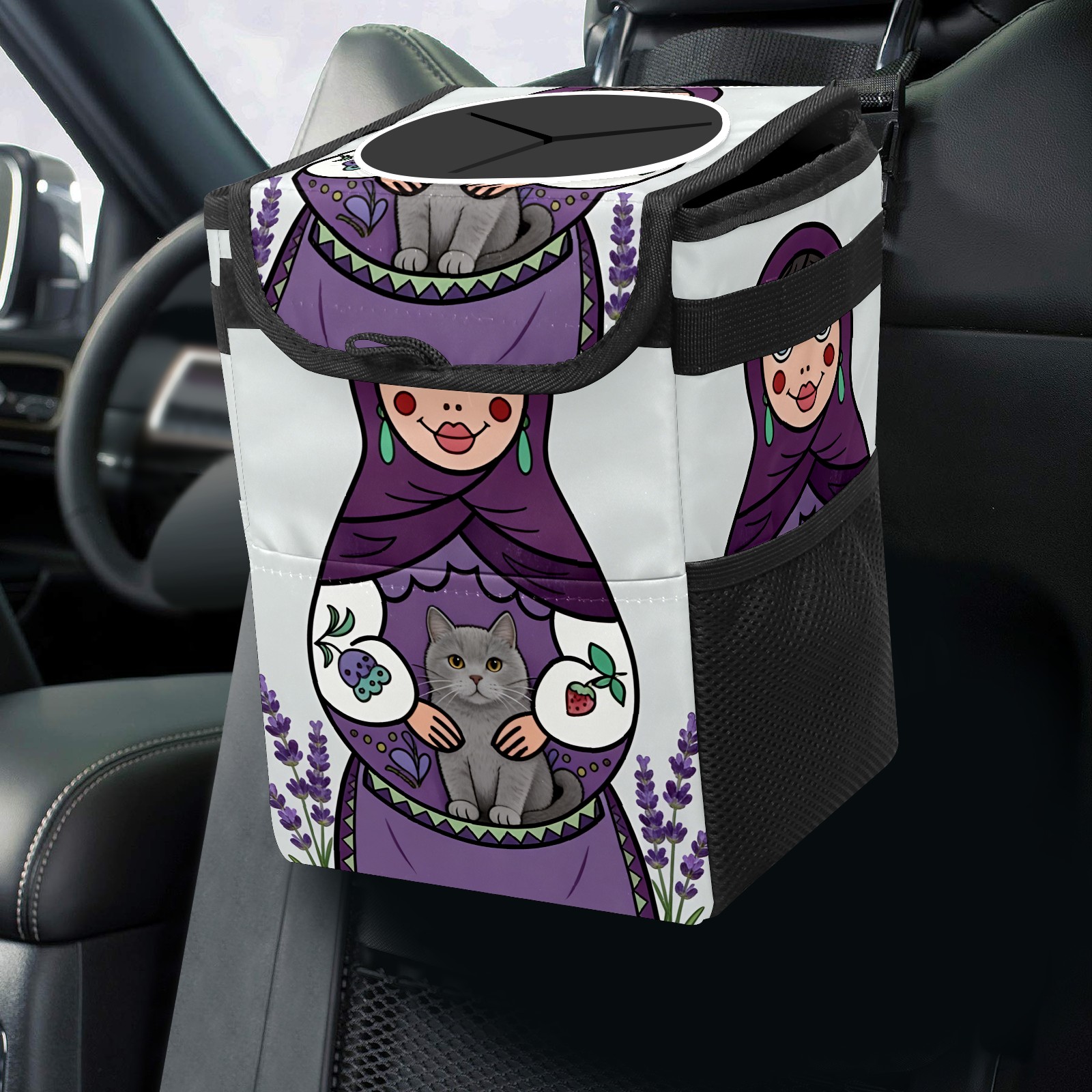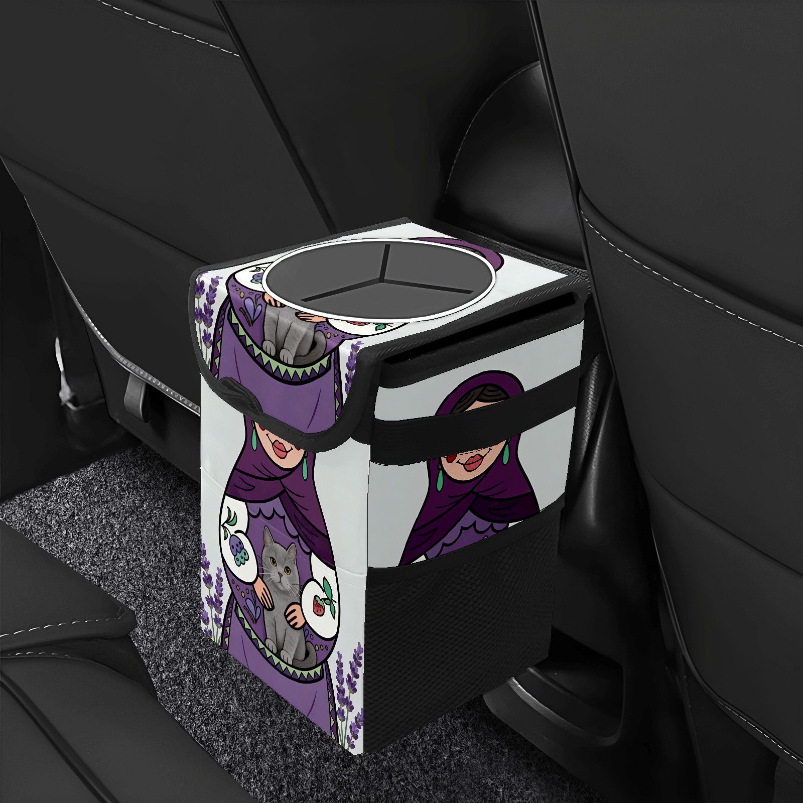 Car Garbage Can — Multi-functional, Lightweight Portable, Reusable Vehicle Trash Can, Waterproof with Sufficient Storage Capacity Mysterious Dolls Purple