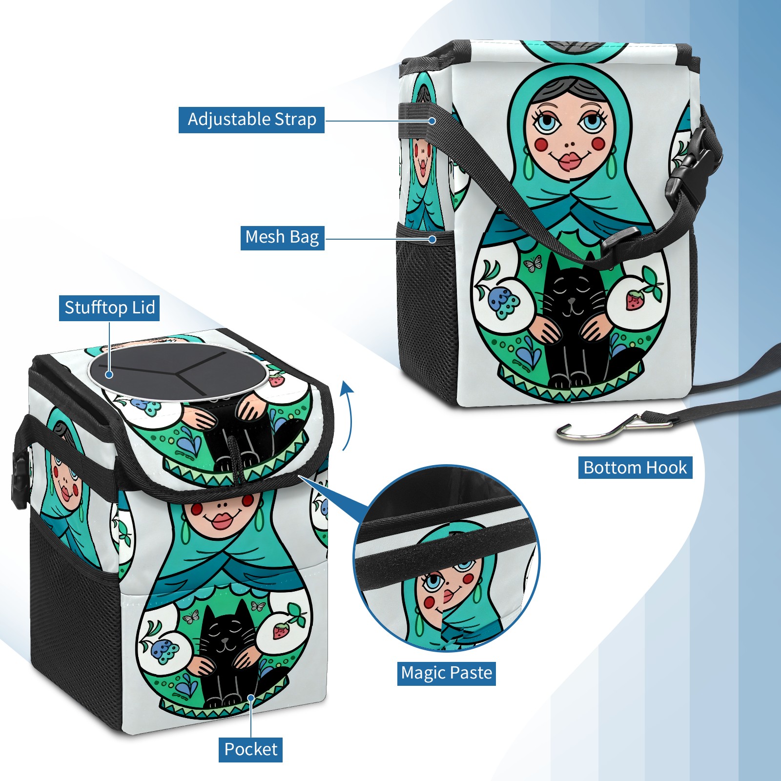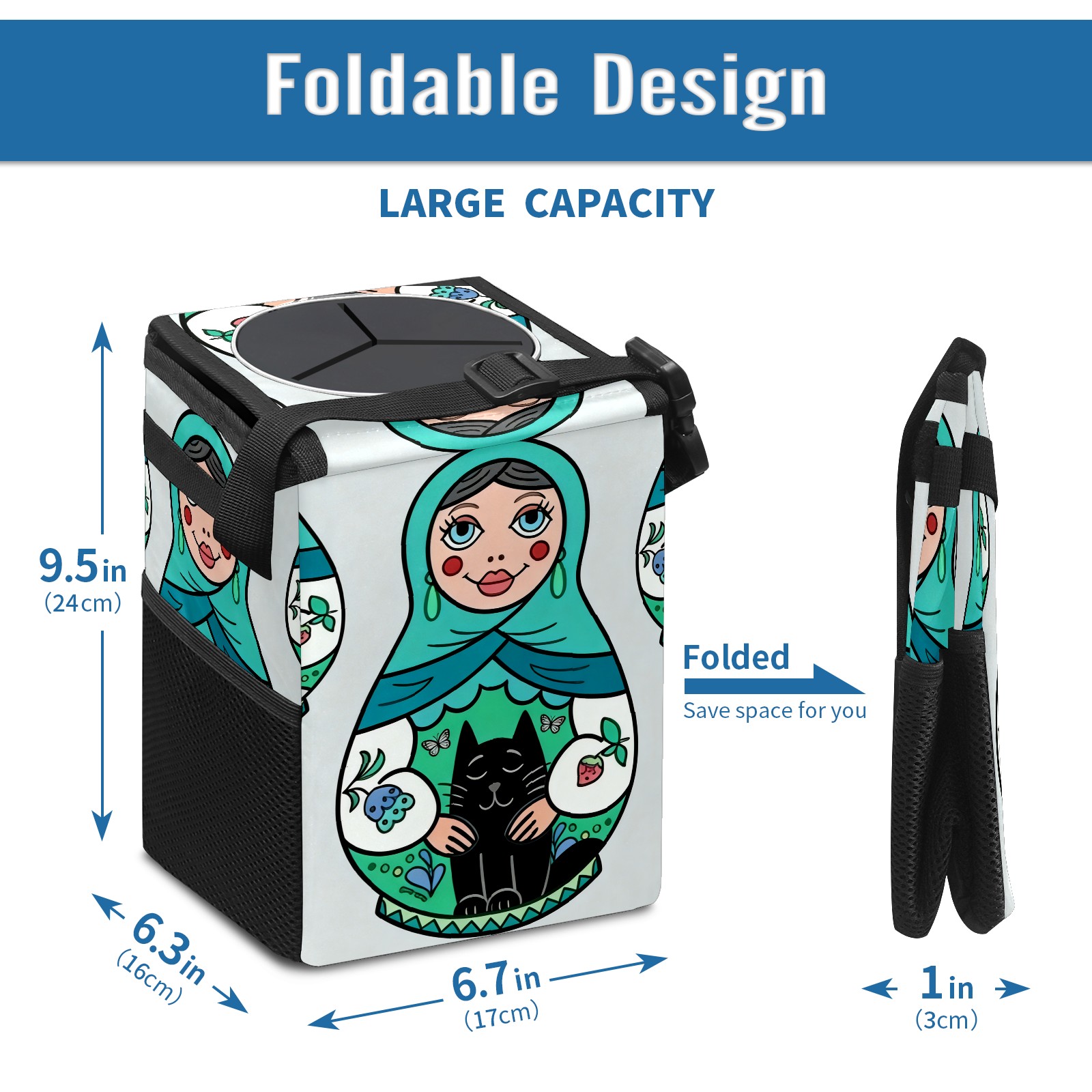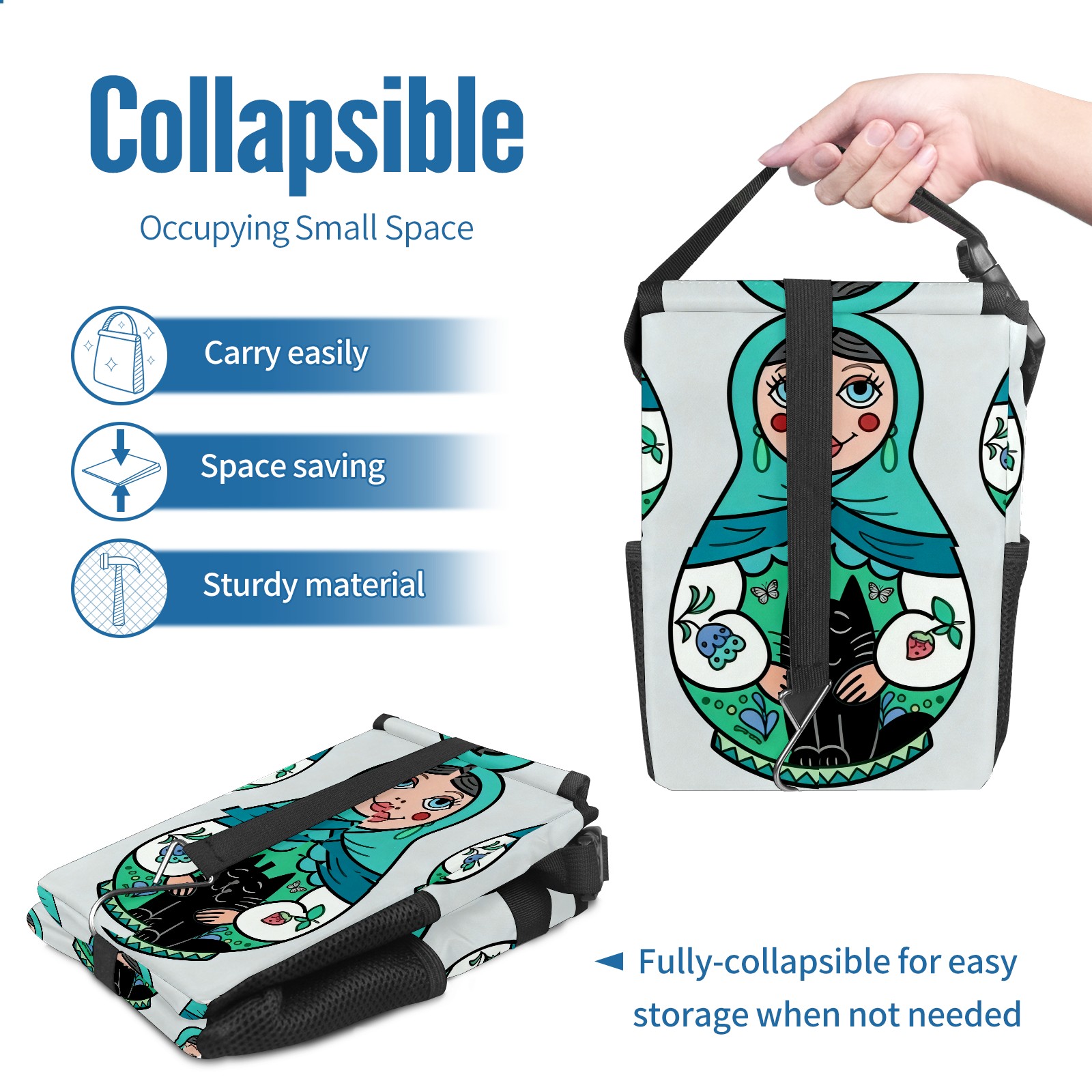 Car Garbage Can — Multi-functional, Lightweight Portable, Reusable Vehicle Trash Can, Waterproof with Sufficient Storage Capacity Cool Dolls Green