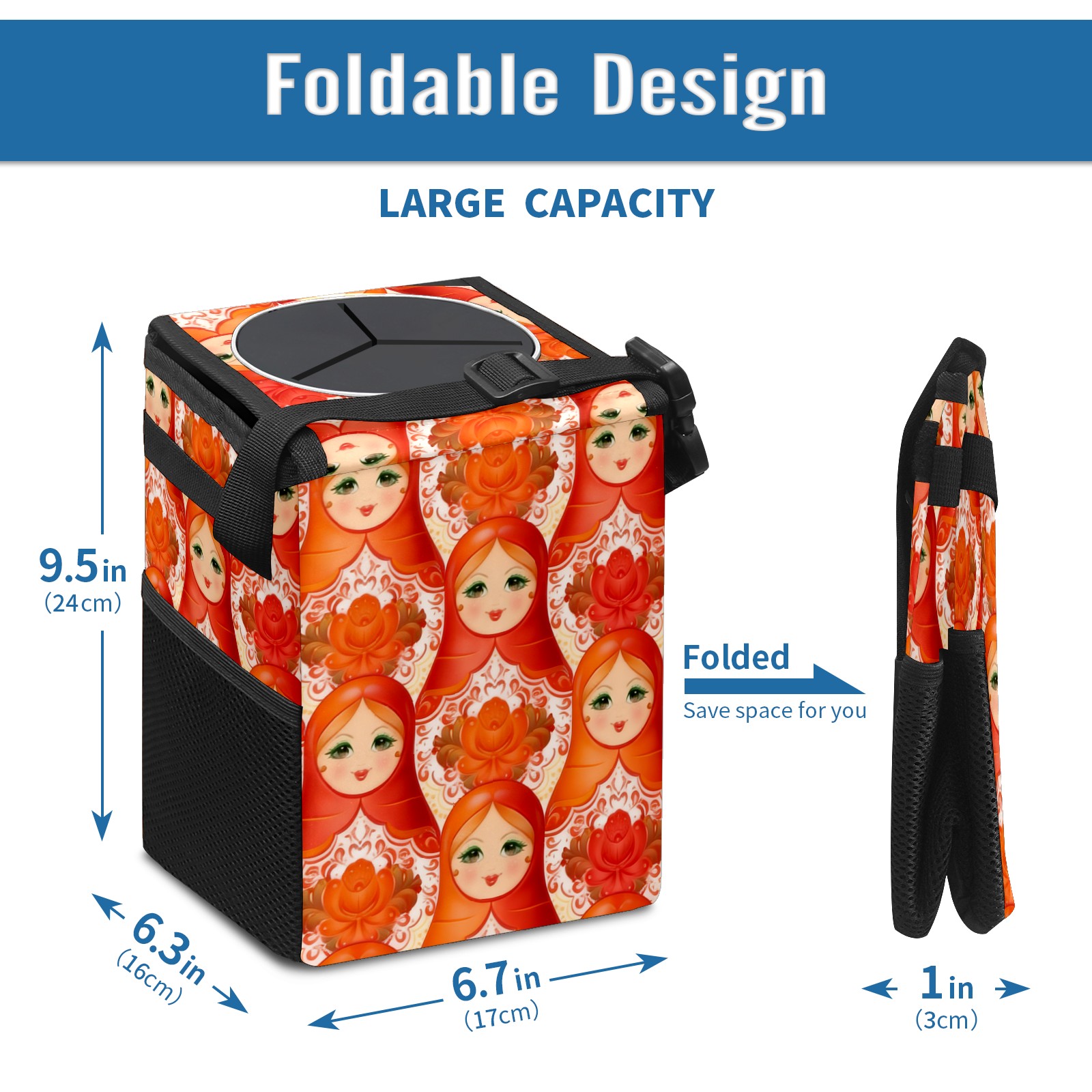 Car Garbage Can — Multi-functional, Lightweight Portable, Reusable Vehicle Trash Can, Waterproof with Sufficient Storage Capacity Vintage Dolls Orange