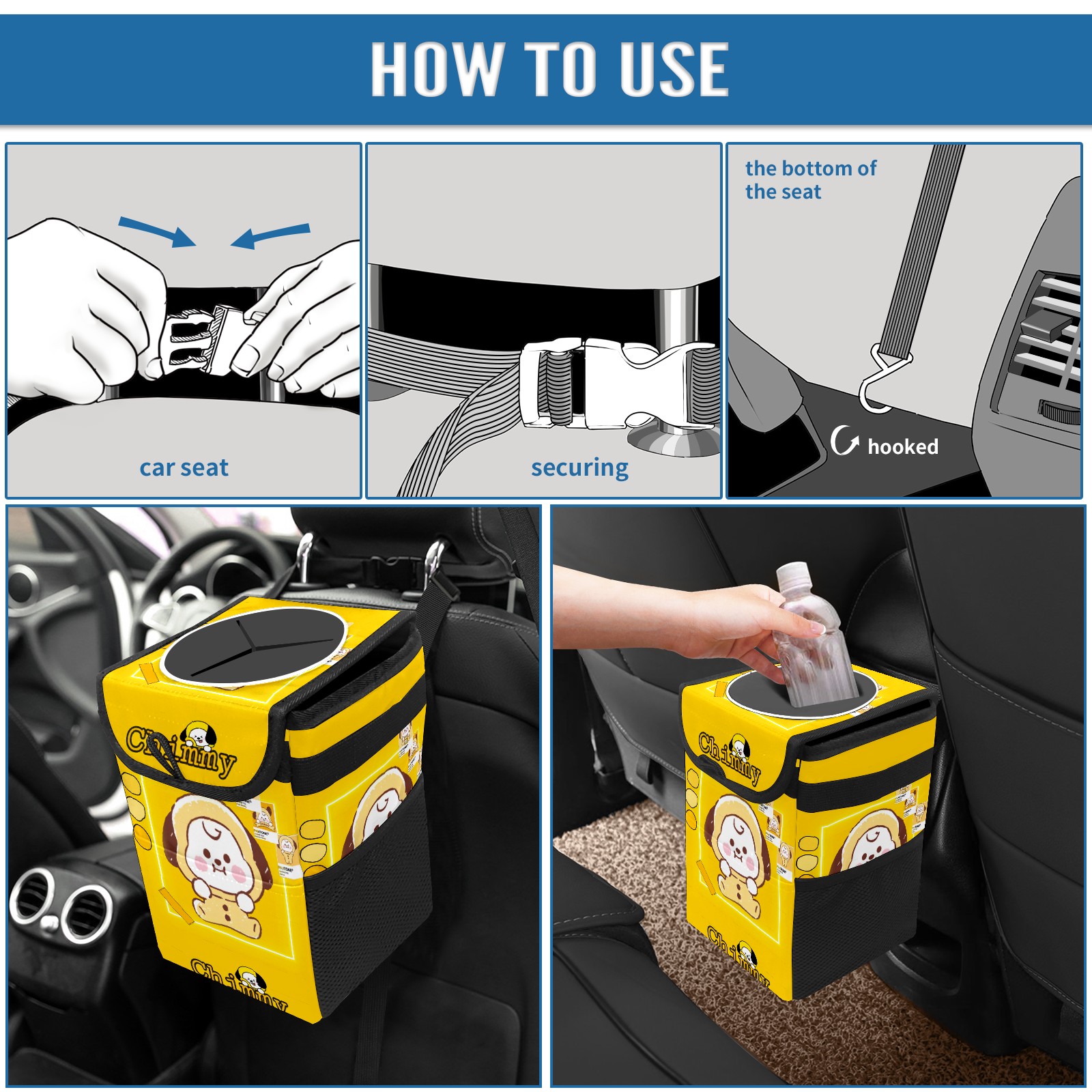 Car Garbage Can — Multi-functional, Lightweight Portable, Reusable Vehicle Trash Can, Waterproof with Sufficient Storage Capacity CHIMMY BT21