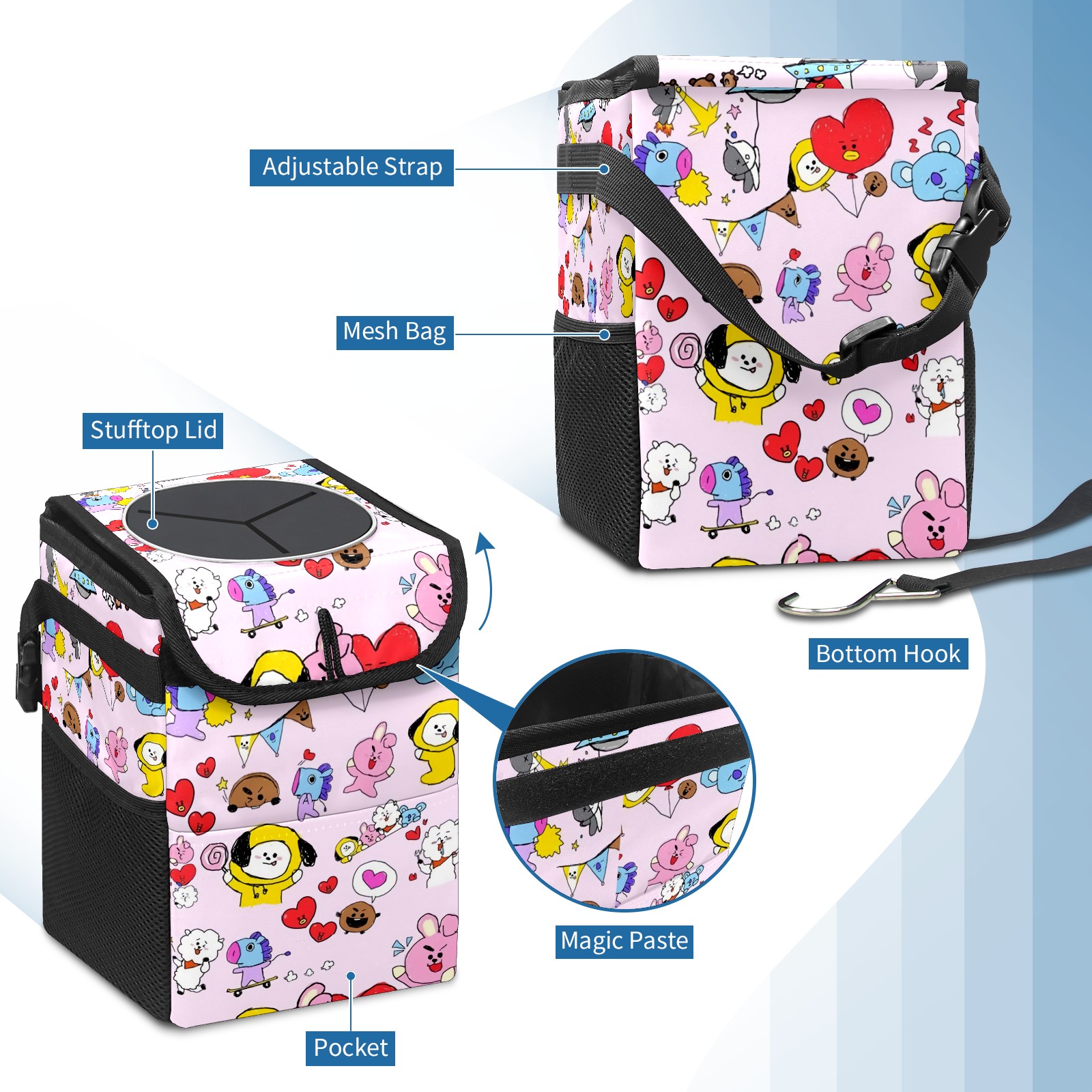 Car Garbage Can — Multi-functional, Lightweight Portable, Reusable Vehicle Trash Can, Waterproof with Sufficient Storage Capacity Bt21-10